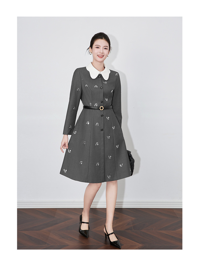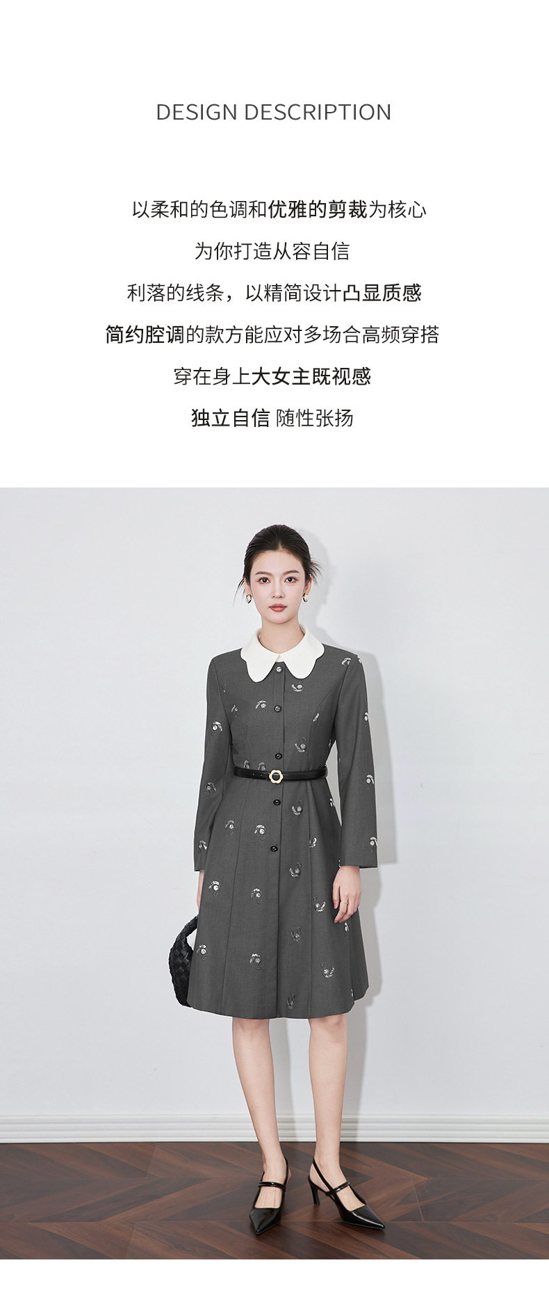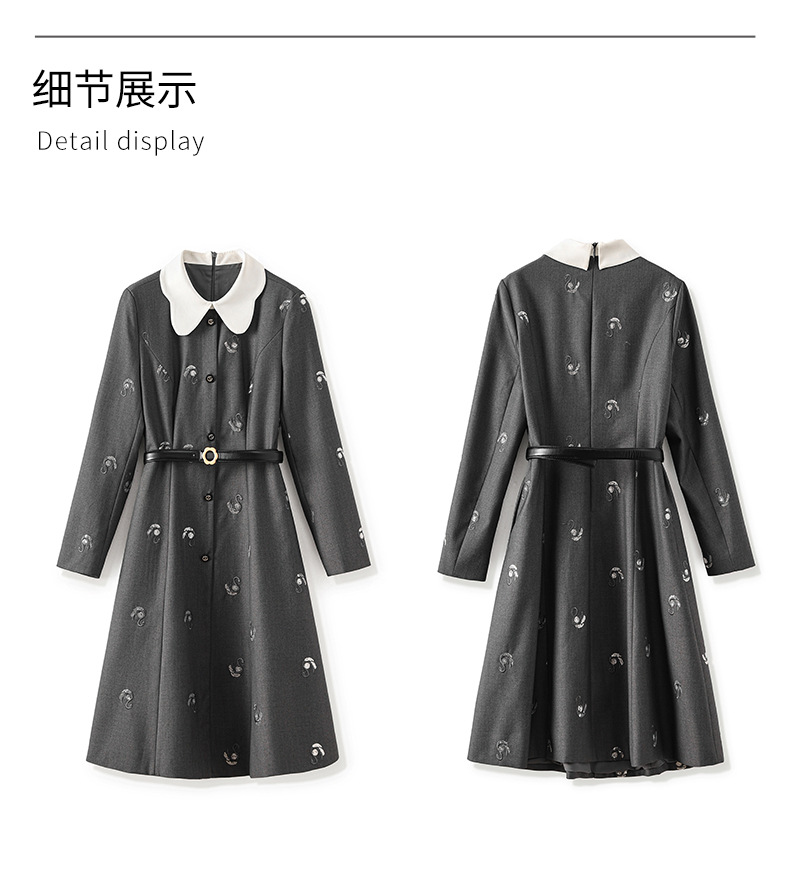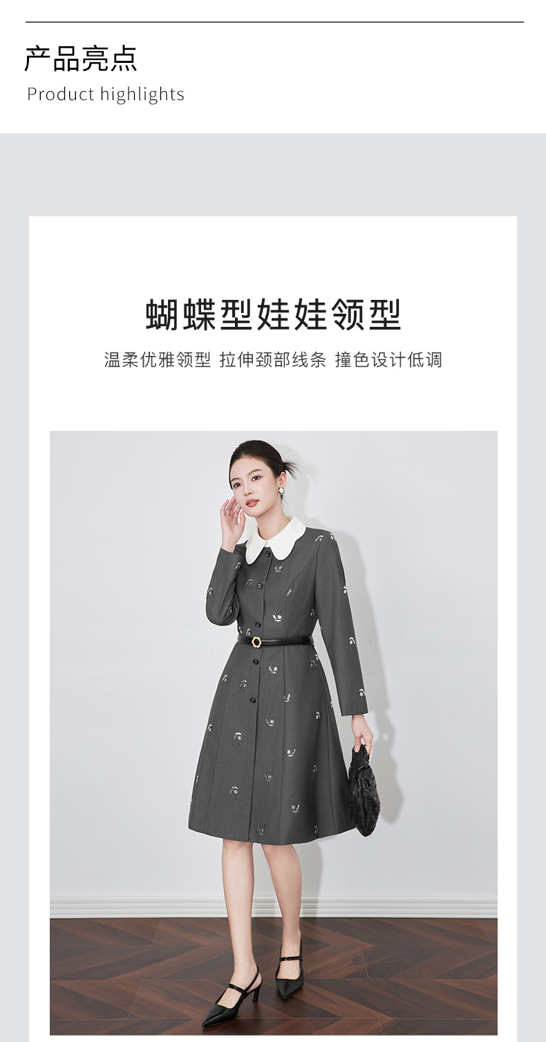 【高货wl】全新升级【铂金会员339/天猫459/差价120】(81504) 洛诗琳时尚休闲气质娃娃领立体黑天鹅亮片中长款连衣裙
