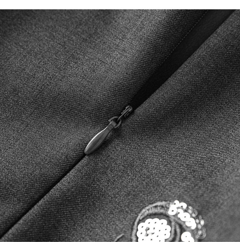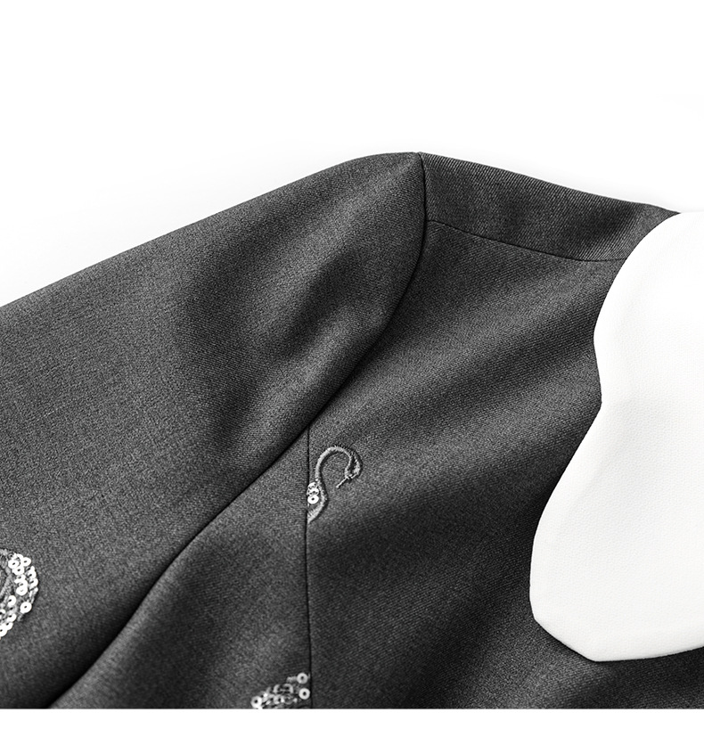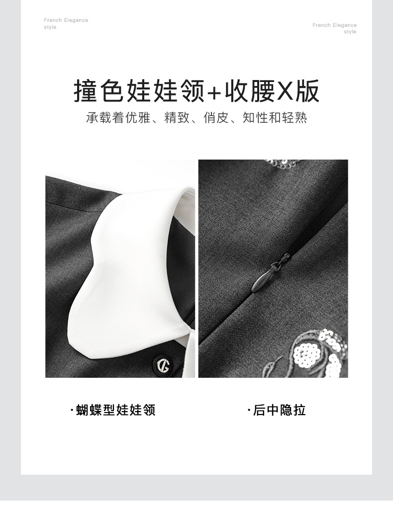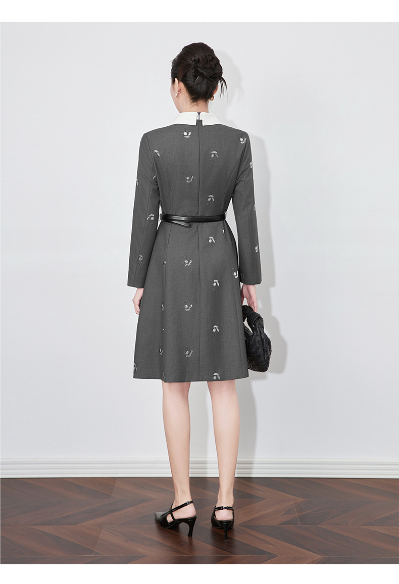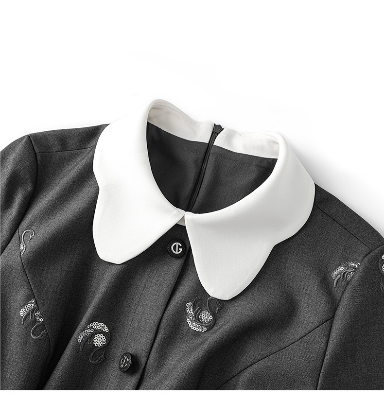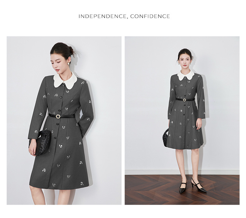【高货wl】全新升级【铂金会员339/天猫459/差价120】(81504) 洛诗琳时尚休闲气质娃娃领立体黑天鹅亮片中长款连衣裙