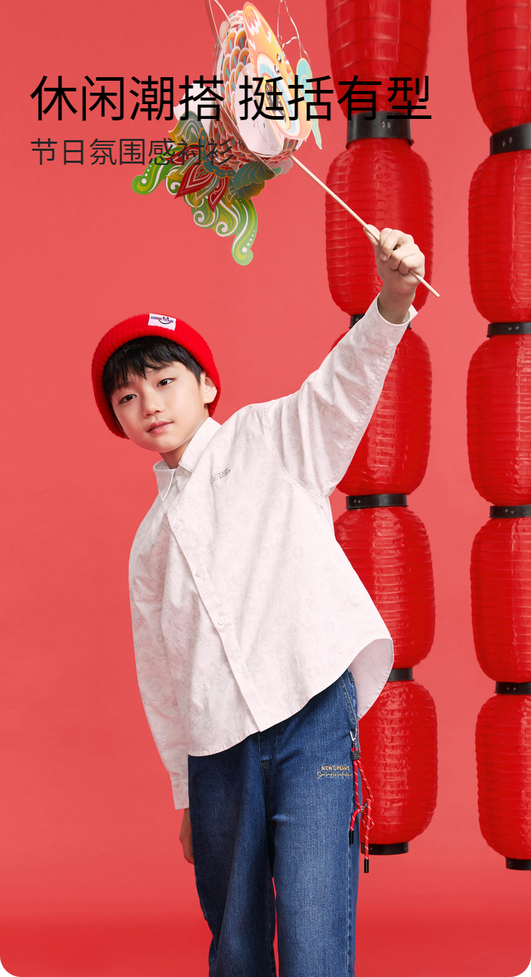 男童梭织长袖上衣春季新款安奈儿童装实体店同款AB511503