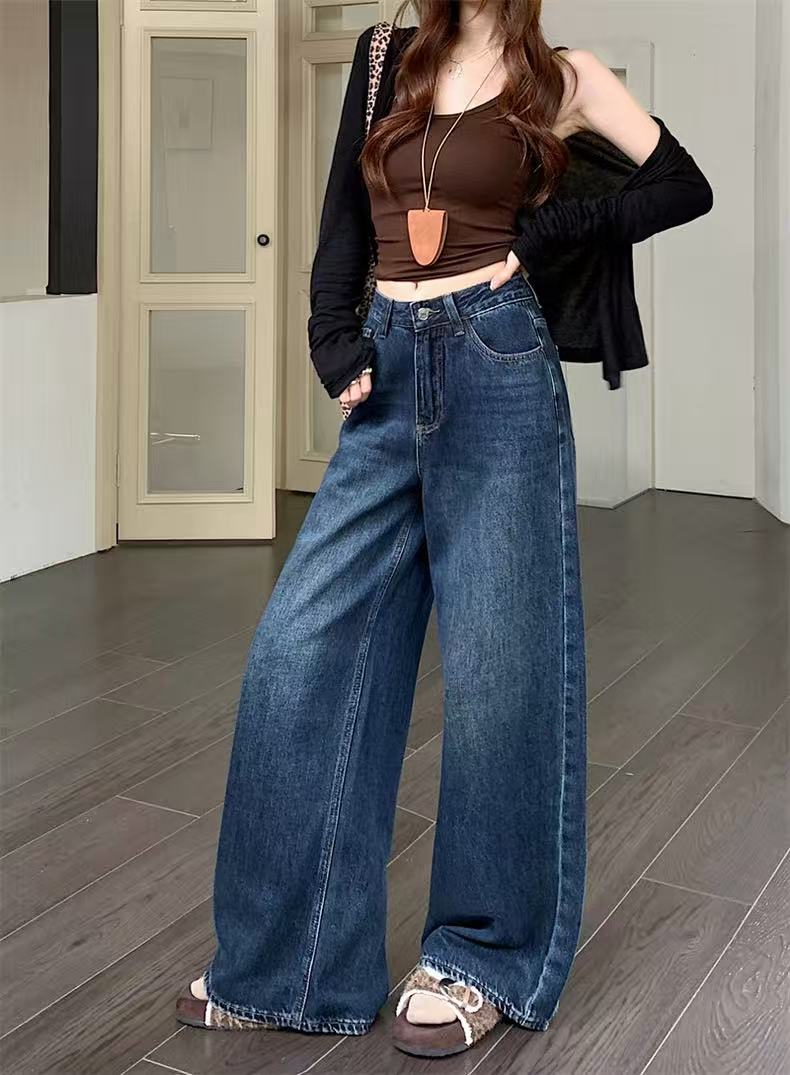 🔥🔥【2025爆款牛仔】磨毛绒笑脸款~6610复合一体保暖阔腿裤直筒裤-喜出