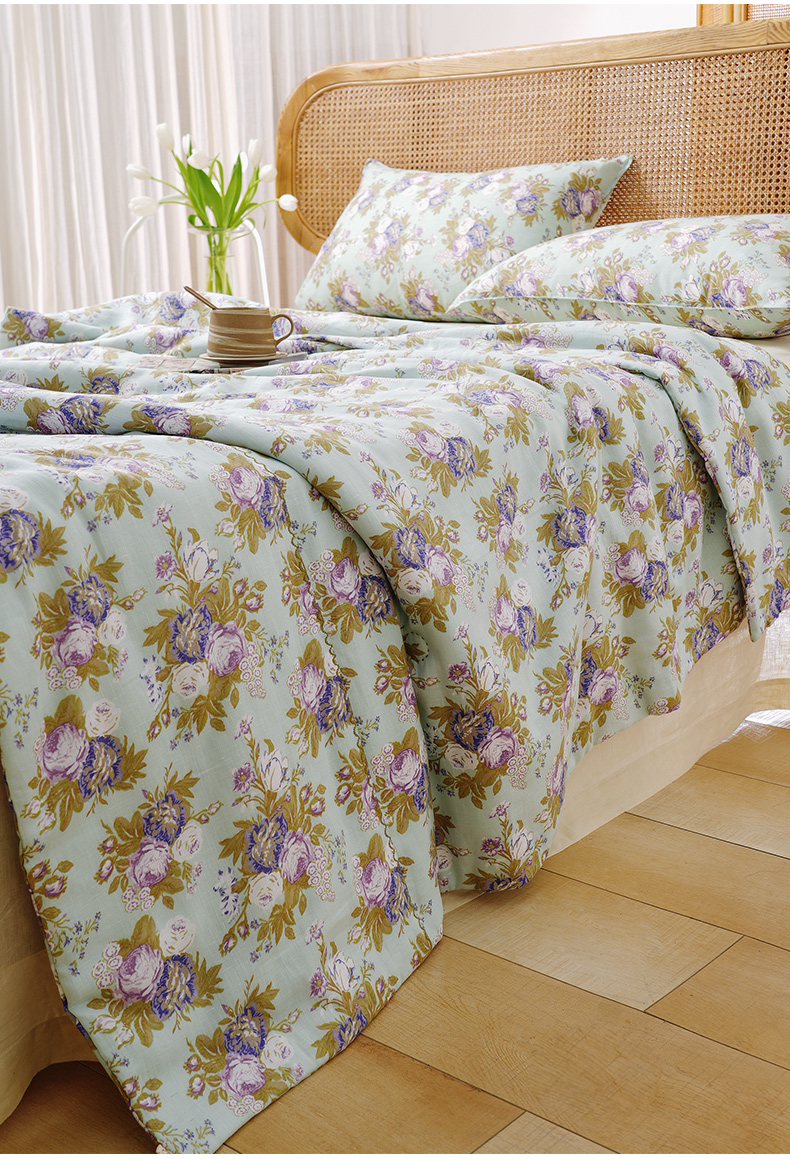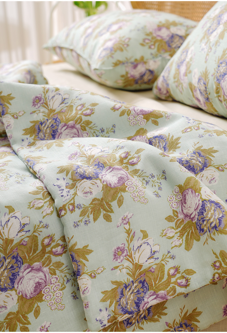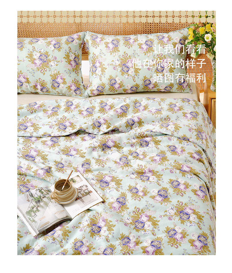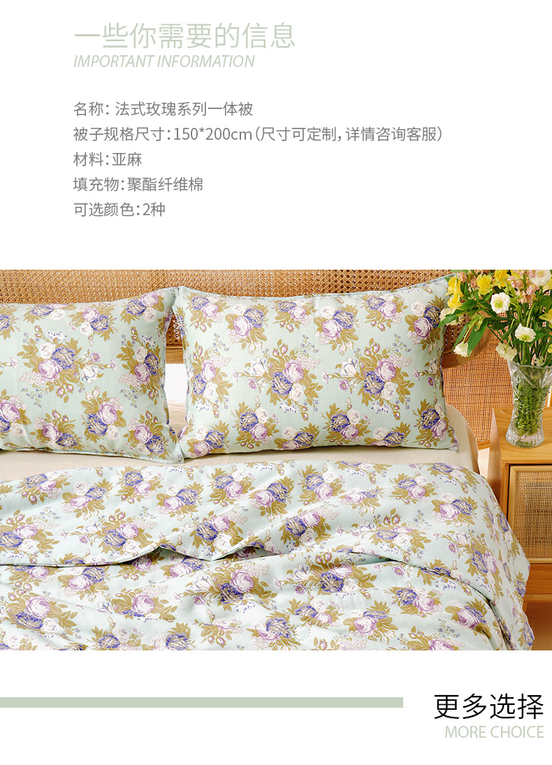 法式玫瑰系列全套一整套亚麻透气亲肤厚单人一体被子