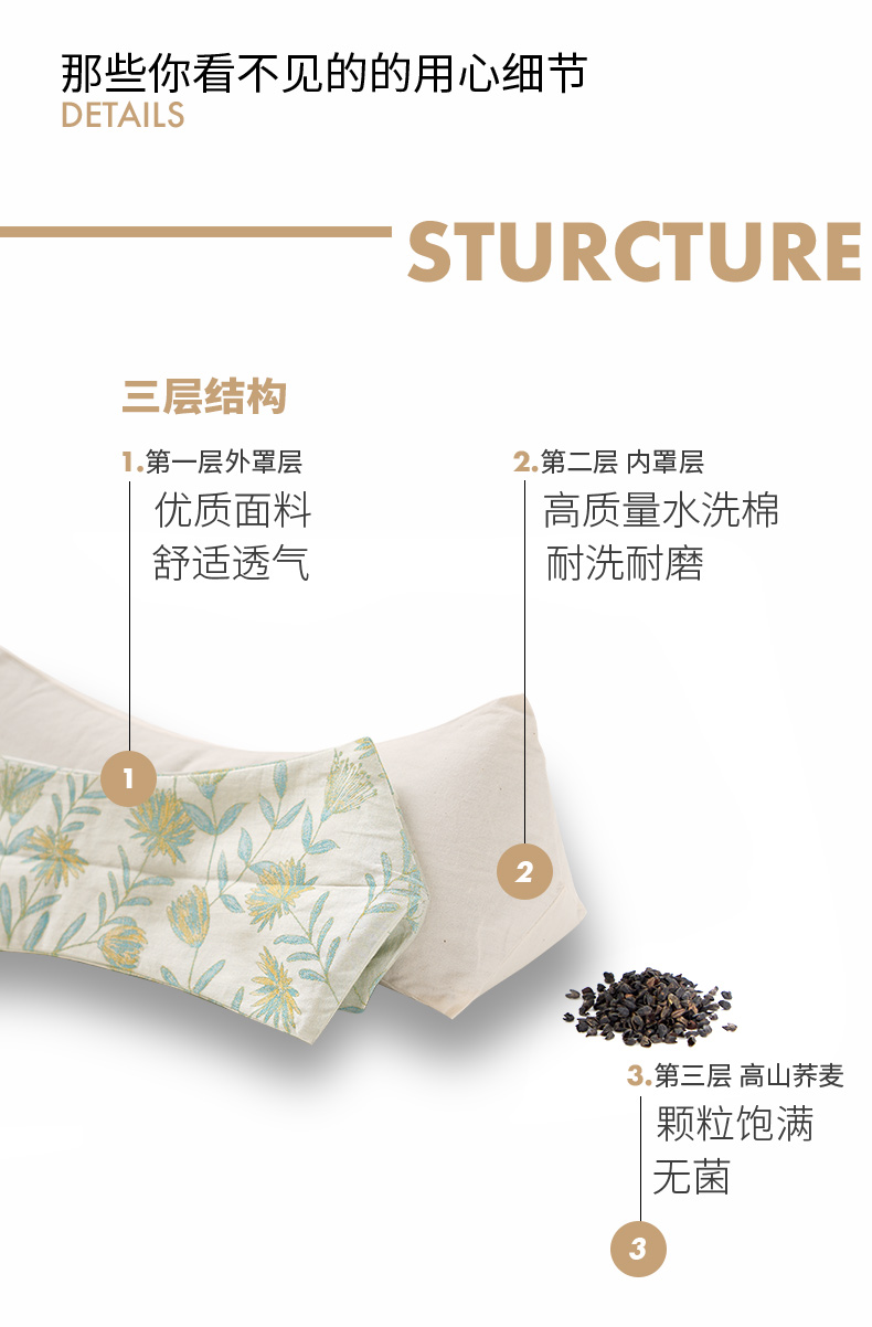 漫山系列三角颈枕荞麦壳枕头成人单人睡眠护颈椎睡觉专用纯棉高端