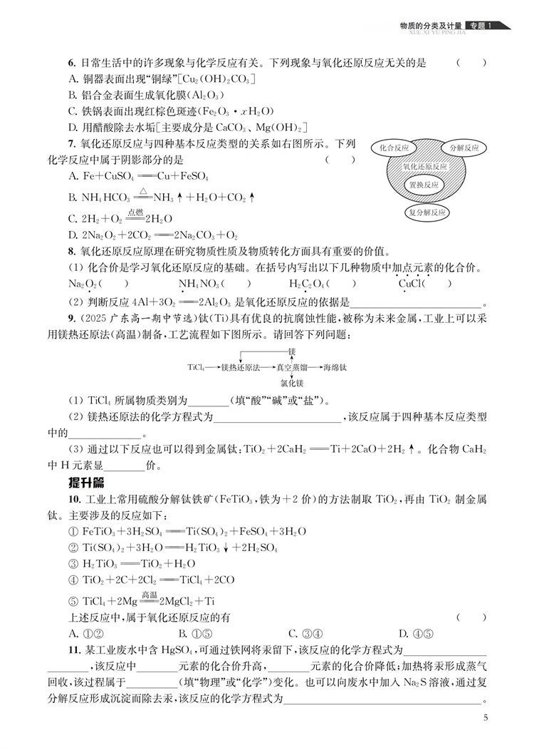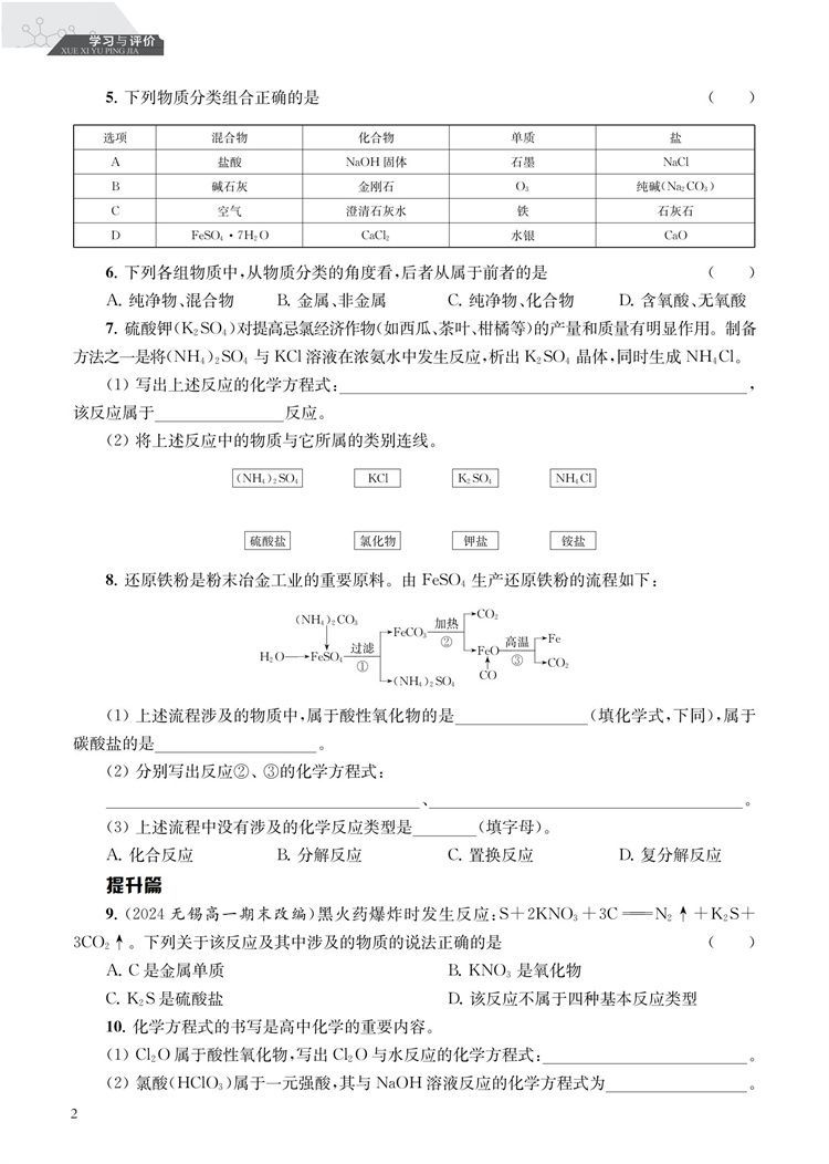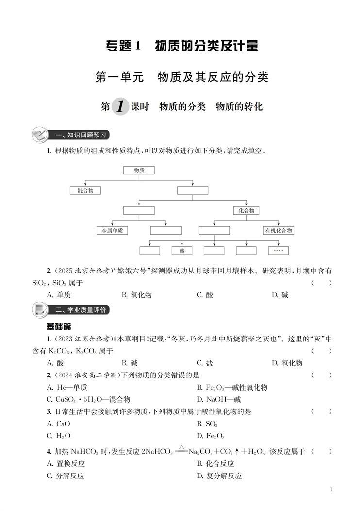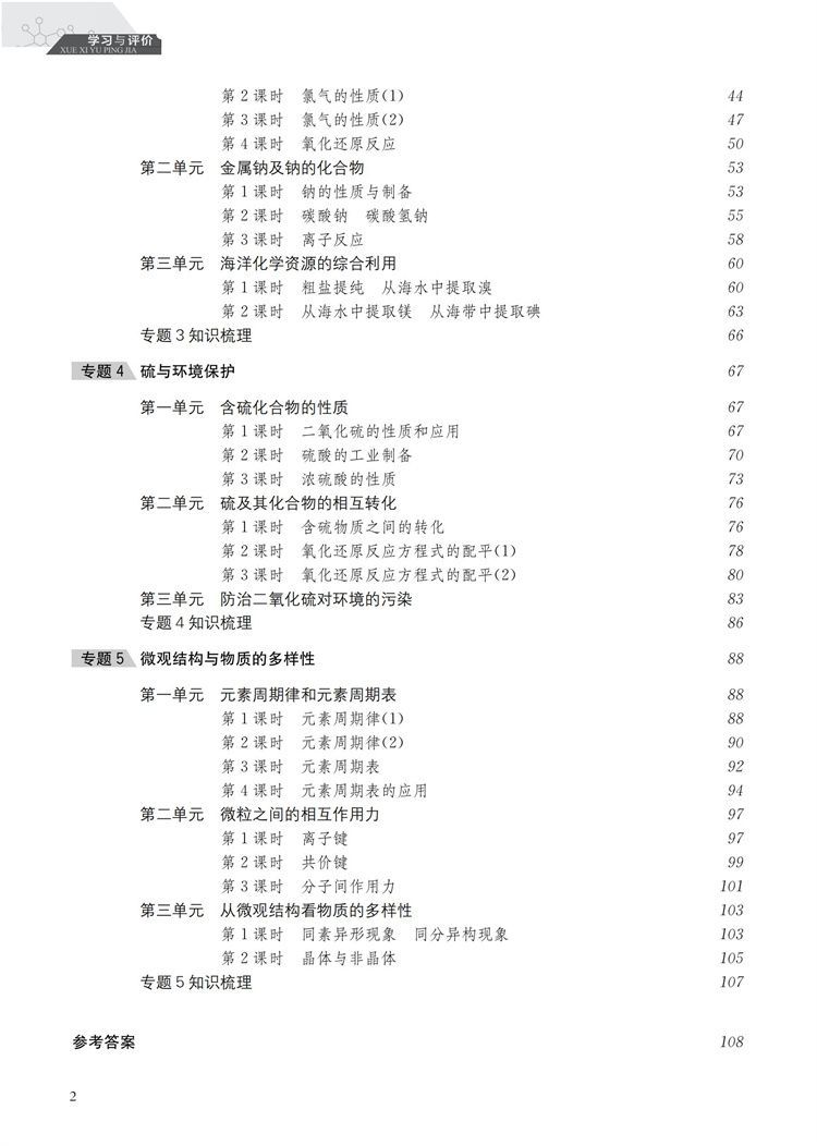 2025年秋 学习与评价 高中化学 必修第一册 新课标 含答案 必修1 中学教辅 习题集练习