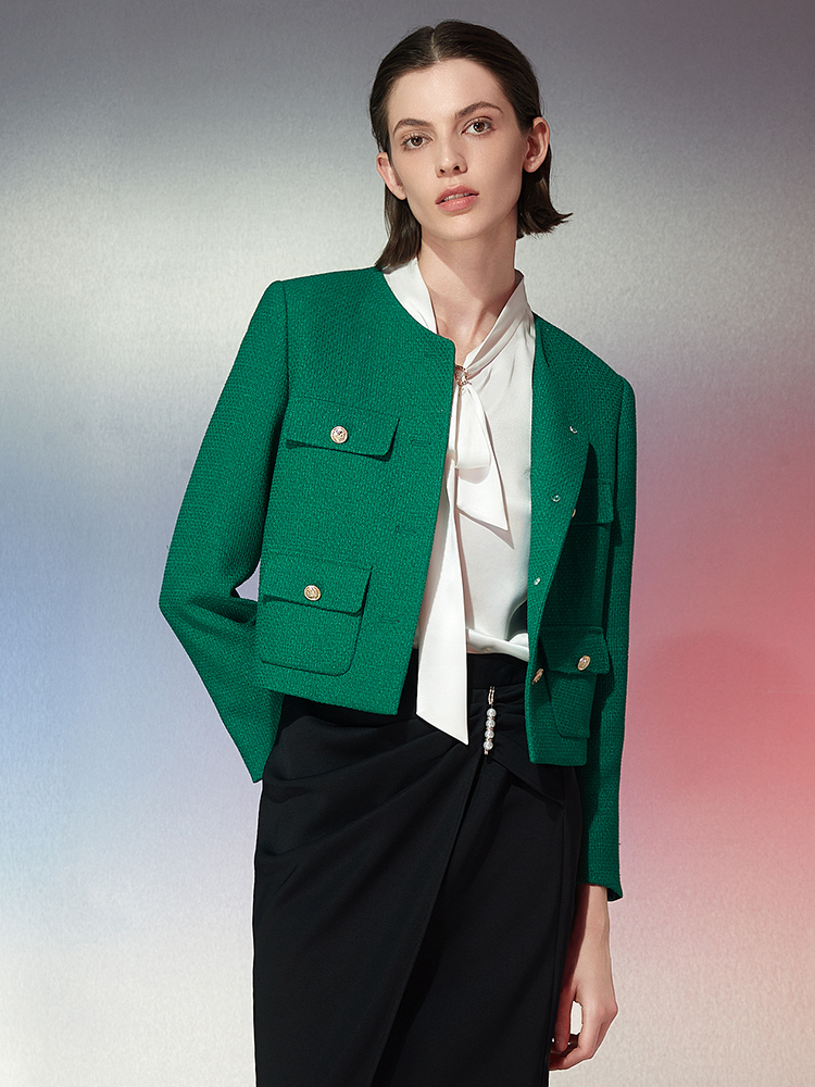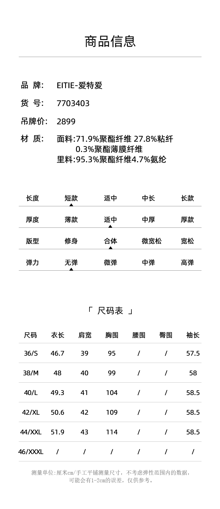 EITIE爱特爱春季新款时尚气质小香风短外套7703403