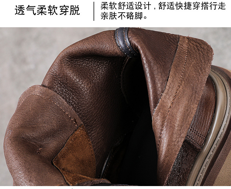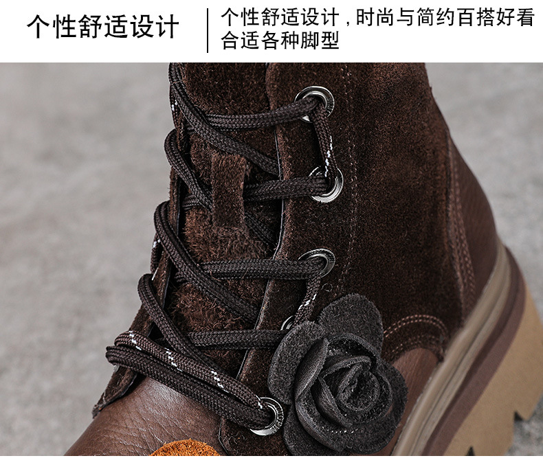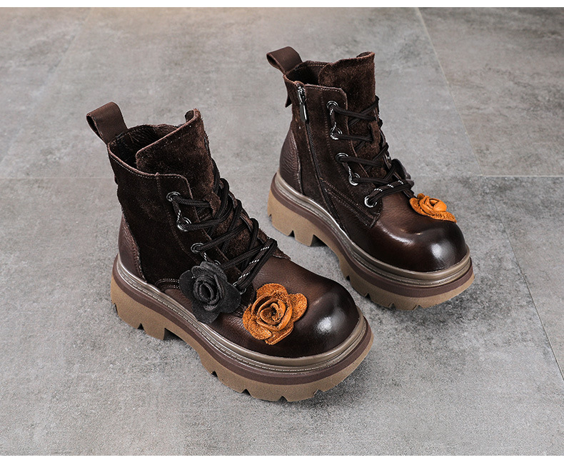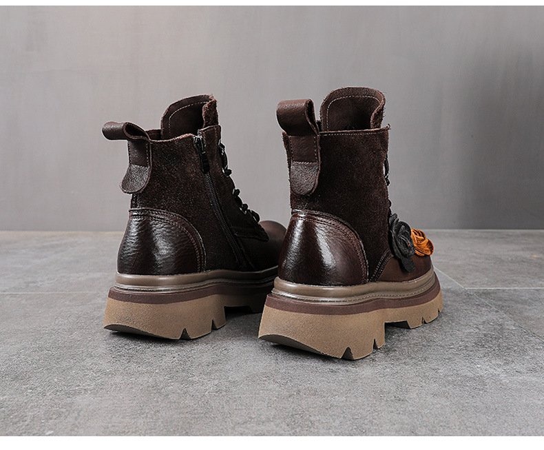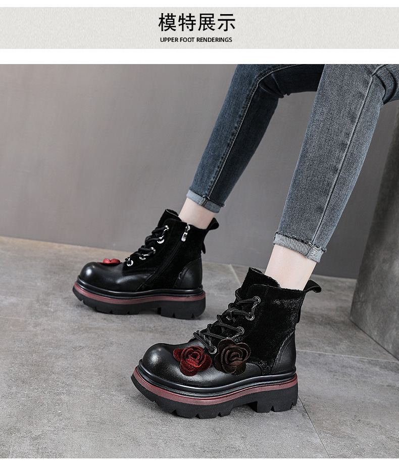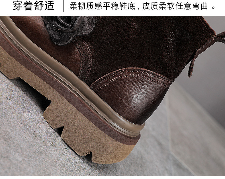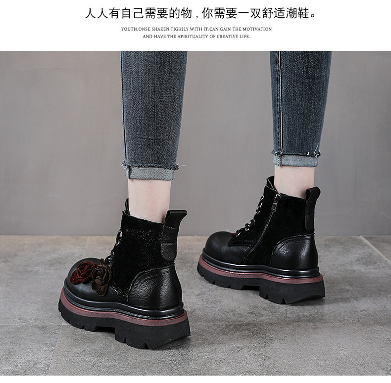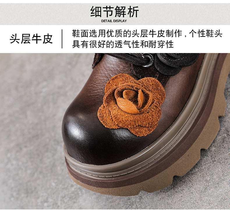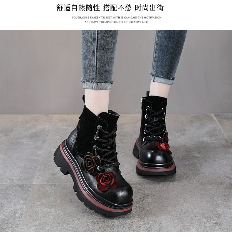 YR 2956头层牛皮复古厚底马丁靴花朵短靴厚底休闲高帮靴 商品图4