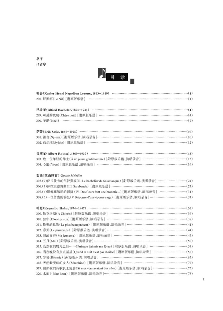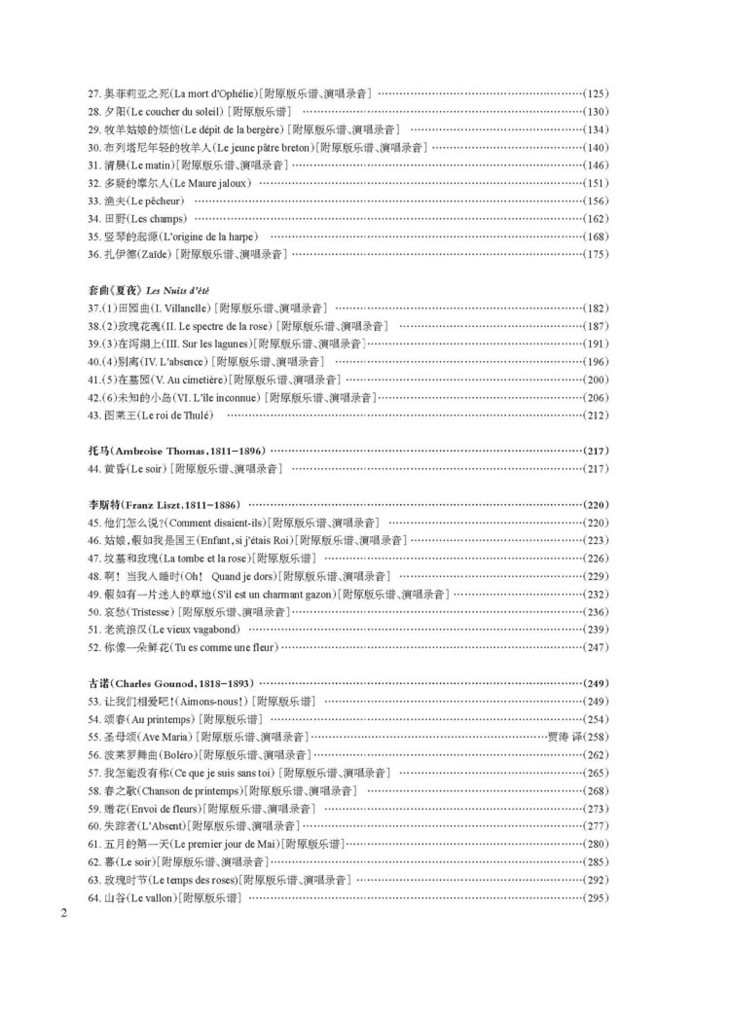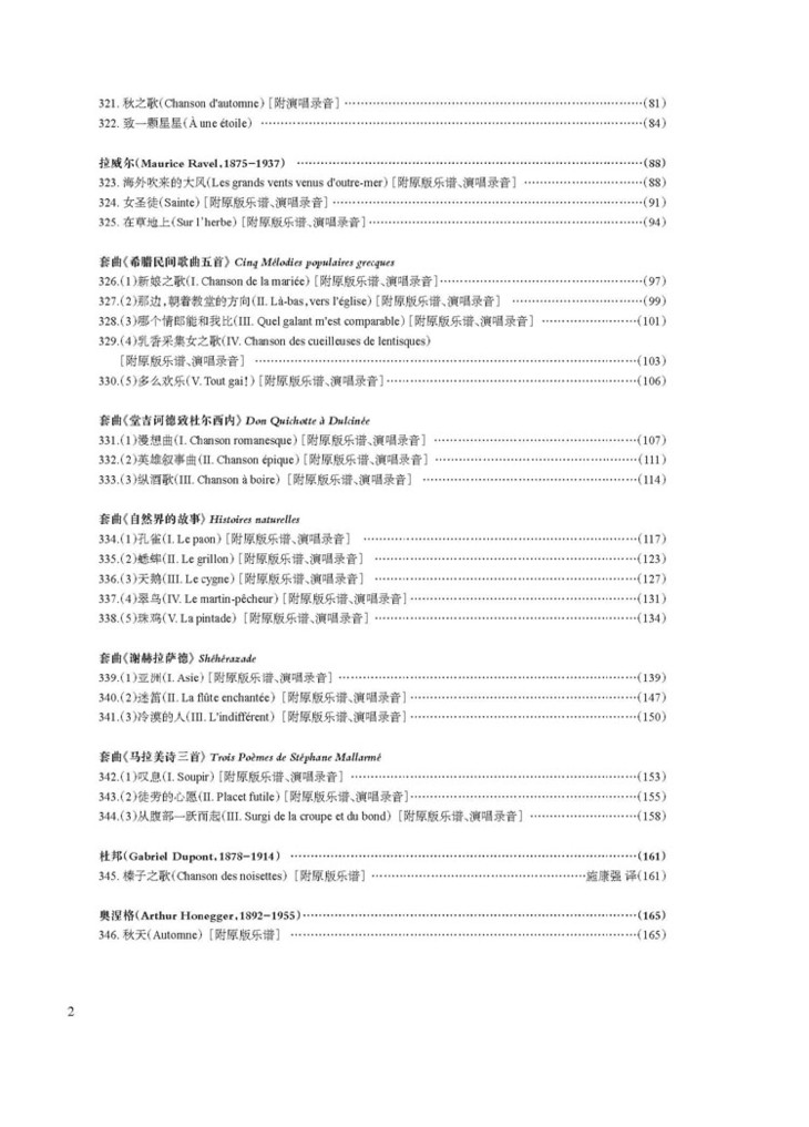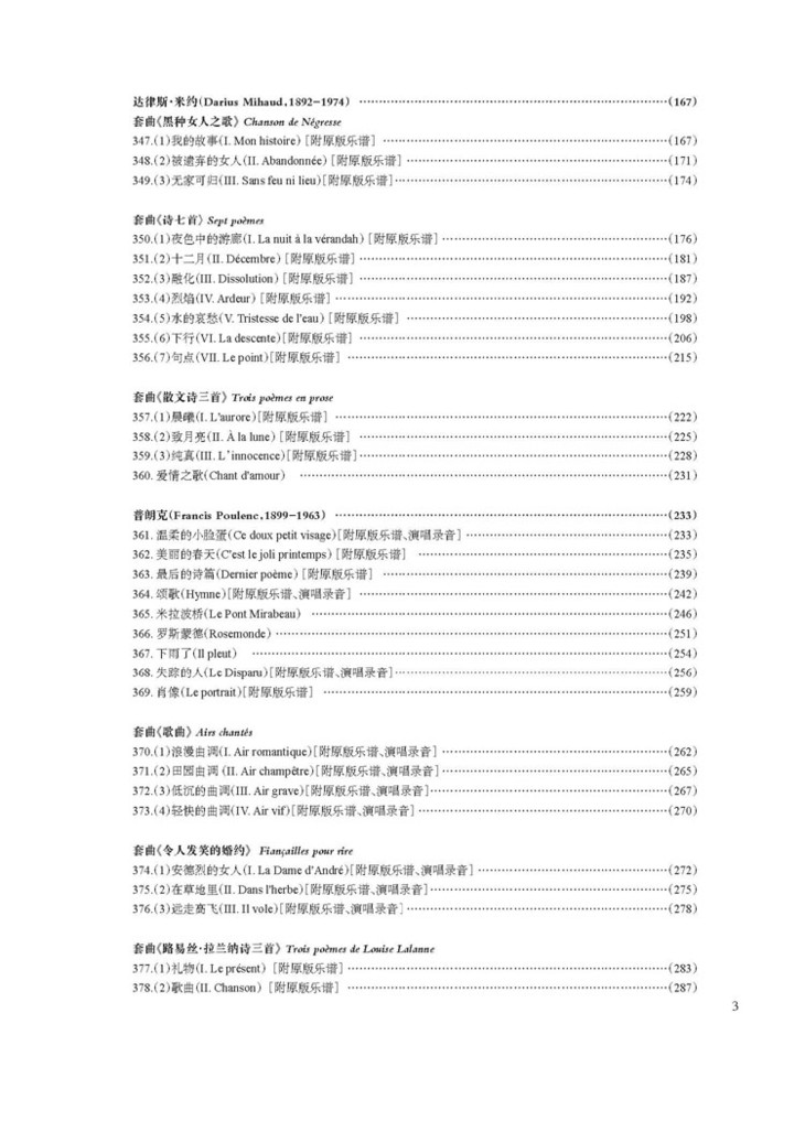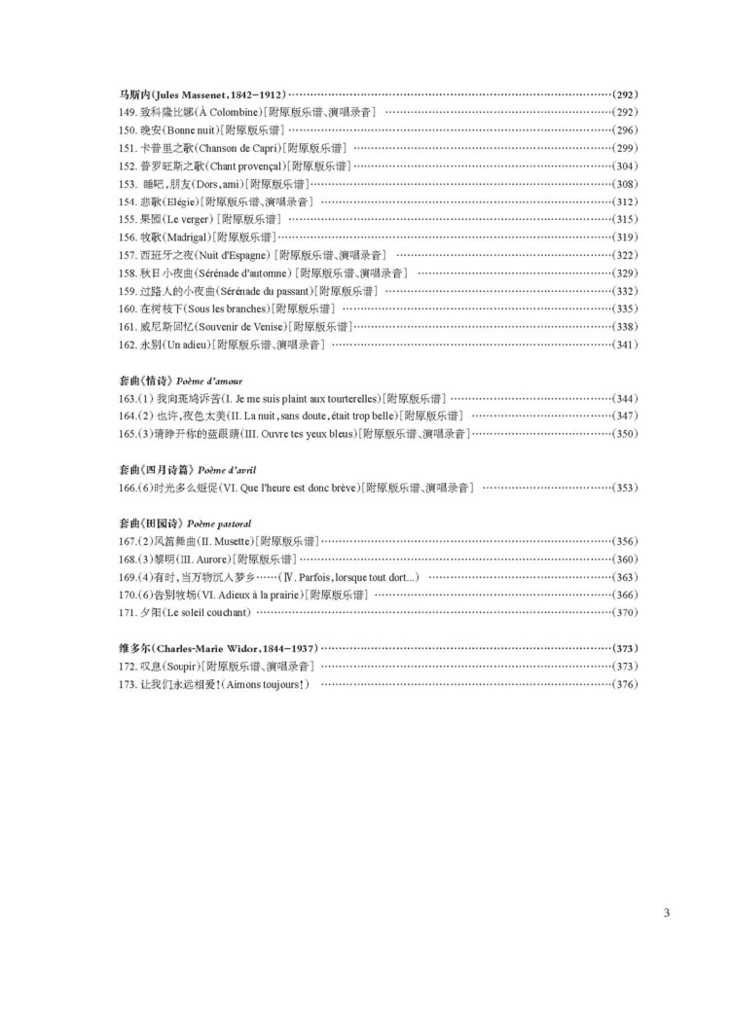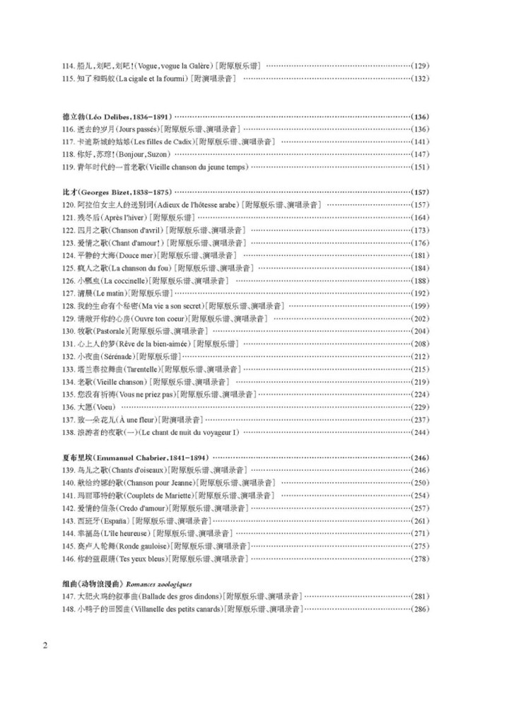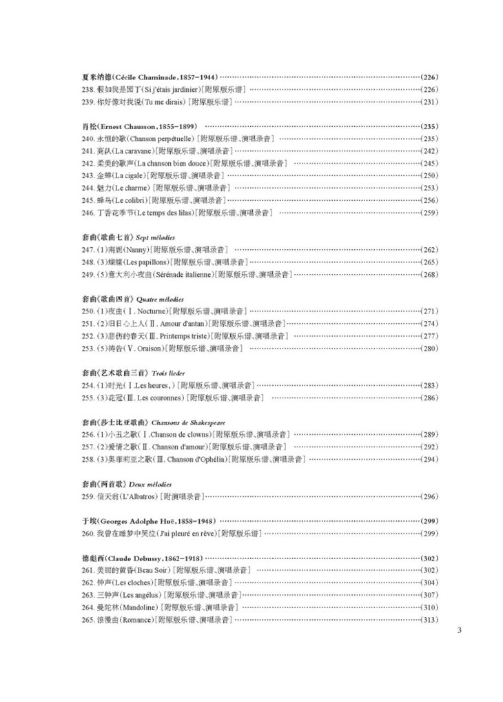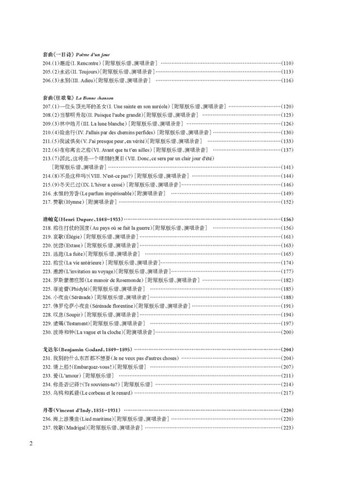 法国艺术歌曲,从选曲到译词,都尽显其新意和特色:一方面,在曲目的选择上,除收编有经典曲目外,还有很多曲目是国内全新出版问世,这既是为了推陈出新,也是编者的一种自我超越。