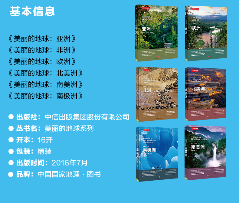 【生物多样性与人类】国家地理系列:美丽的地球(套装共6册) 亚洲+欧洲+非洲+南美洲+北美洲+南极洲