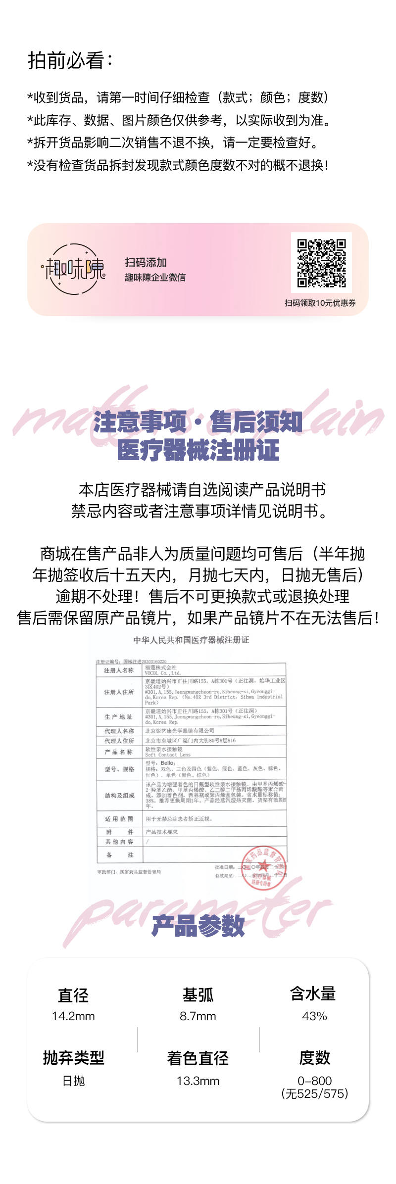 Bollycon:达芬奇(日抛)一盒十片,度数不同需买两盒