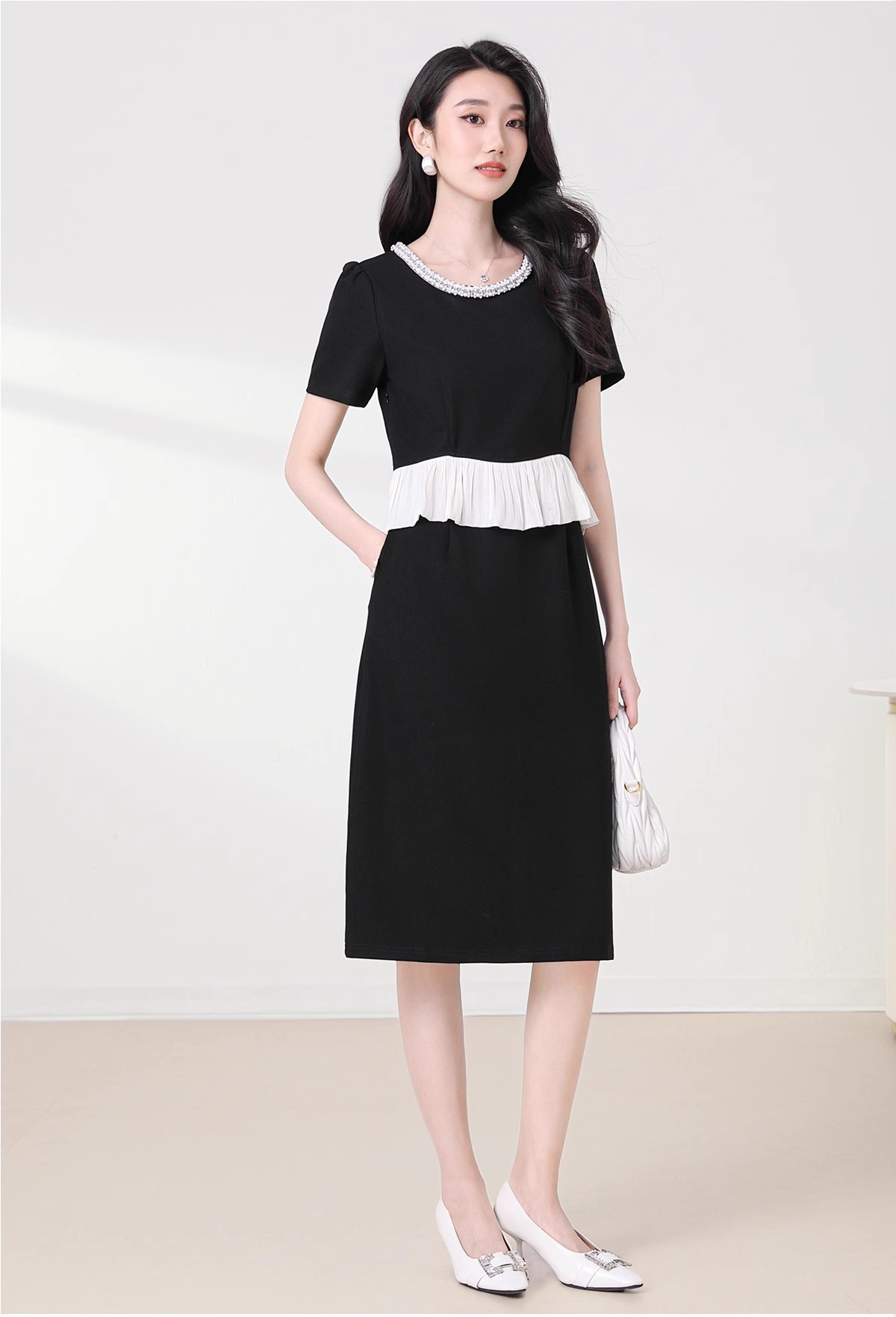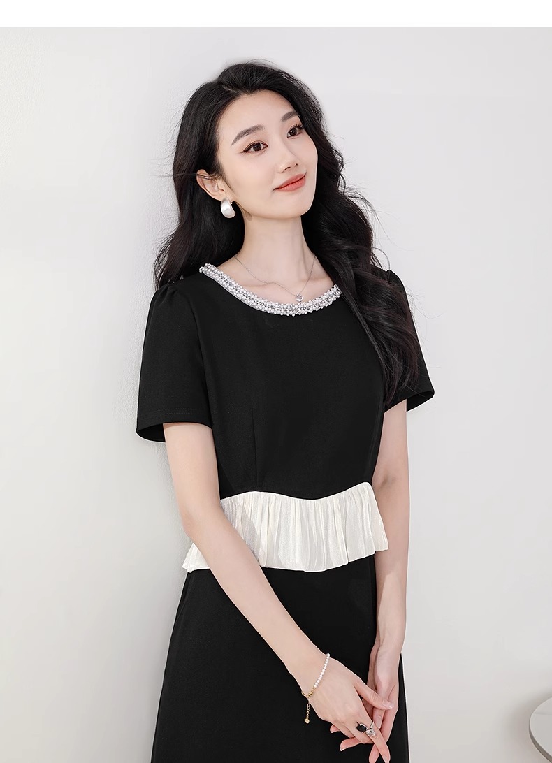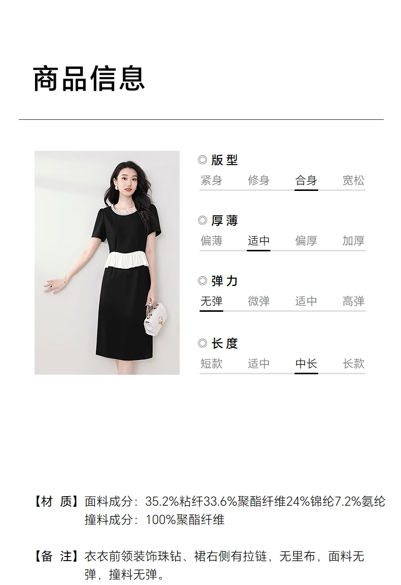 「自」全新升级【铂金会员211/天猫279/差价68】(94632)洛诗琳黑色圆领钉珠时尚撞色连衣裙女2025夏季新款气质小黑裙