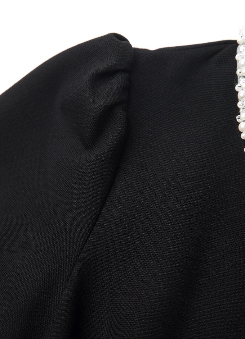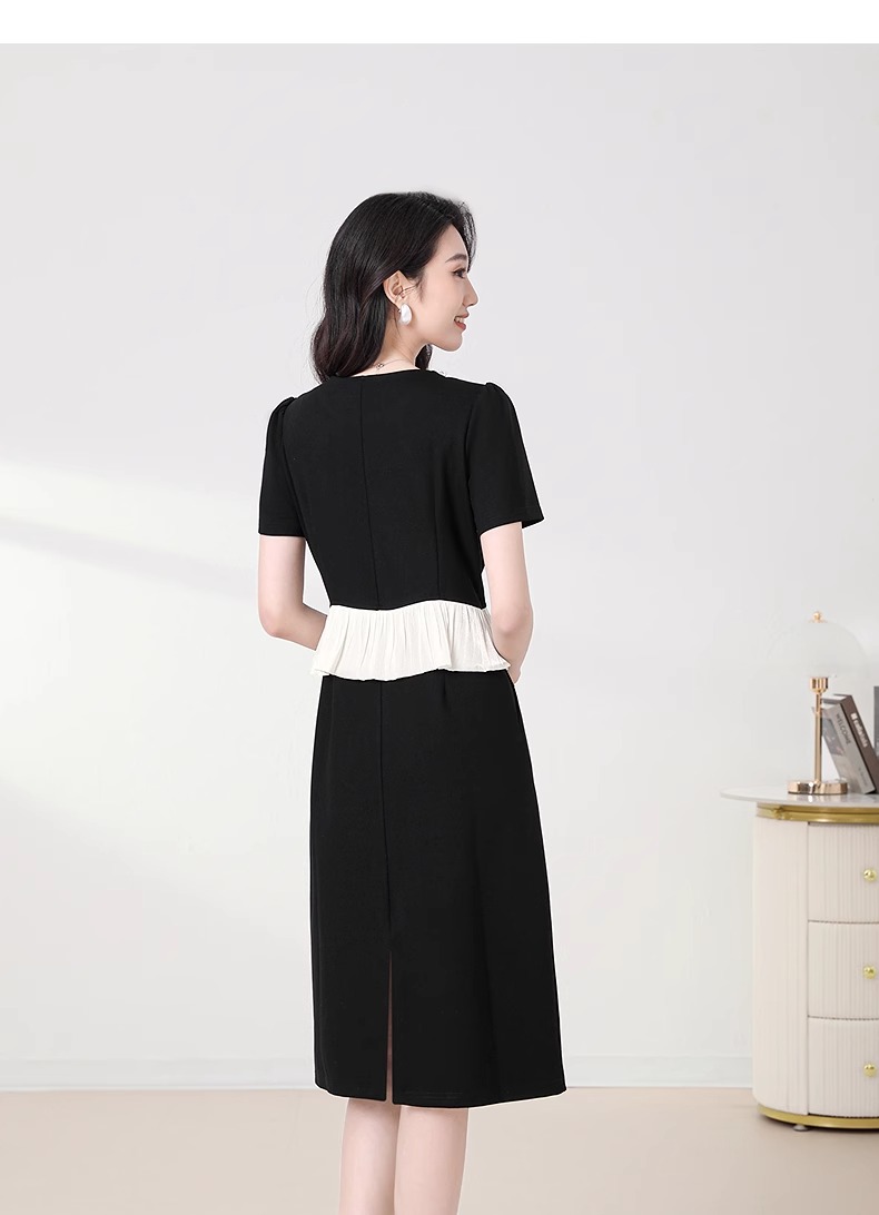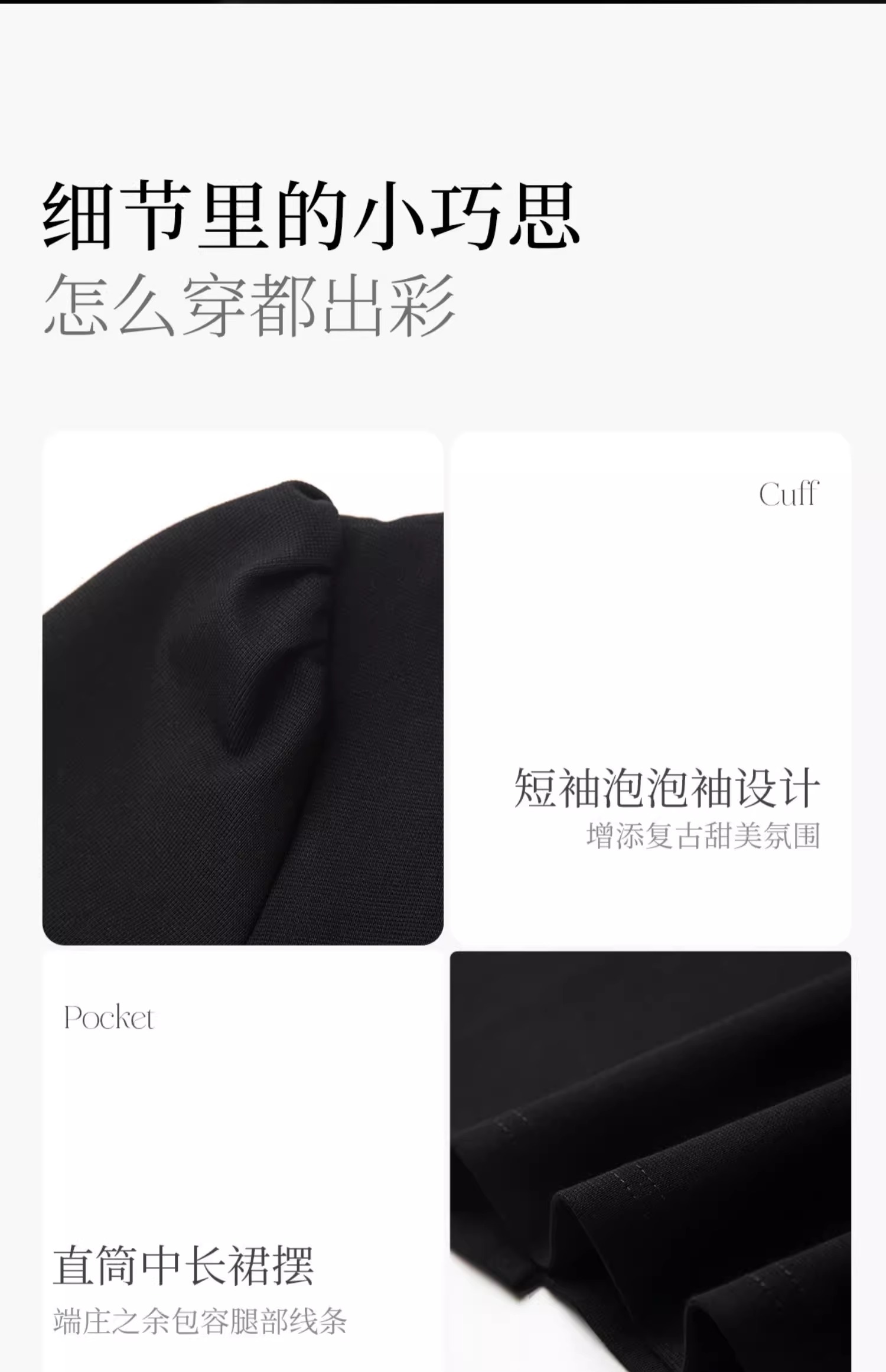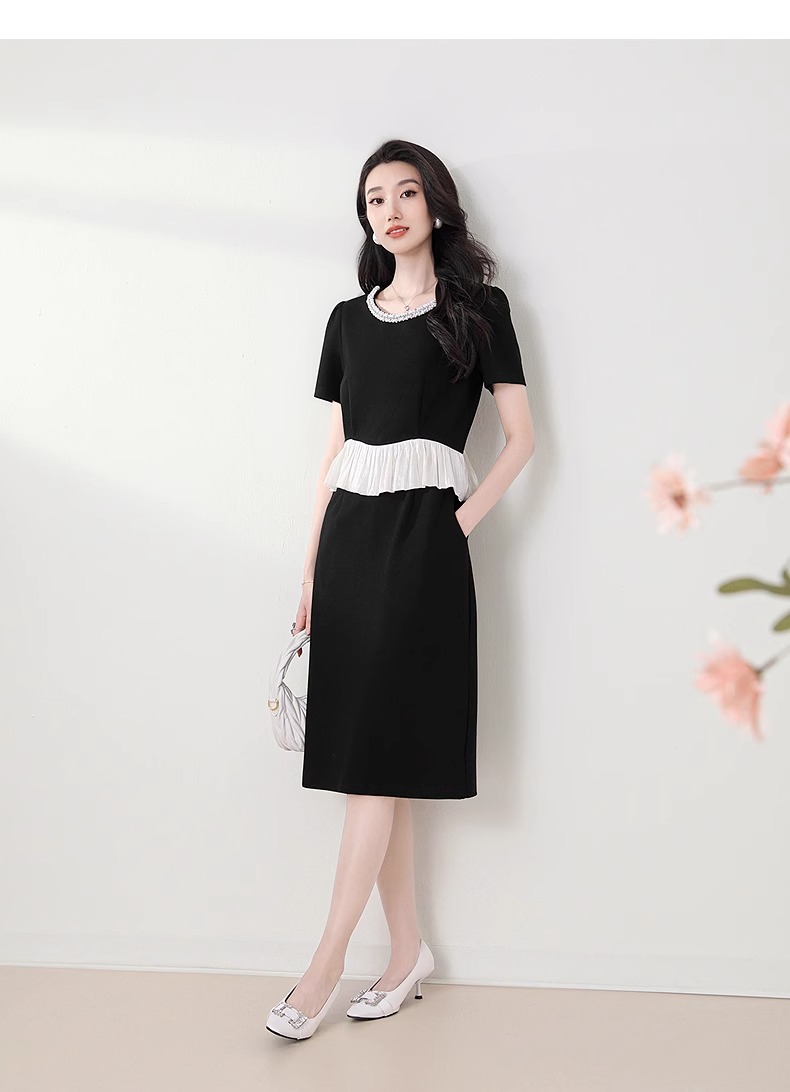 「自」全新升级【铂金会员211/天猫279/差价68】(94632)洛诗琳黑色圆领钉珠时尚撞色连衣裙女2025夏季新款气质小黑裙