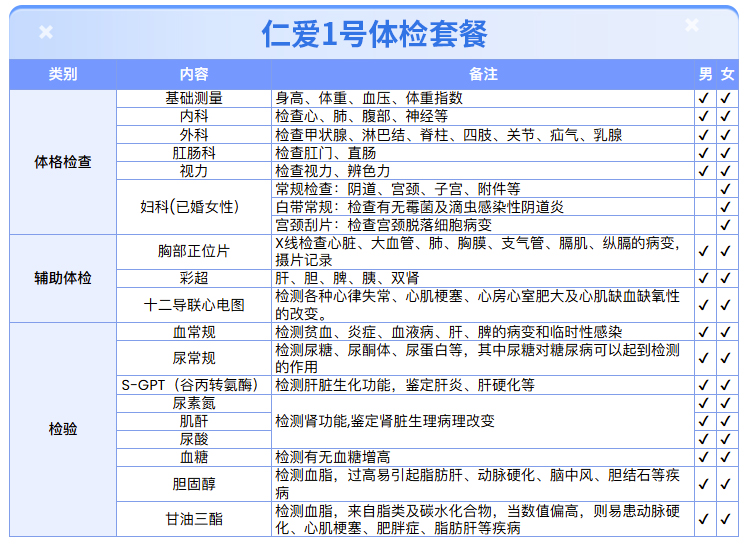 【中青年|初检】含胸部DR+五彩超+心电图+肾功能+血脂血糖 01