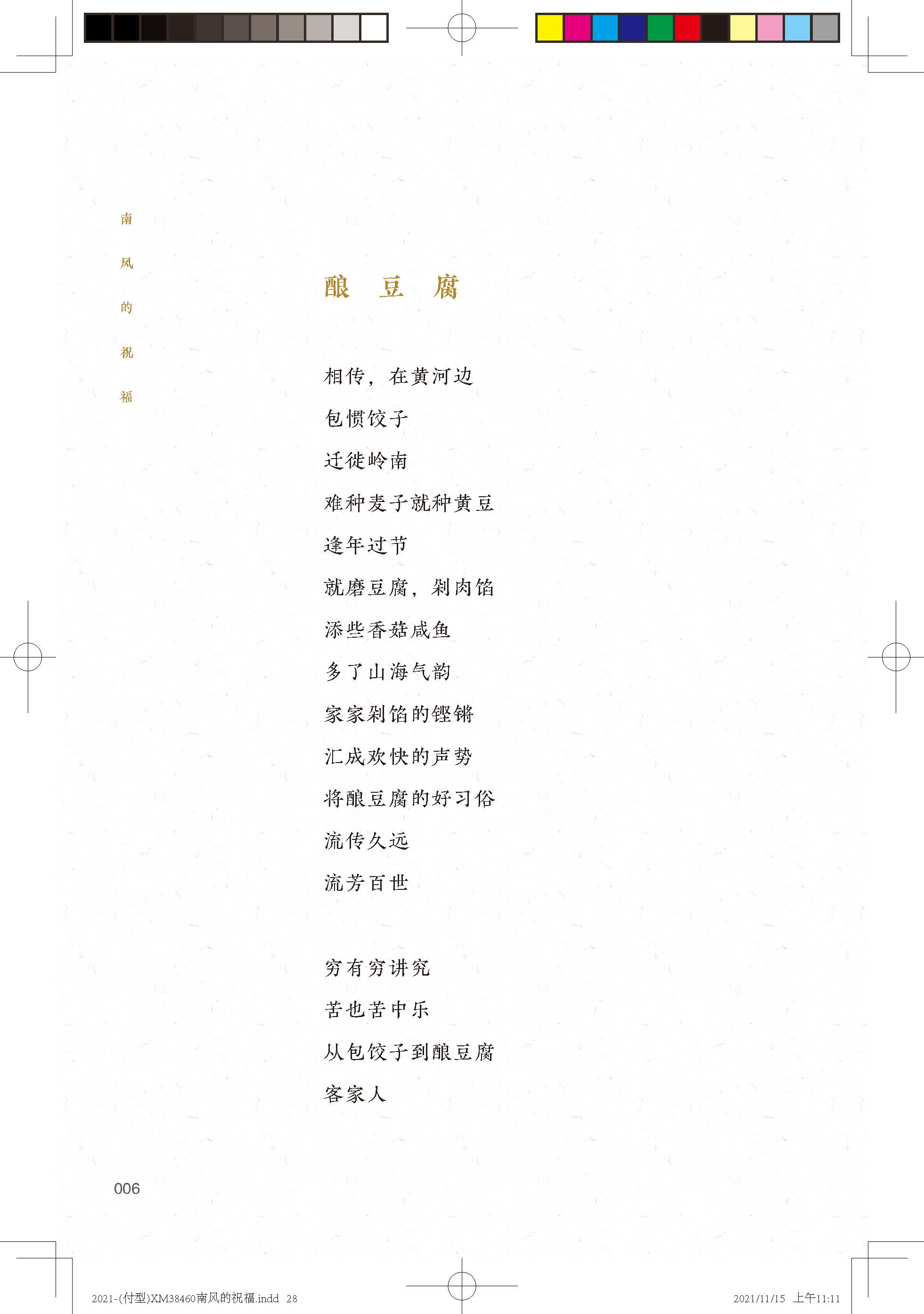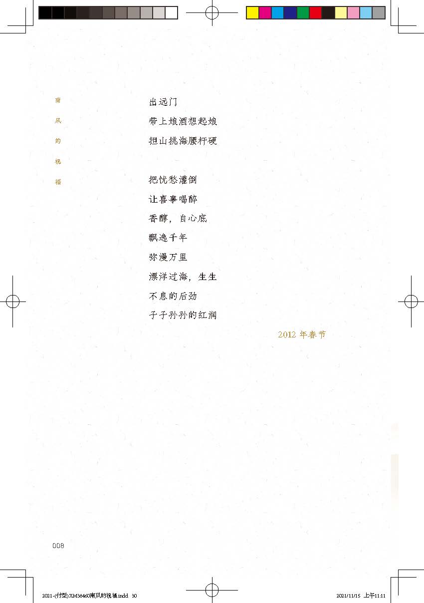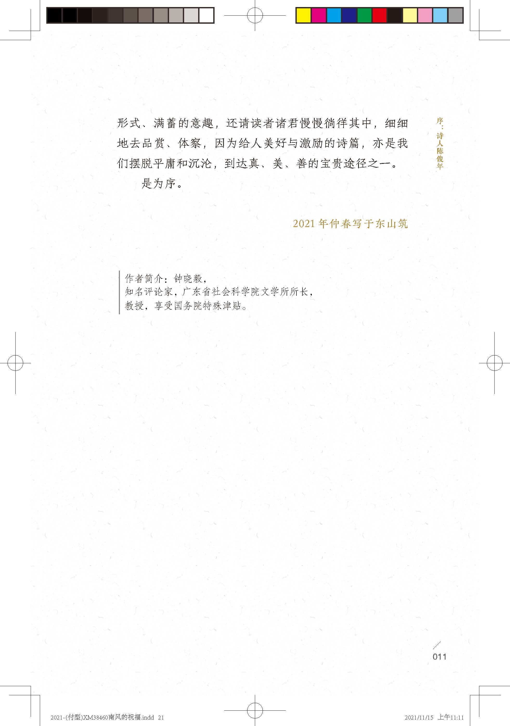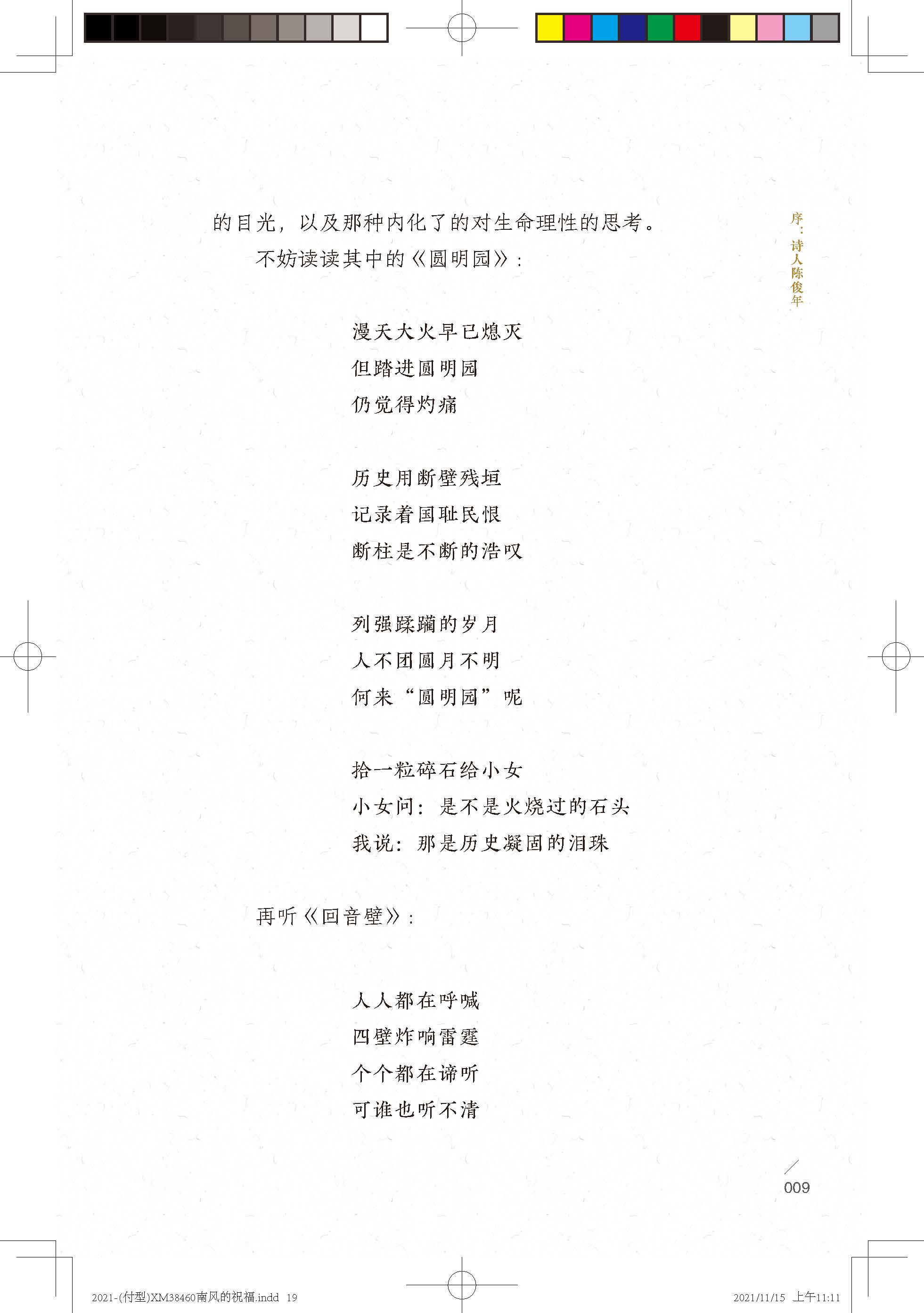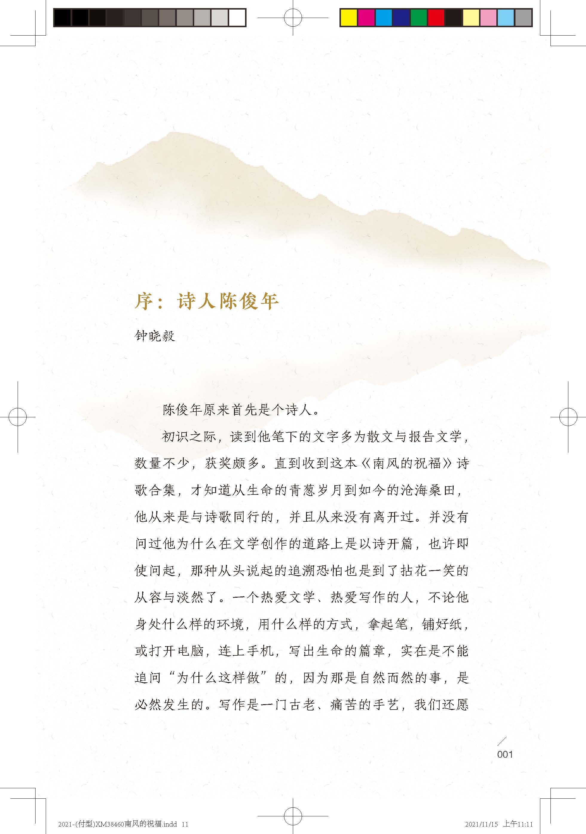 作者在《南风的祝福》中,用诗歌书写了作为一个文化人和出版家,对故乡、对旅途、对时代、对人生的经历和感悟,为其丰富的人生阅历赋予了浓浓的诗意,仿佛在用文字展开一幅宏伟又细腻的画卷。在当今这个信息过载、流量汹涌的年代,这一本蕴含着厚重情感的诗集的面世,显得尤为难能可贵。