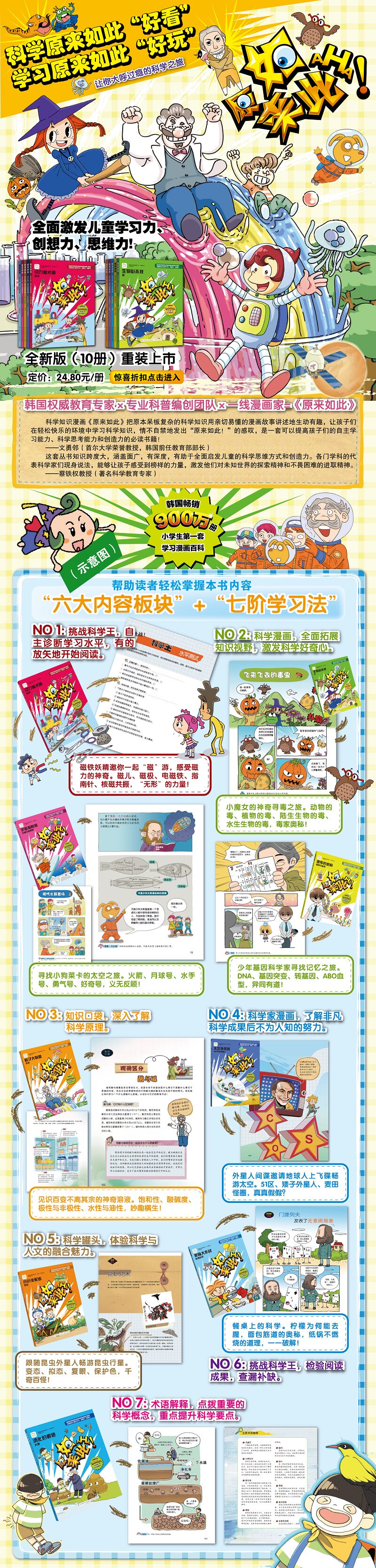 《原来如此》是一套兼具权威与创意的大型学习漫画百科。本丛书由韩国权威教育类出版社金星出版社集合韩国顶级的教育专家、科普编创团队、优秀漫画家倾力打造的精品科学读物。丛书覆盖了天文、地理、自然、生物、医学、物理、化学、生活、环境、探险等多领域。内容编排系统全面、有深度、有广度,同时融入了大量最新的科技发展成果以及与青少年生活息息相关的新颖知识,知识严谨可信,形式生动有趣,能够极大激发儿童的自主学习能力、科学创想能力和思维能力,帮助他们树立积极进取不惧挑战的科学精神。独具创意的“六大板块”+“七阶学习法”,帮助小读者循序渐进轻松掌握该书内容。