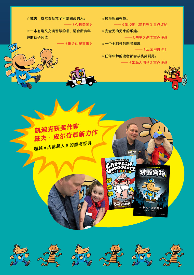 [美] 戴夫·皮尔奇(Dav Pilkey)出生于1966年3月4日,是美国 儿童文学作家、漫画家和插画家,著有火爆全美的系列漫画《内裤队长》《神探狗狗》等。