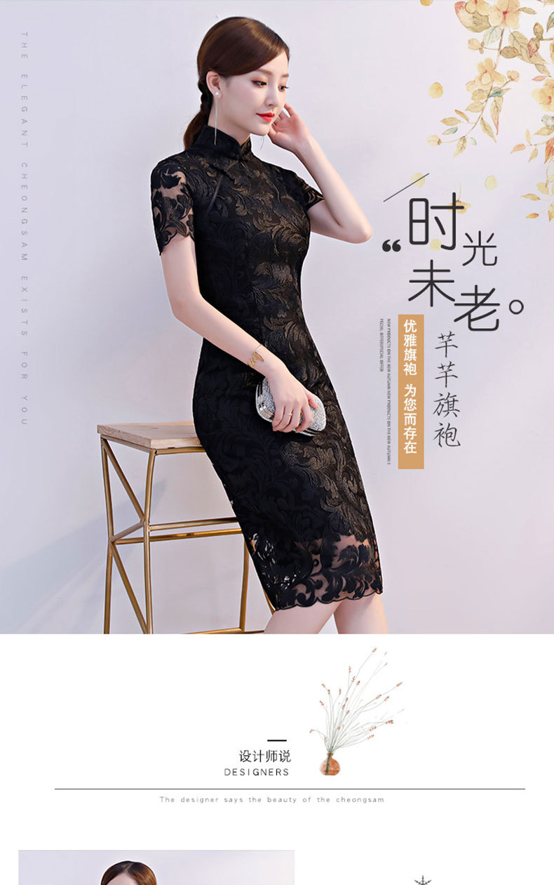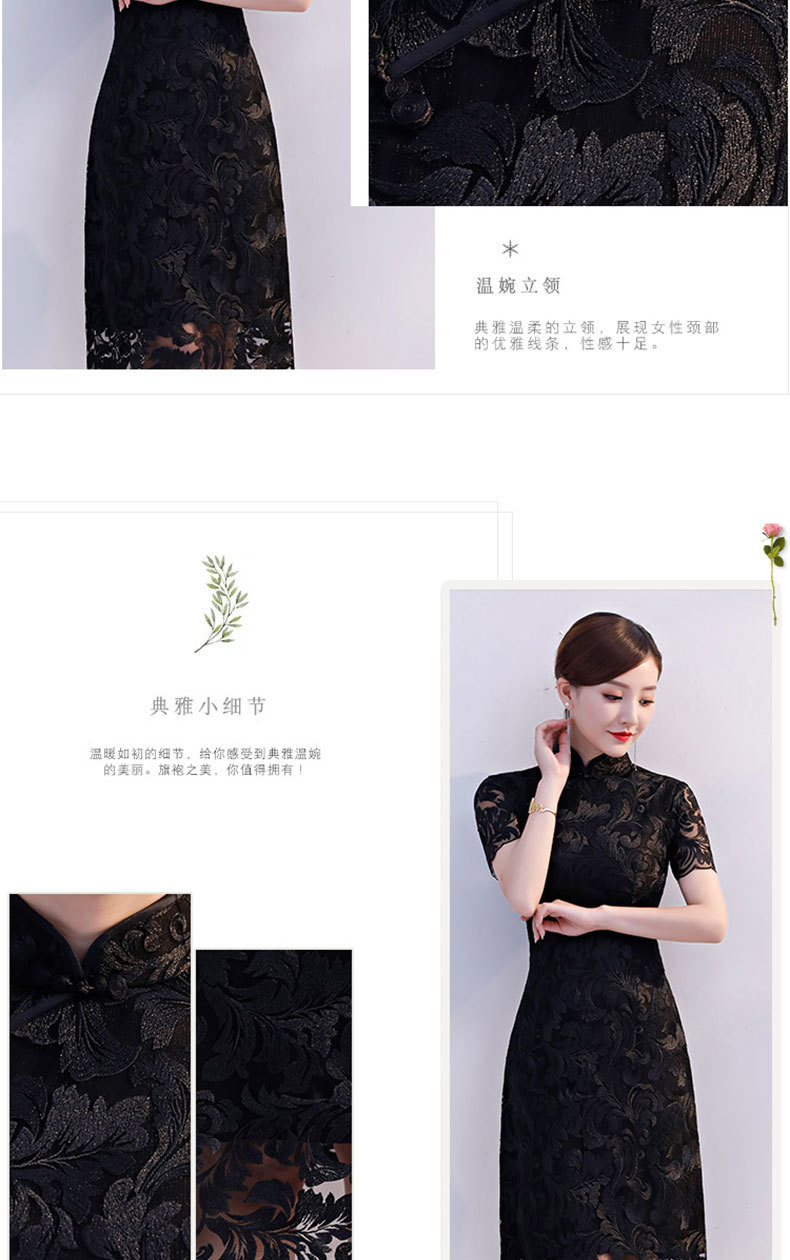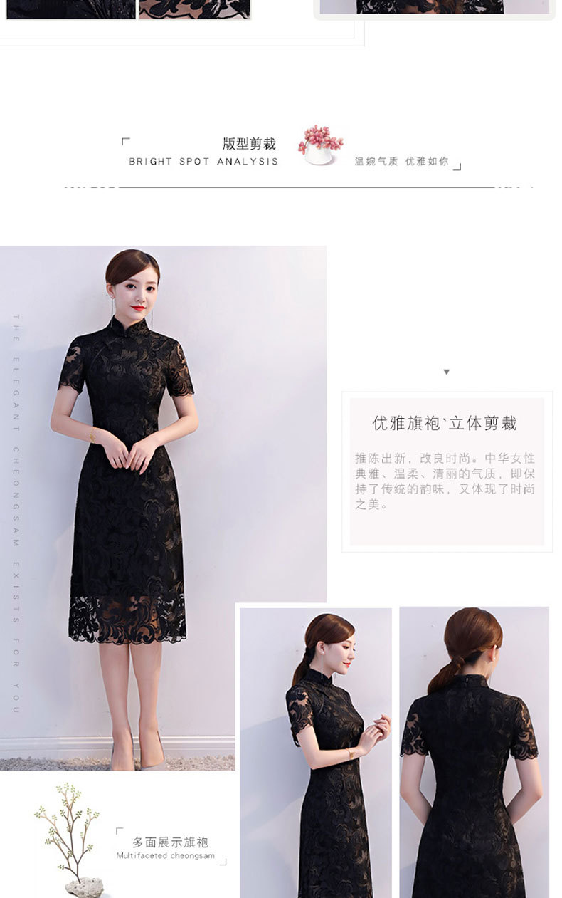 TZM-330新款优雅中国风蕾丝中长款礼服连衣裙