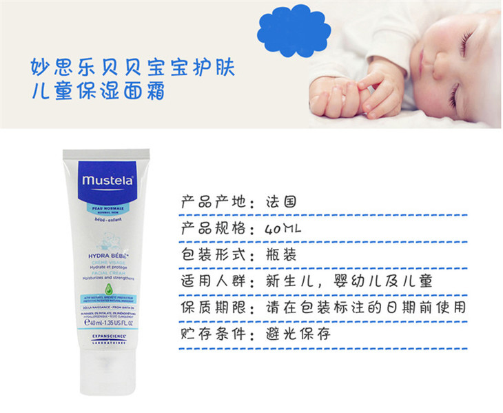 法国Mustela妙思乐贝贝保湿面霜-40ML新旧版本随机发货