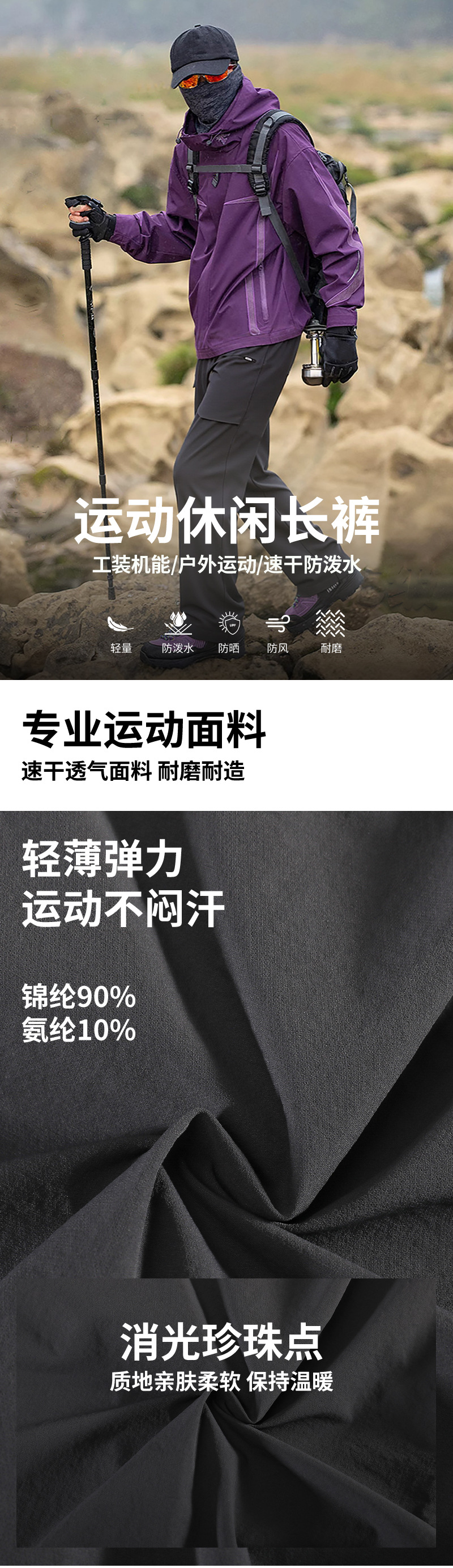 跃牌【跃LEAP-ACTIVE】四面弹防泼水登山速干冲锋裤 卡扣直筒多口袋机能工装裤L52144