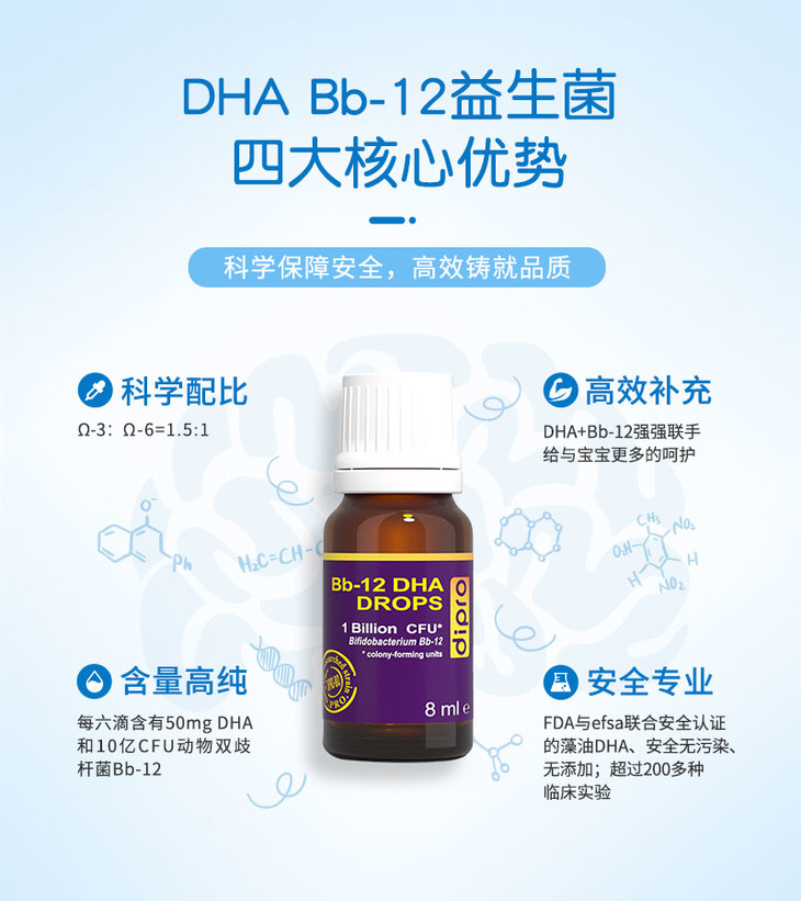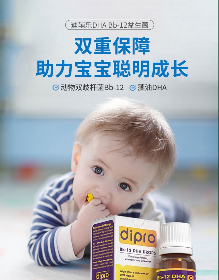 迪辅乐dipro DHAbb12科汉森益生菌婴幼儿新生婴儿童肠胃滴剂 8ml/瓶
