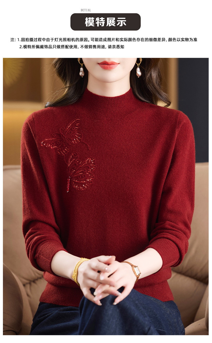 中年妈妈100纯羊毛衫,大气上档次上衣打底毛衣CC-YM-296