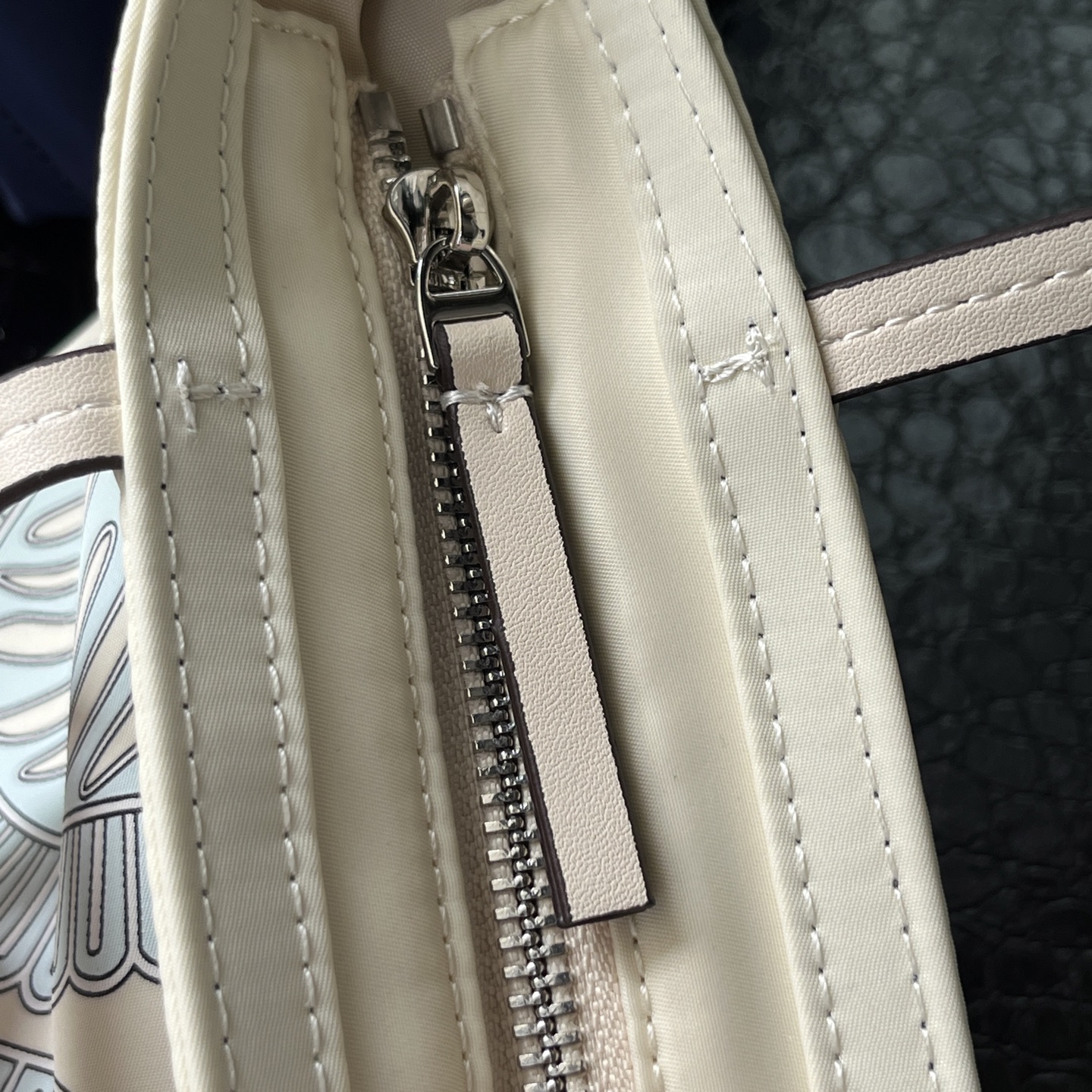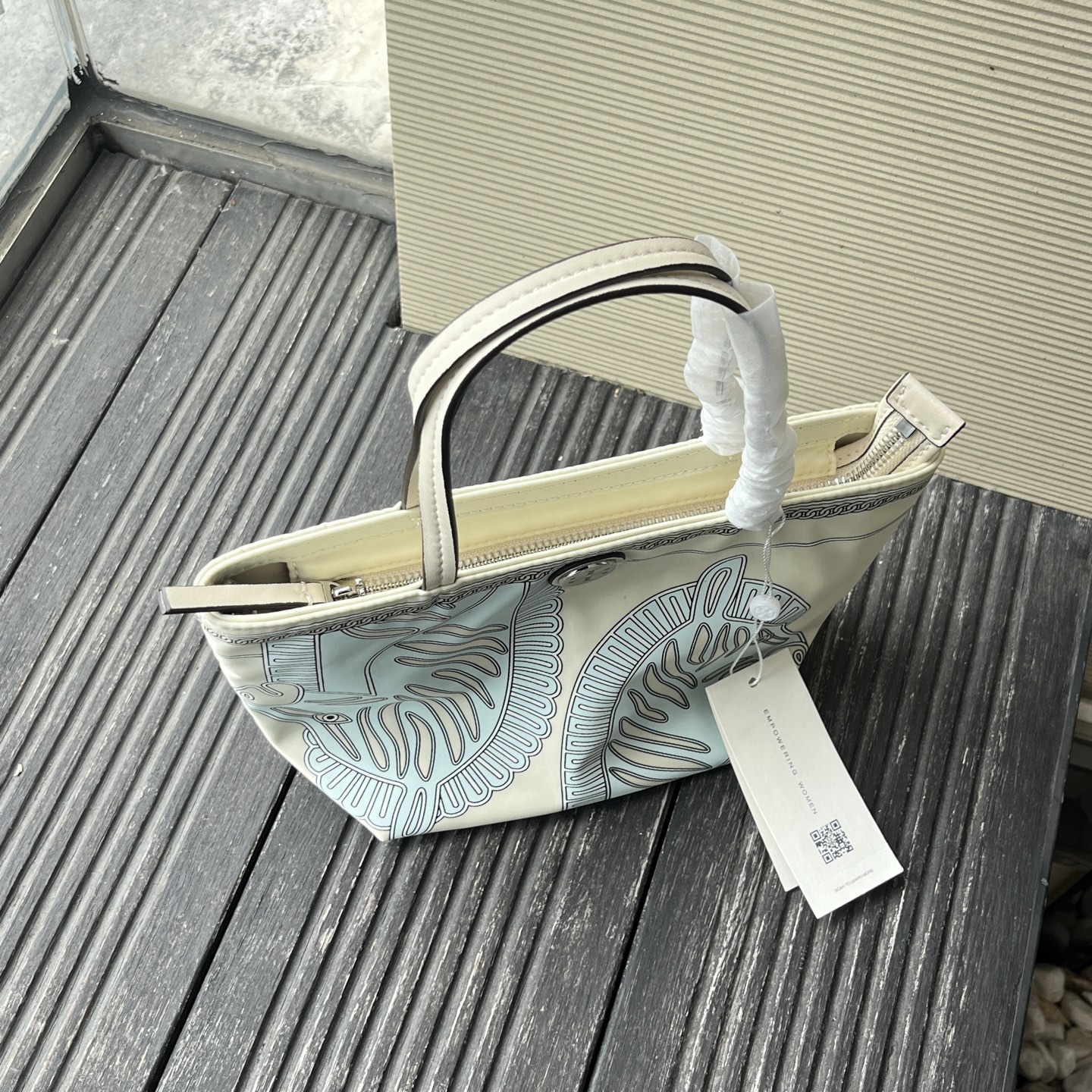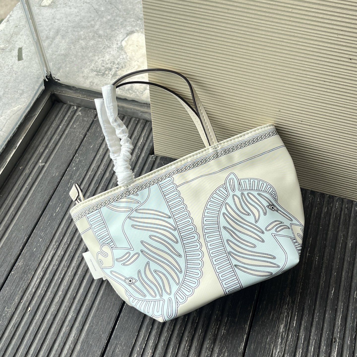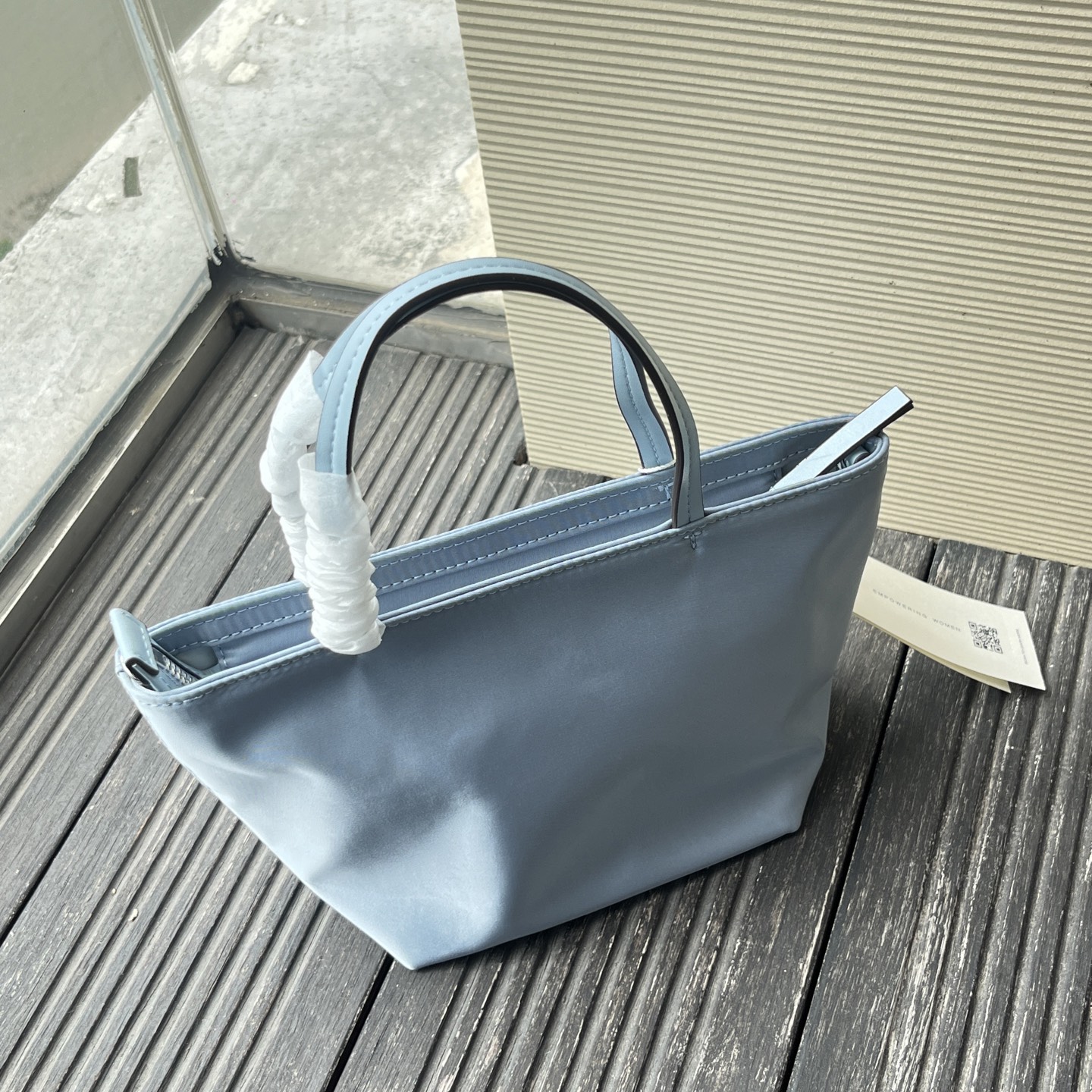 ① 材质:轻量耐造,通勤无负担 包身采用防水耐磨织物,搭配皮革饰边,自重轻到背满物品也不压肩,咖啡渍、灰尘一擦即净,通勤党/宝妈/学生党都能“粗放式使用”。 ② 容量:小身材装下大日常 别看包型秀气,内里空间足够容手机📱 水杯+mini伞+化妆包,内侧还有插袋收纳钥匙、口红,不用再翻包“寻宝”。 ③ 设计:经典双T,细节见质感 标志性双T金属Logo点缀包身,简约不张扬;提手做了柔软包边,手提/肩背都舒适;可拆卸长肩带,切换“手提精致感”或“斜挎松弛感”。4️⃣色都好看!(米白也叫冰川蓝)