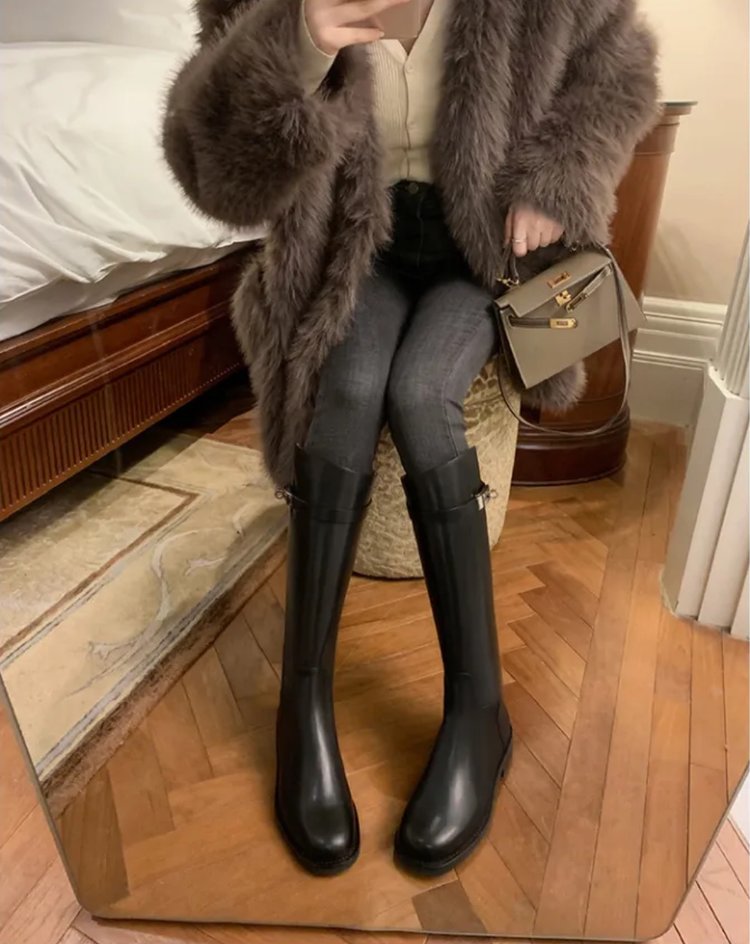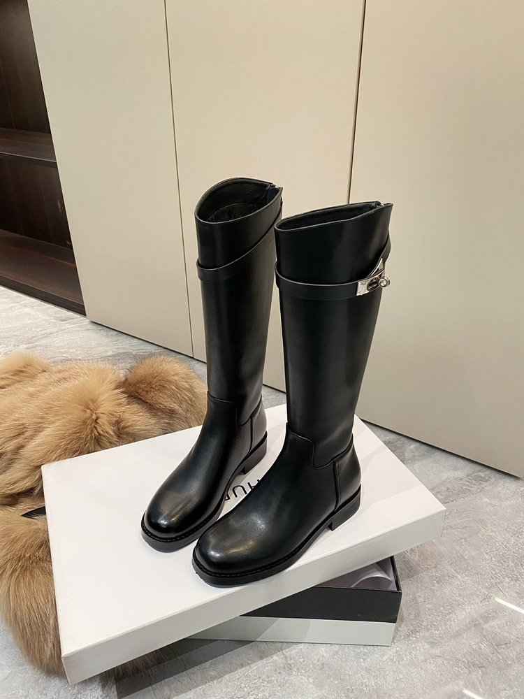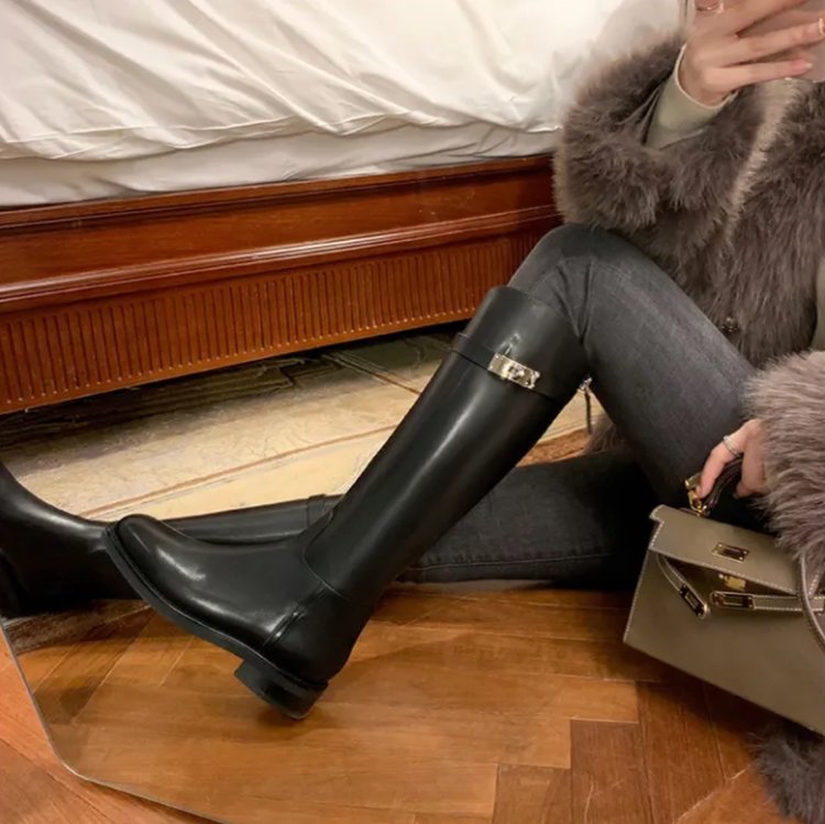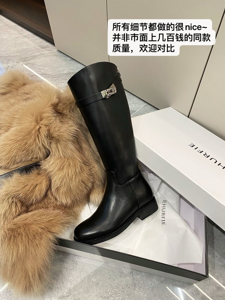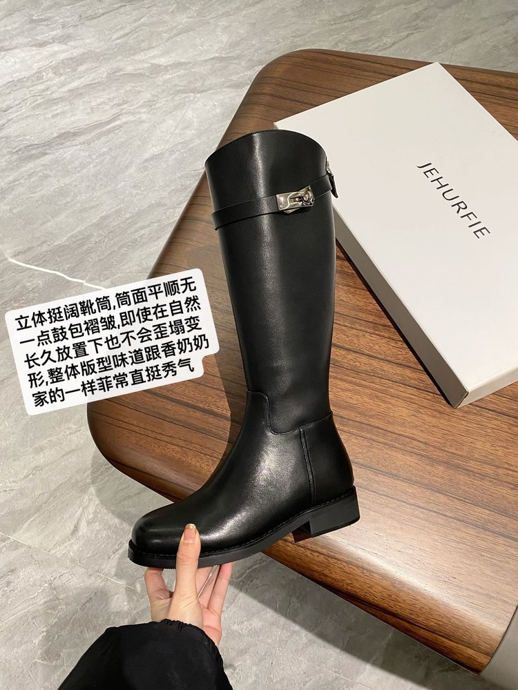 【货号】:AB23716【品牌】:JEHURFIE/纪华菲【产地】:温州【颜色】:黑色【 材质】:牛皮【脚垫】:乌拉草脚垫【鞋底】:橡胶+木纹跟【跟高】:3.5CM【筒高】:38.5cm【筒围】:35【重量】:单只净重557g (37码)【款式】:长靴【规格】: 35-40【快递】:圆通 极兔 韵达【发货地】:温州 【加运费地区】新疆 西藏 +27 【不发地区】 港澳台地区暂不发