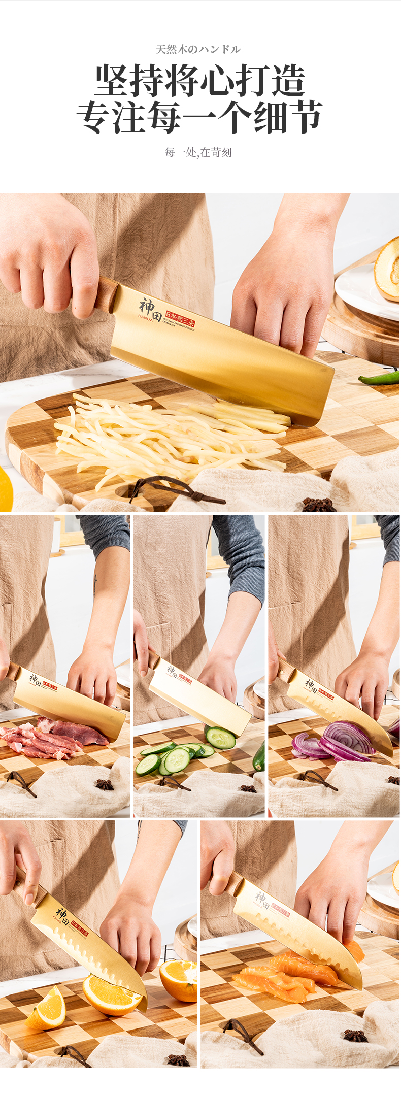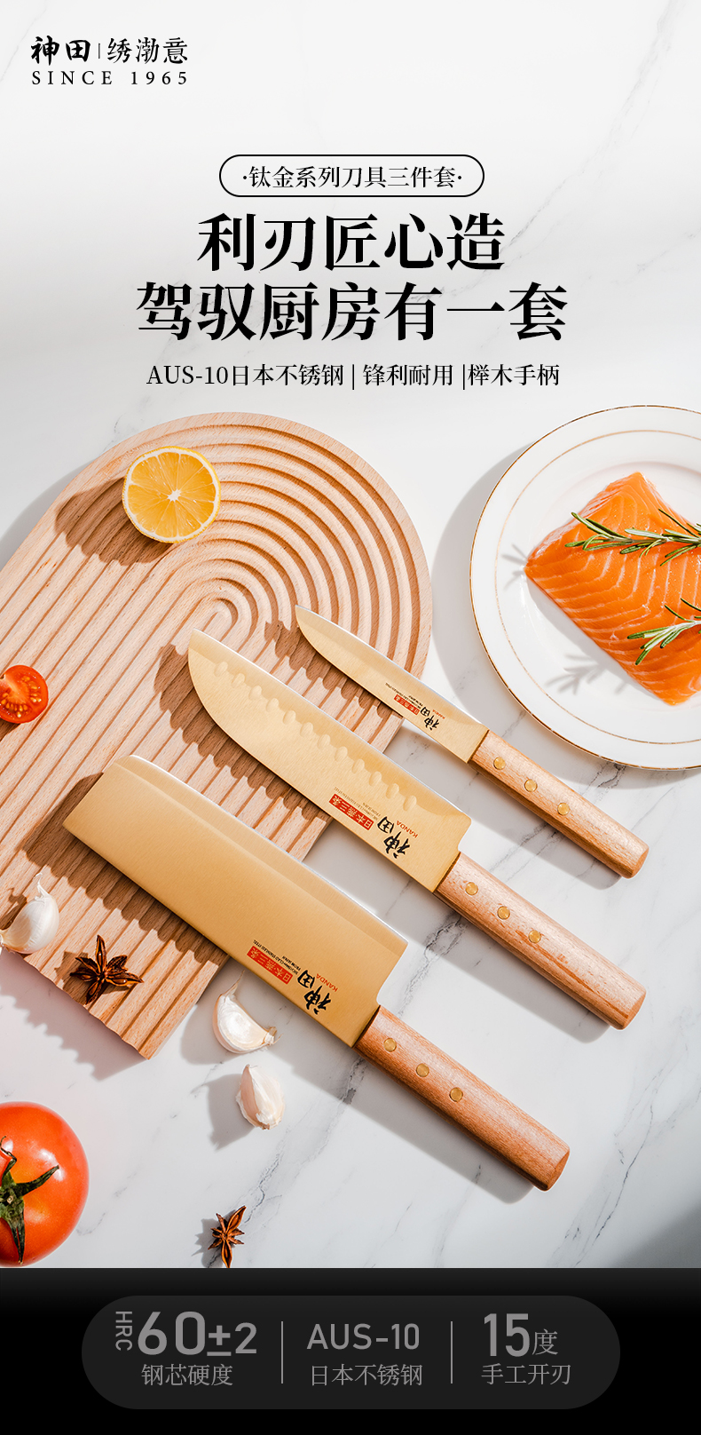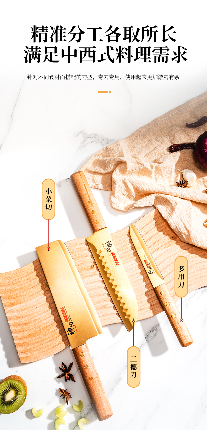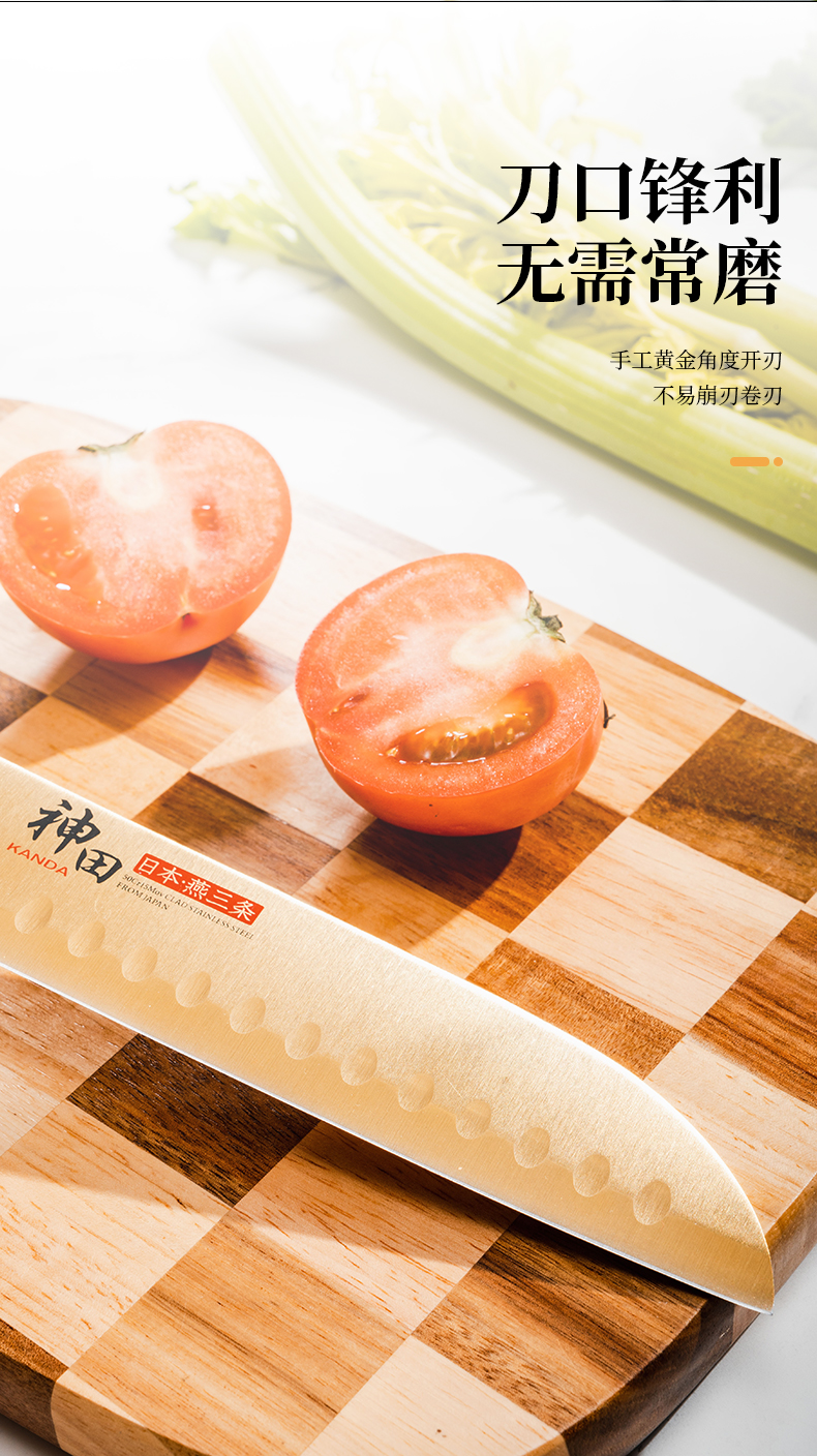 神田| 绣渤意钛金系列小菜切三德刀水果刀 礼盒装