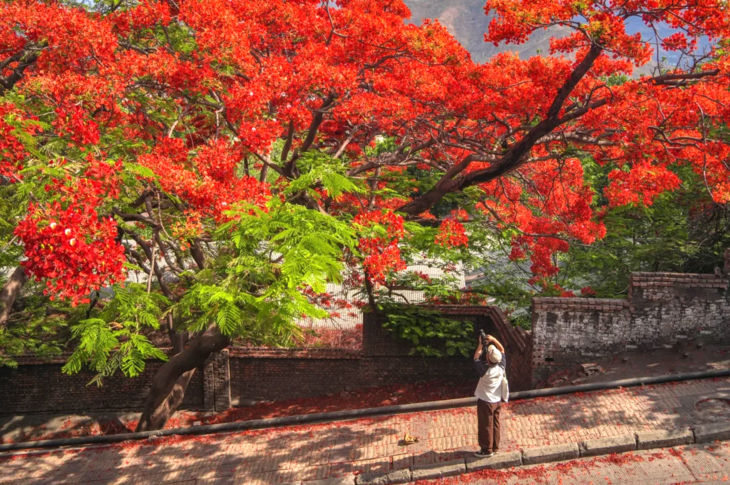 随后我们告别土林,奔赴花城。抵达攀枝花后,前往【凤凰花公园】。凤凰花也叫红花楹,烈焰般的凤凰花在风中摇曳,一簇簇火红花瓣在枝头跳动;远远望去,舒展如振翅的凤凰。公园内凤凰花树茂密,紧邻金沙江,江风拂面,2万多株凤凰花竞相绽放,漫山遍野的凤凰花红成一片,犹如天边的火烧云,非常壮观。
