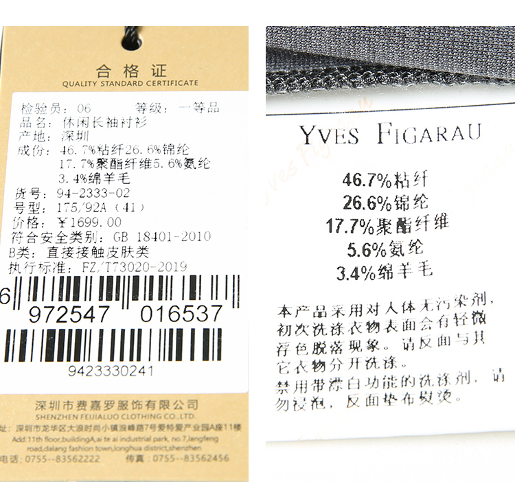 YvesFigarau伊夫·费嘉罗秋冬新款休闲长袖衬衫942333