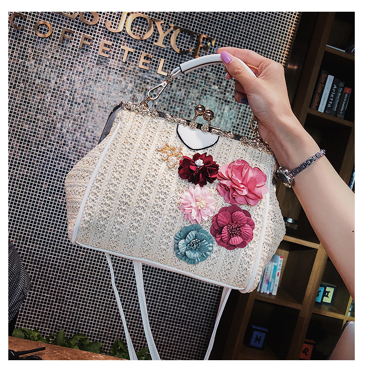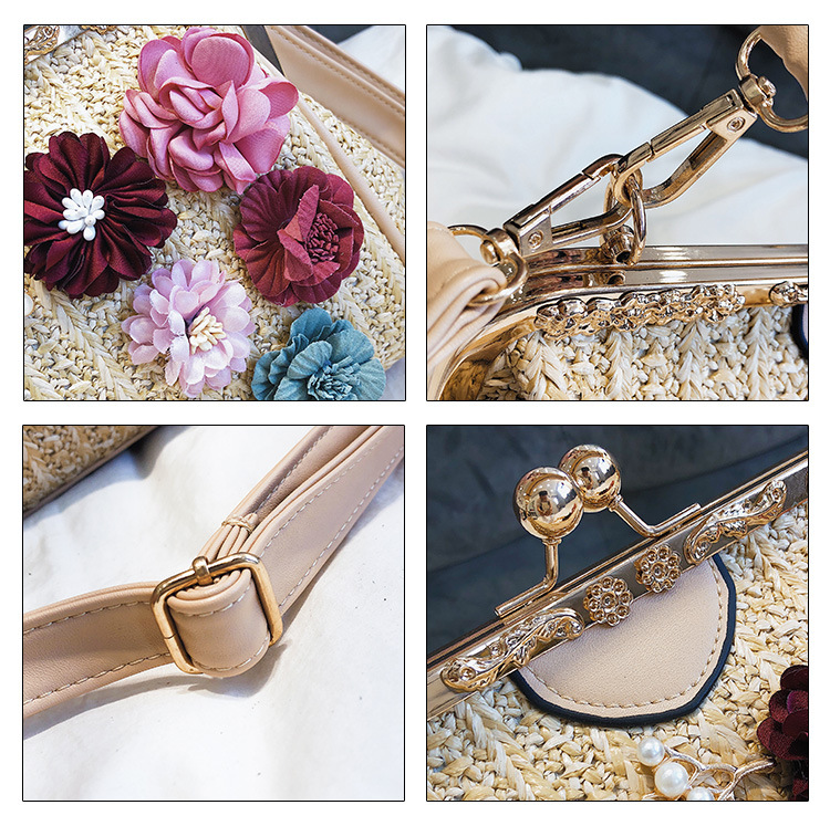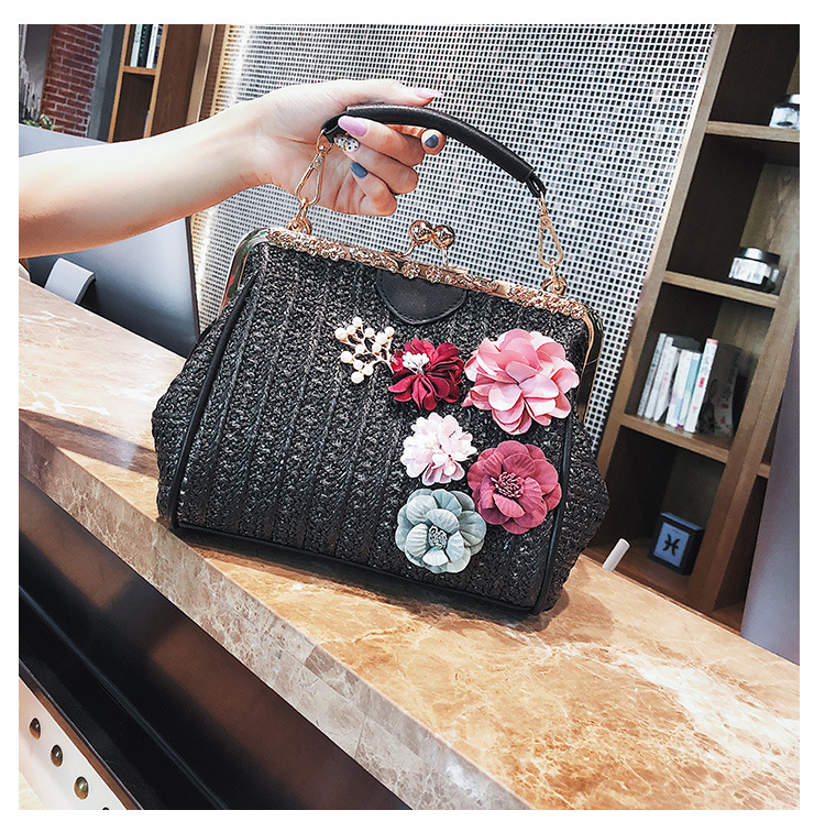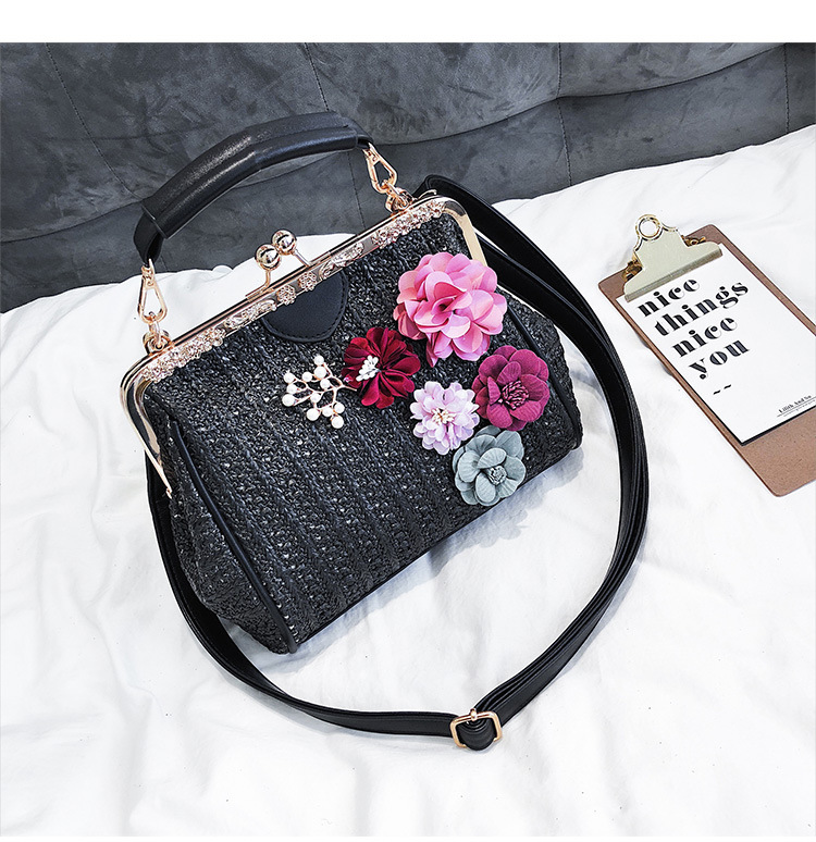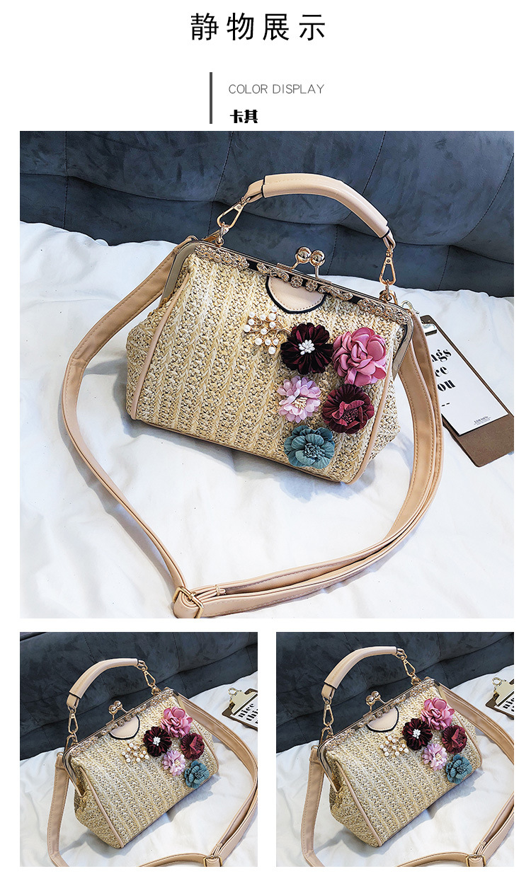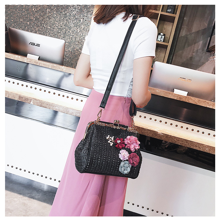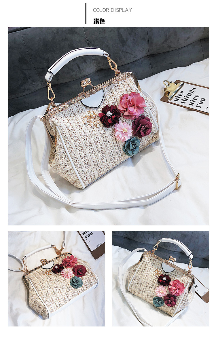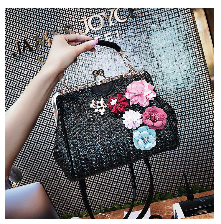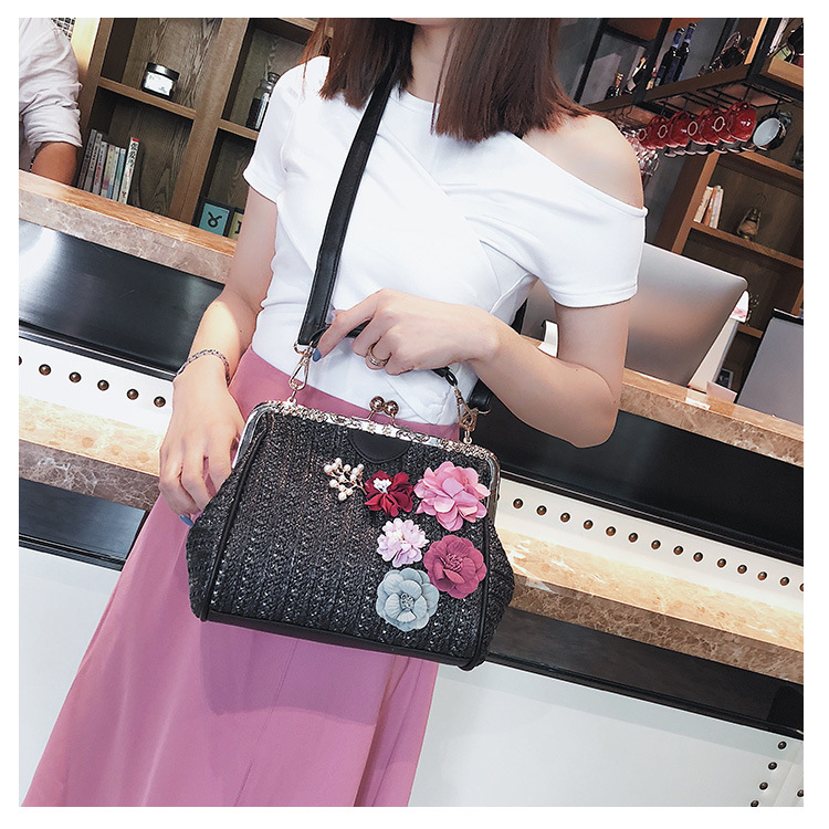 AML-906-1529潮版编织花朵贝壳包夏天链条单肩斜挎草编包