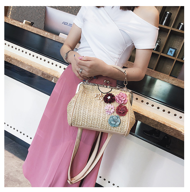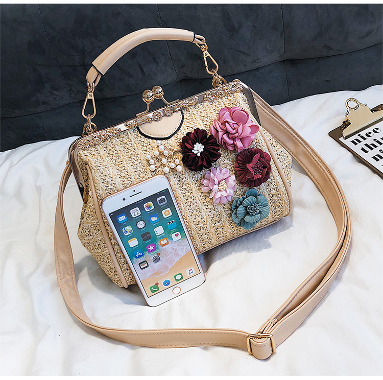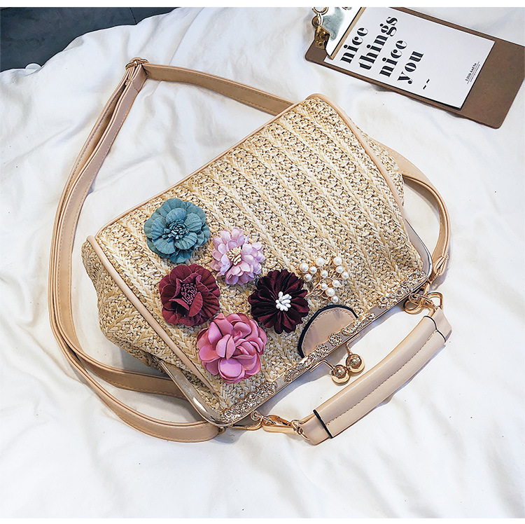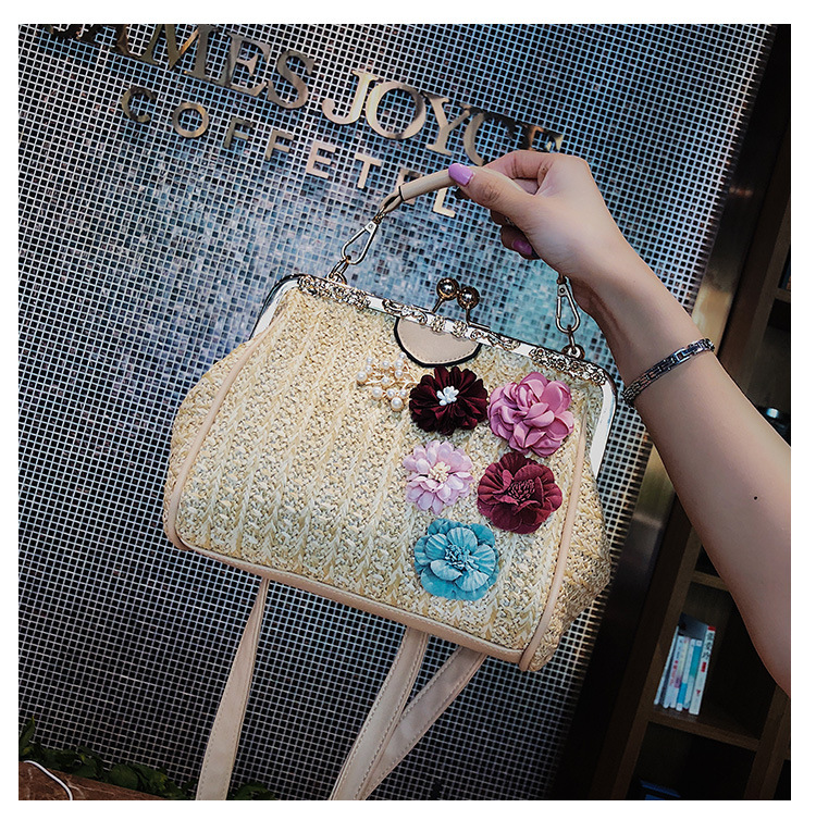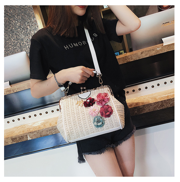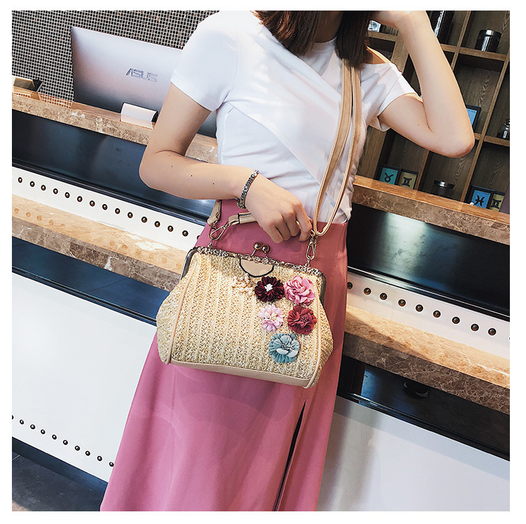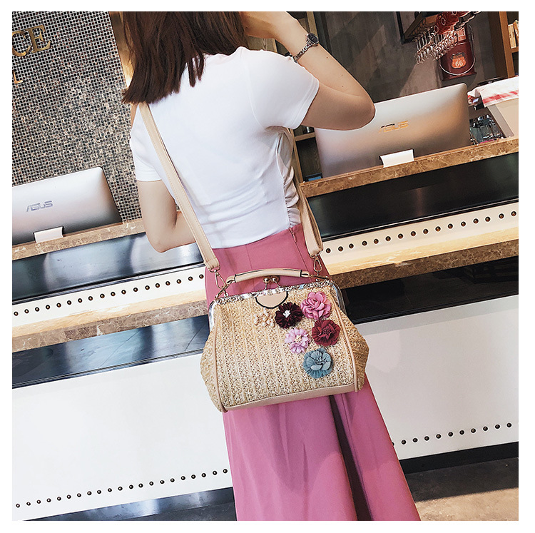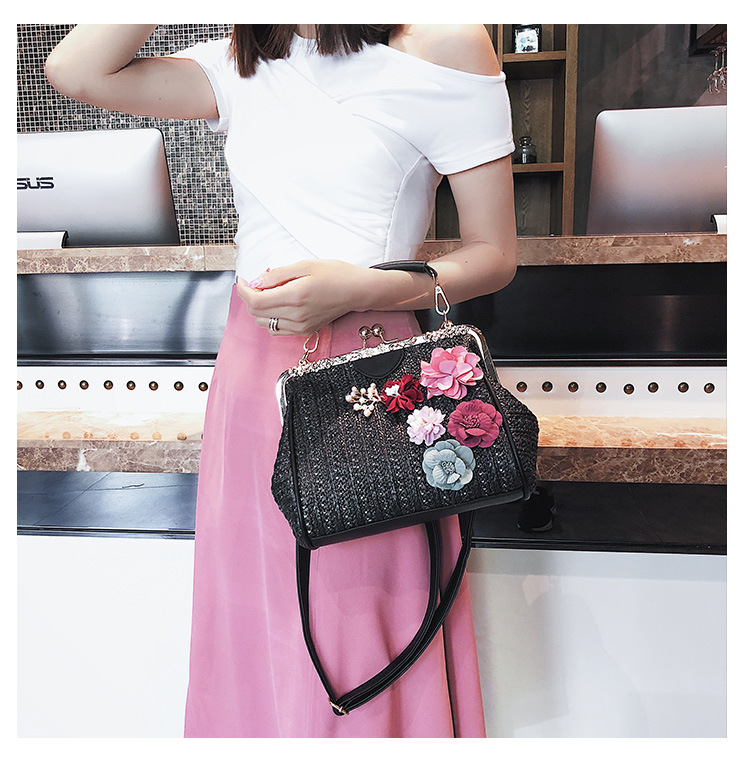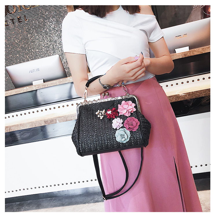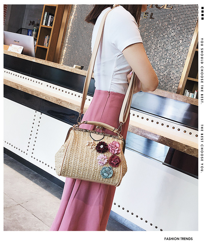 AML-906-1529潮版编织花朵贝壳包夏天链条单肩斜挎草编包