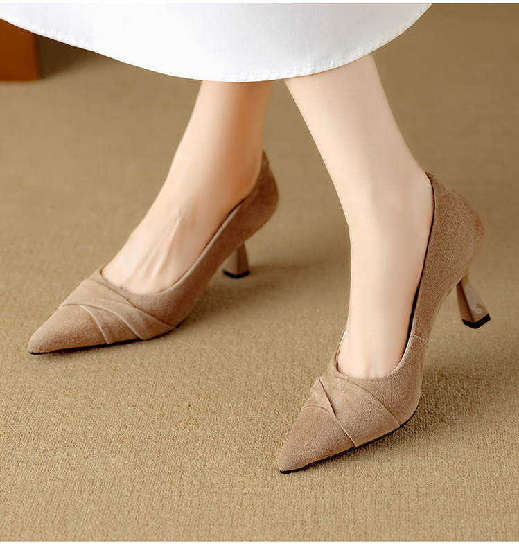 【预售5天】简约复古风~时尚驼色高跟鞋女秋新款真皮尖头细跟浅口优雅单鞋女DB&M6533