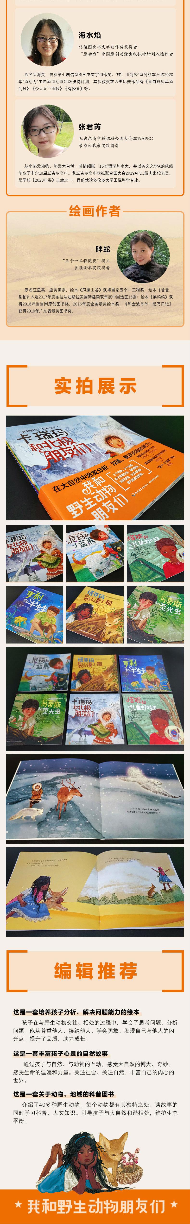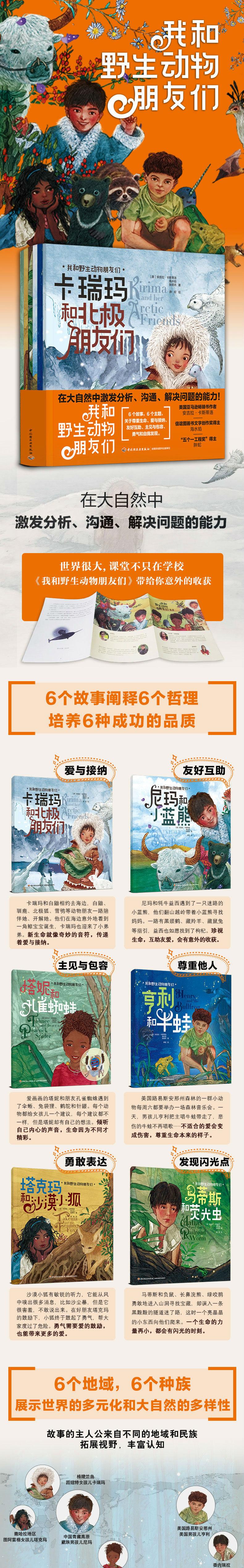 《我和野生动物朋友们》共6册,讲述的是不同地域、不同族裔的六个孩子跟当地的野生动物之间发生的有趣故事,主题分别是关于新生命、关于勇气、关于独特的自己、尊重生命等。