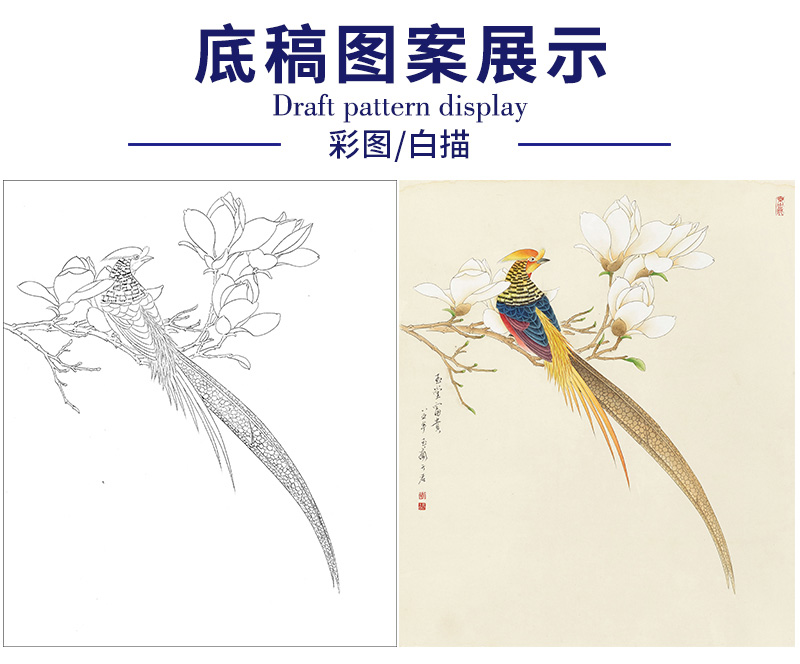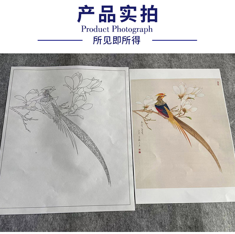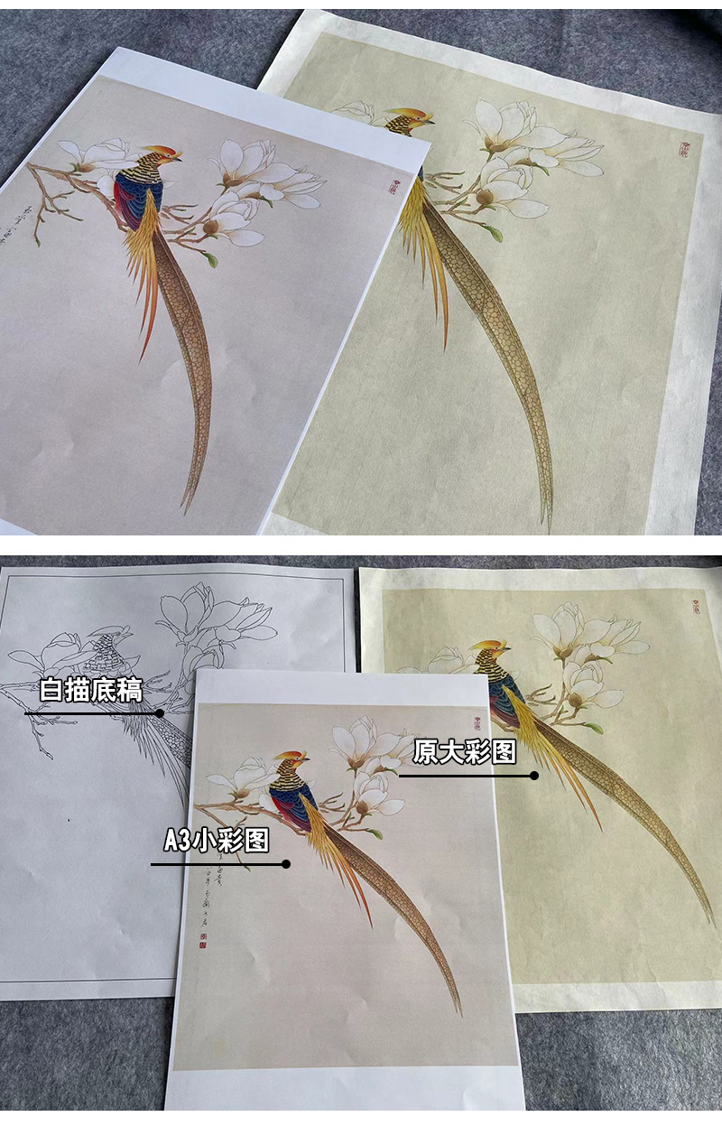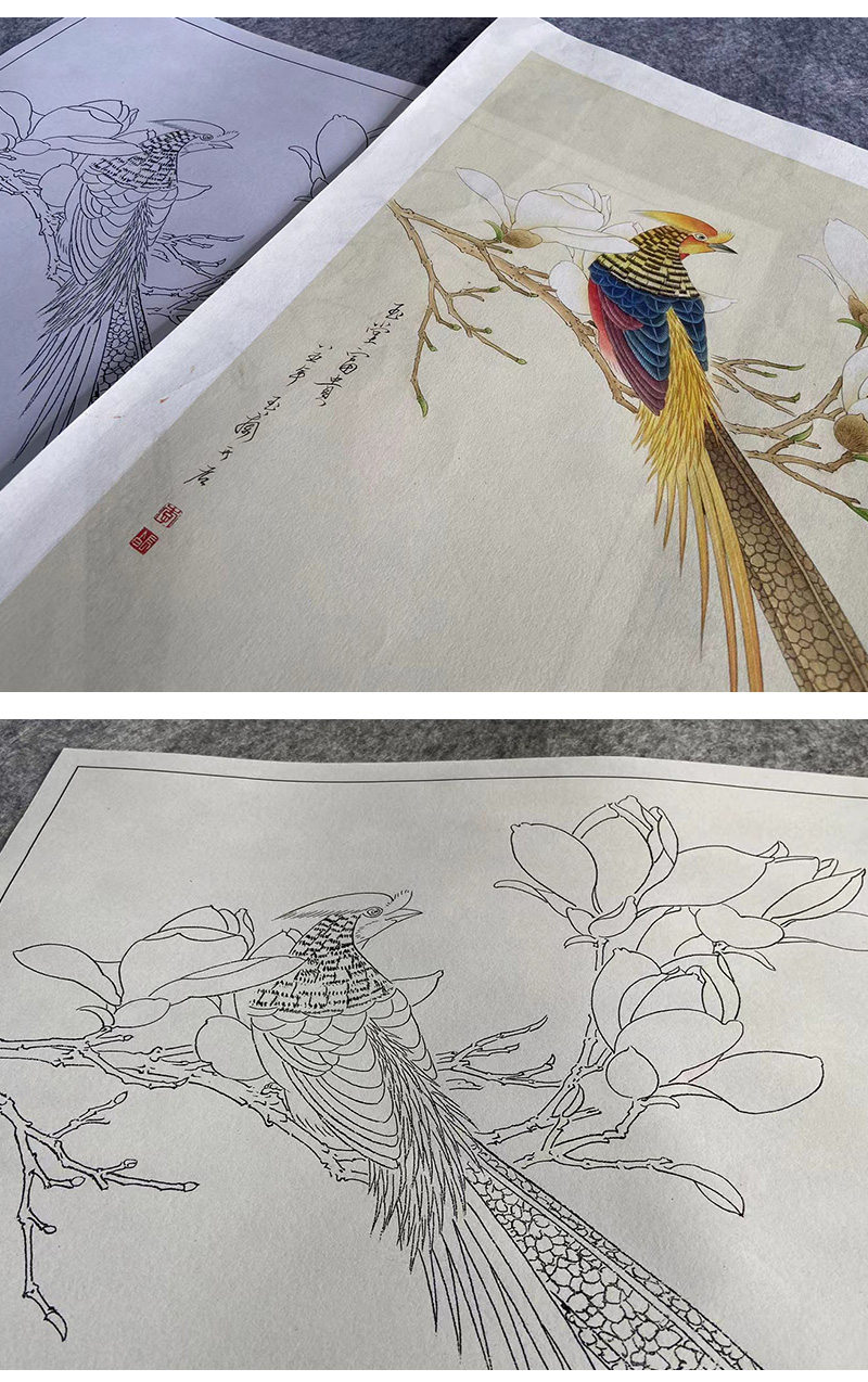 李长白工笔画花鸟白描底稿玉兰锦鸡《玉堂富贵》花鸟线稿YL01