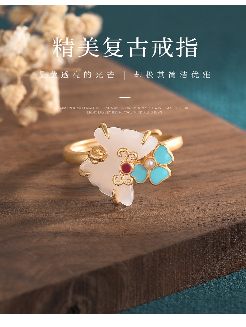 CJY-CP214 时尚简约气质铜镀金镶和田玉蝴蝶戒指