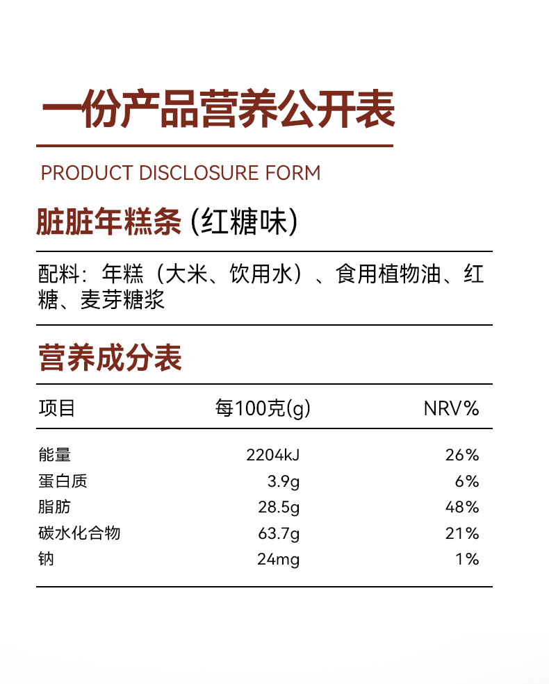 同竹堂脏脏年糕条(红糖味)/1罐(210g)生产日期:11月1日左右补单专用