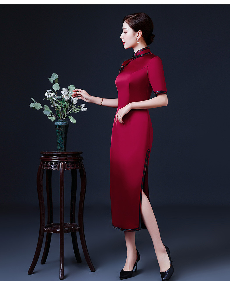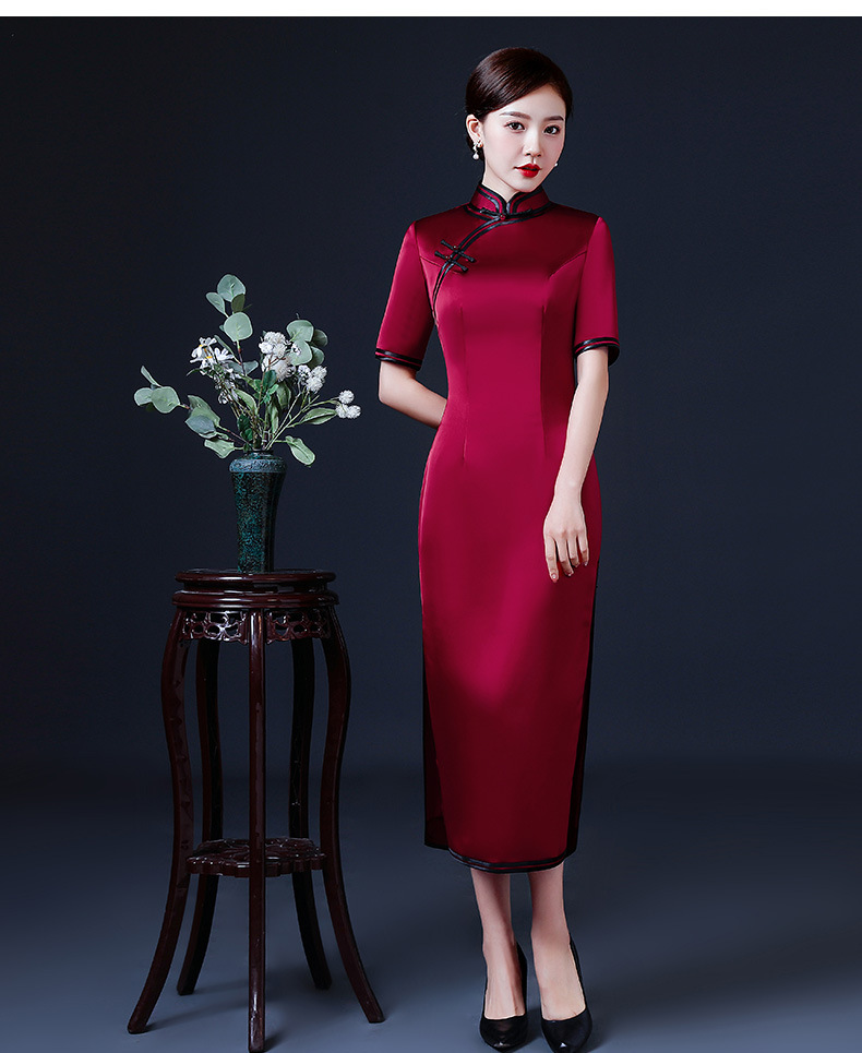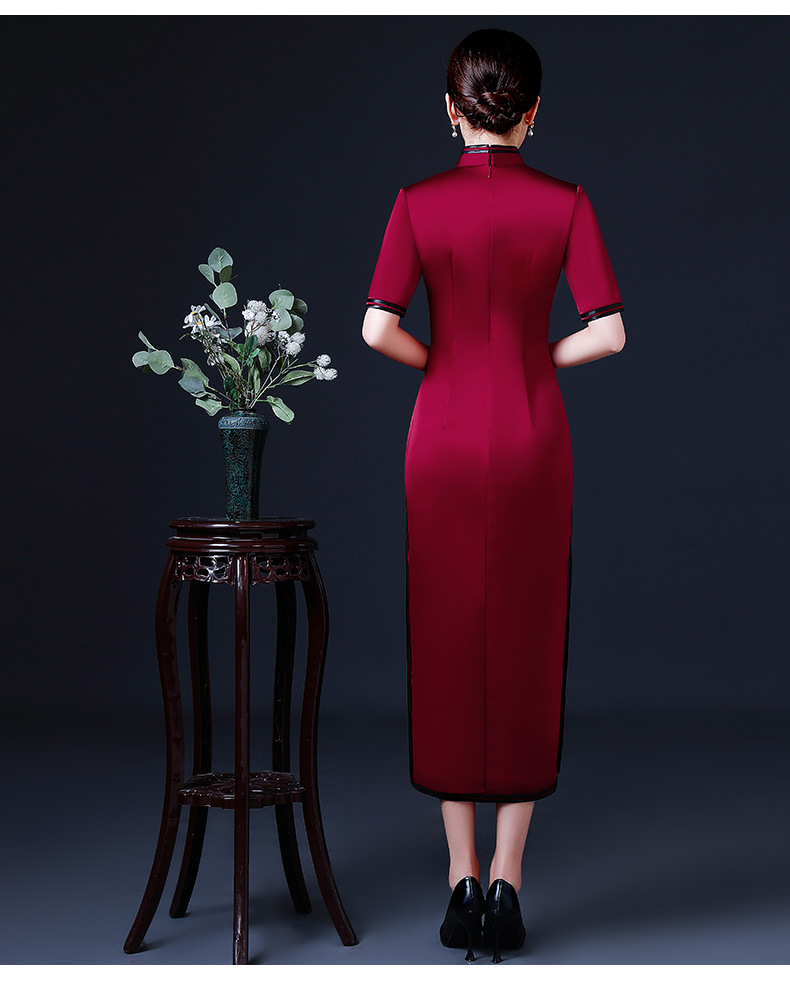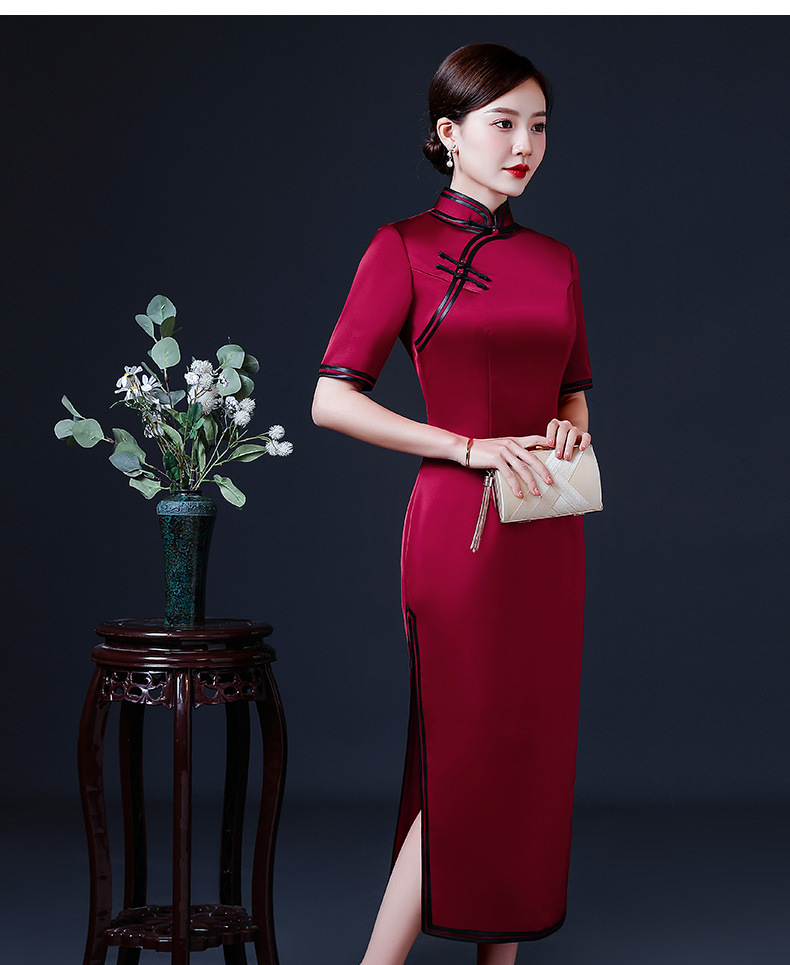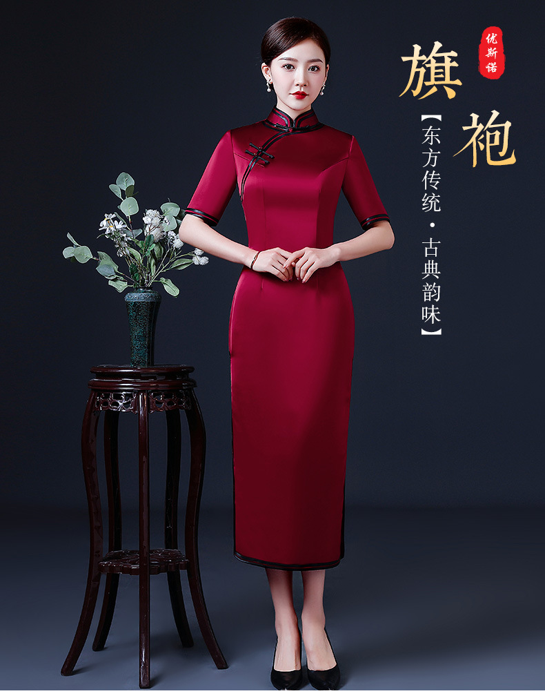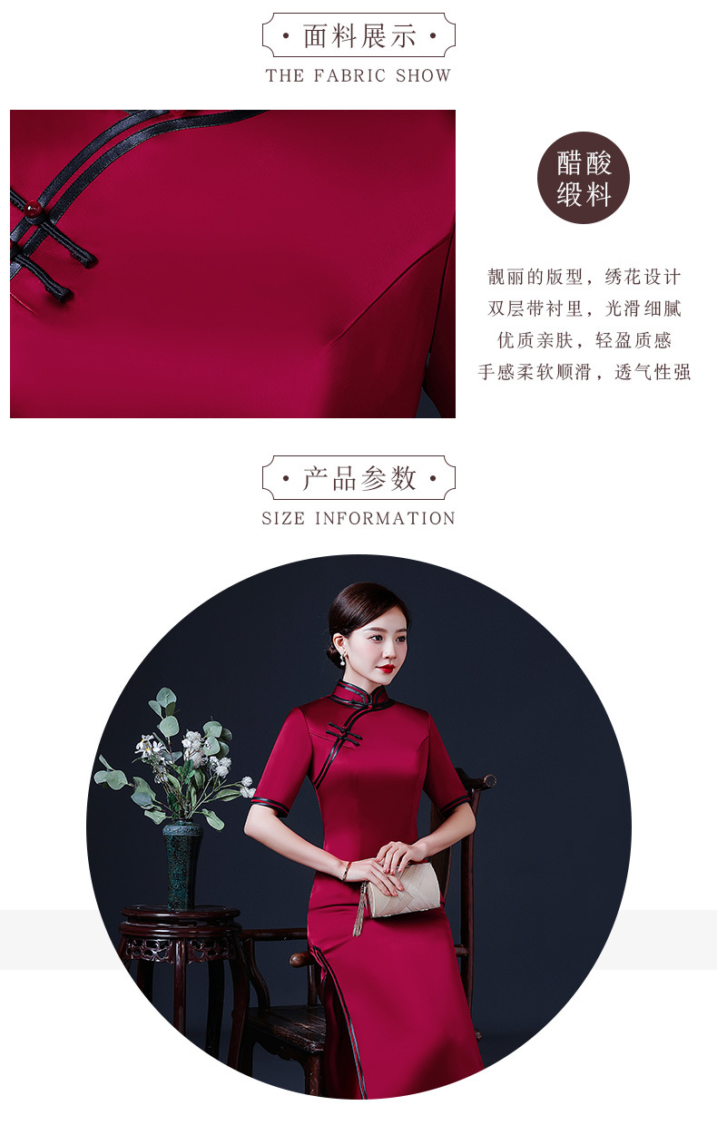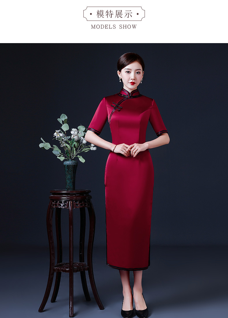 上海旗袍厂LHS-06183酒红春酒红新款改良新式旗袍礼服妈妈参加婚礼装婚宴中国风连衣裙