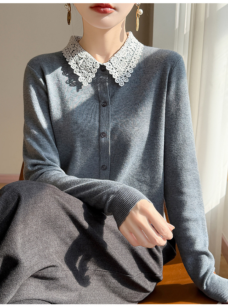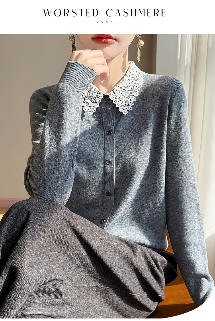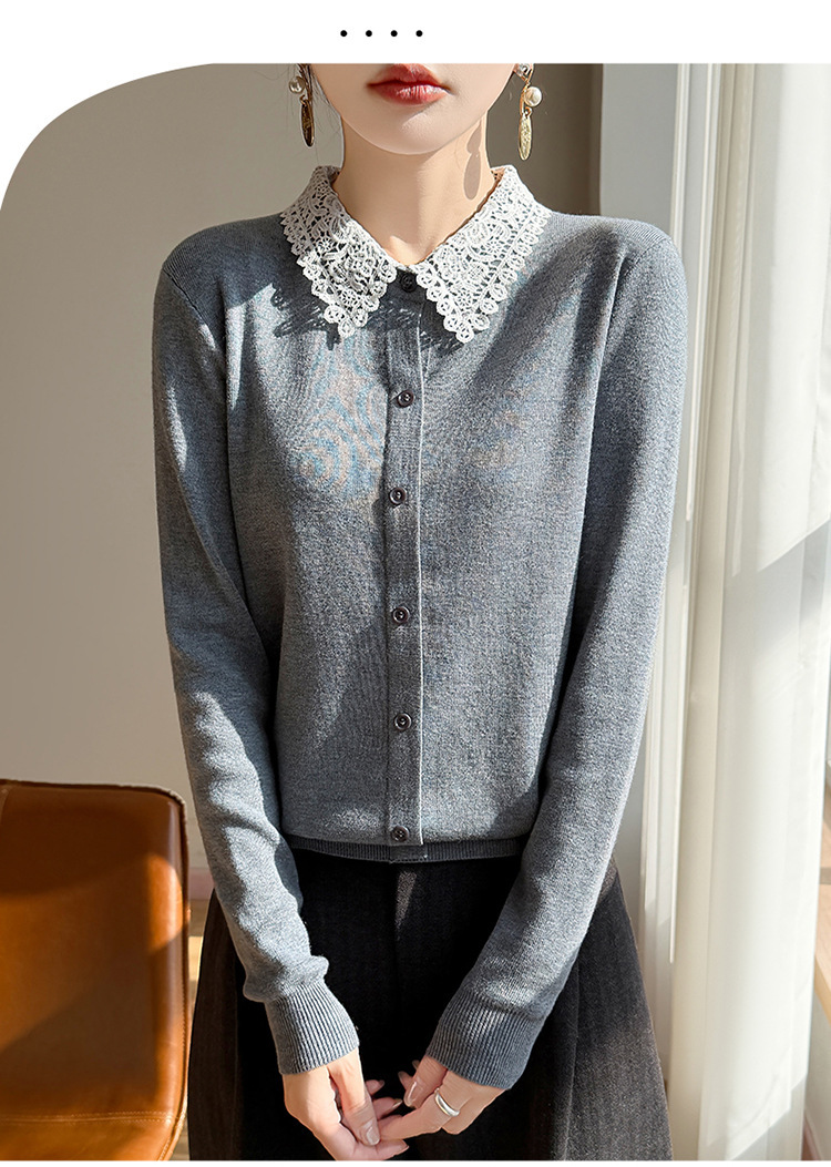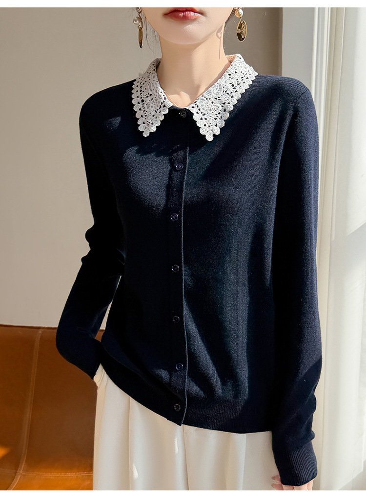 「自」全新升级【铂金会员220/天猫289/差价69】(03727)洛诗琳撞色拼接镂空翻领开衫2025秋冬精纺羊毛修身针织外套