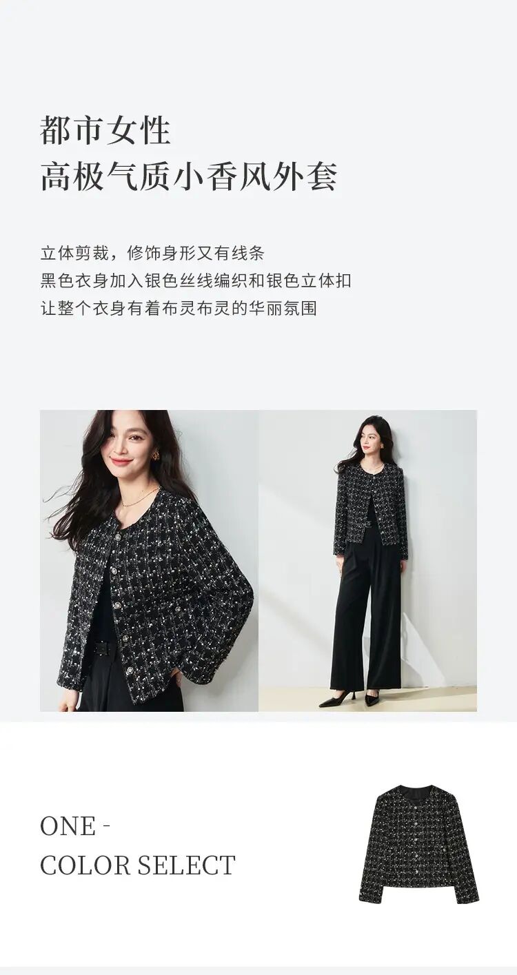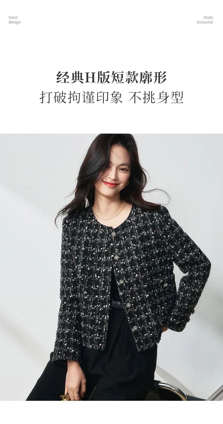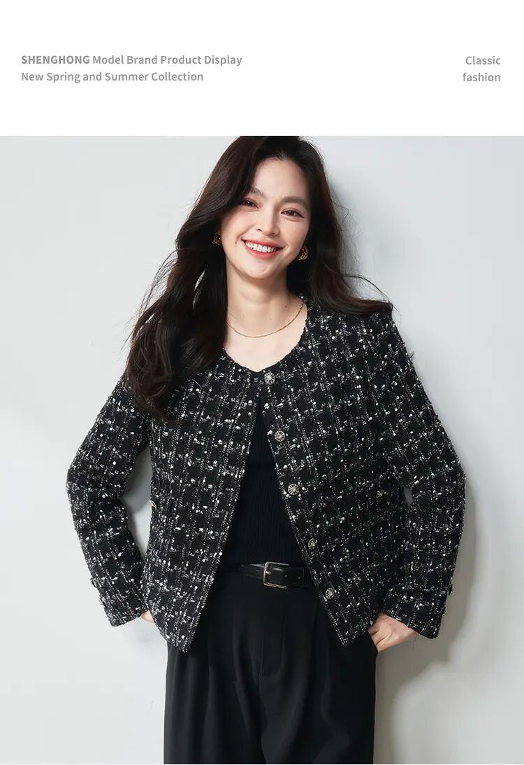 【高货sh】全新升级【铂金会员349/天猫469/差价120】(05436) 洛诗琳25春法式亮片格纹小香风外套黑色显瘦百搭上衣