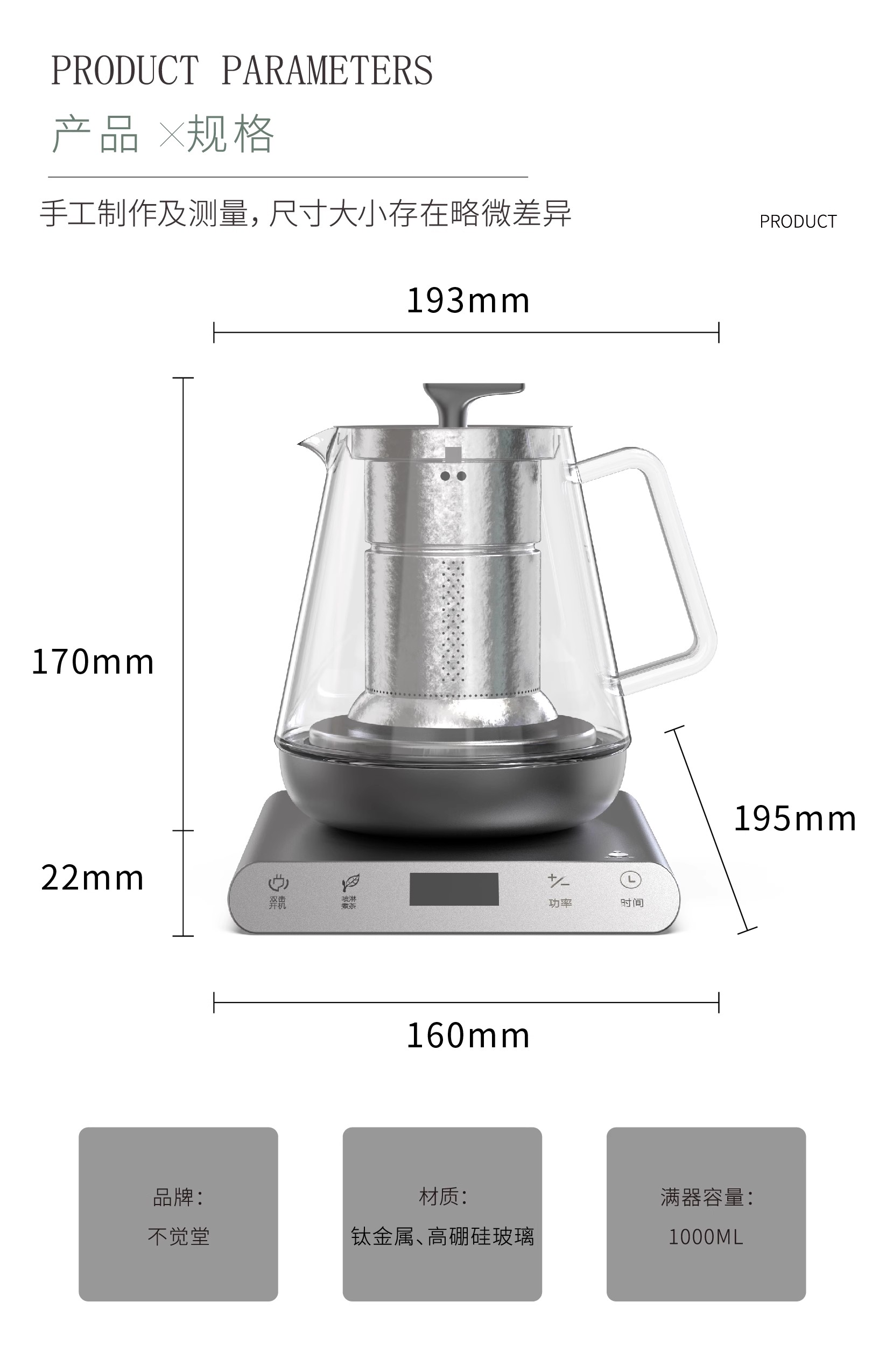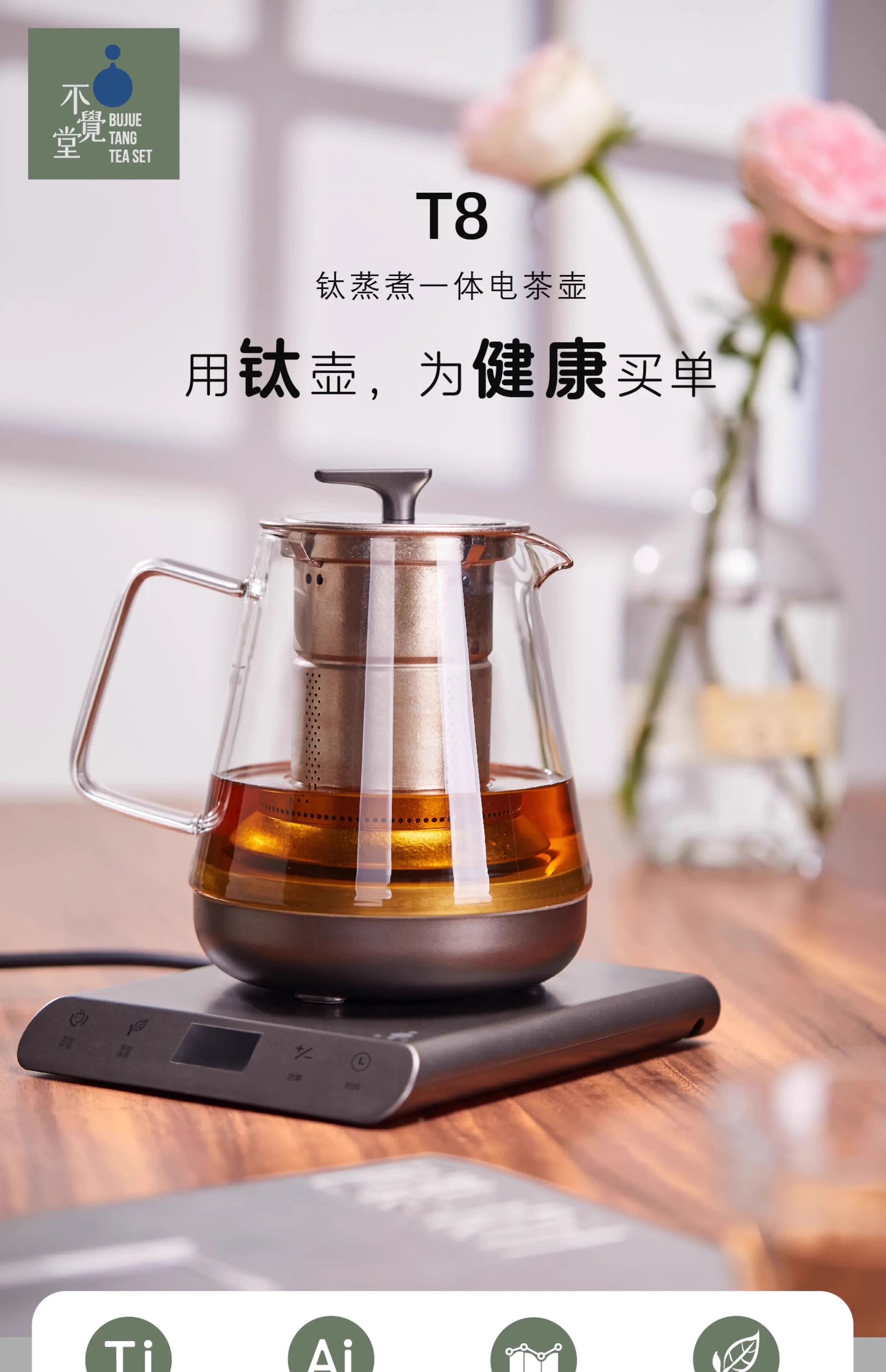 不觉堂T8纯钛蒸煮一体内胆玻璃煮茶炉蒸茶玻璃壶烧水壶专用