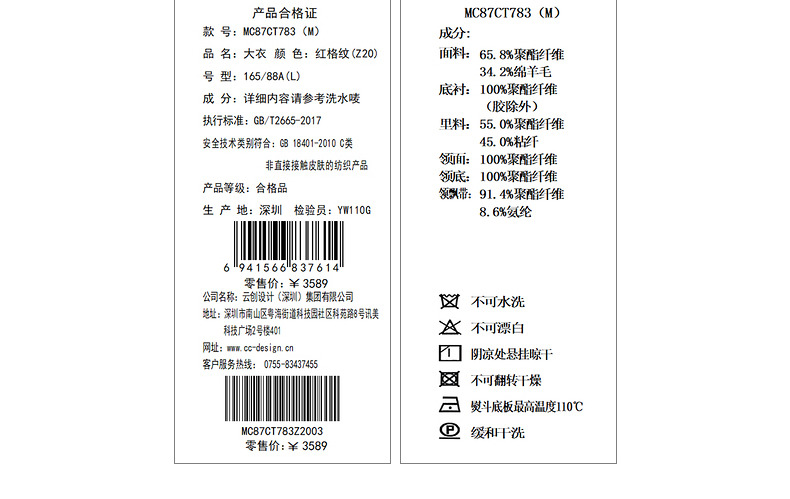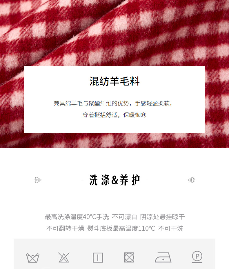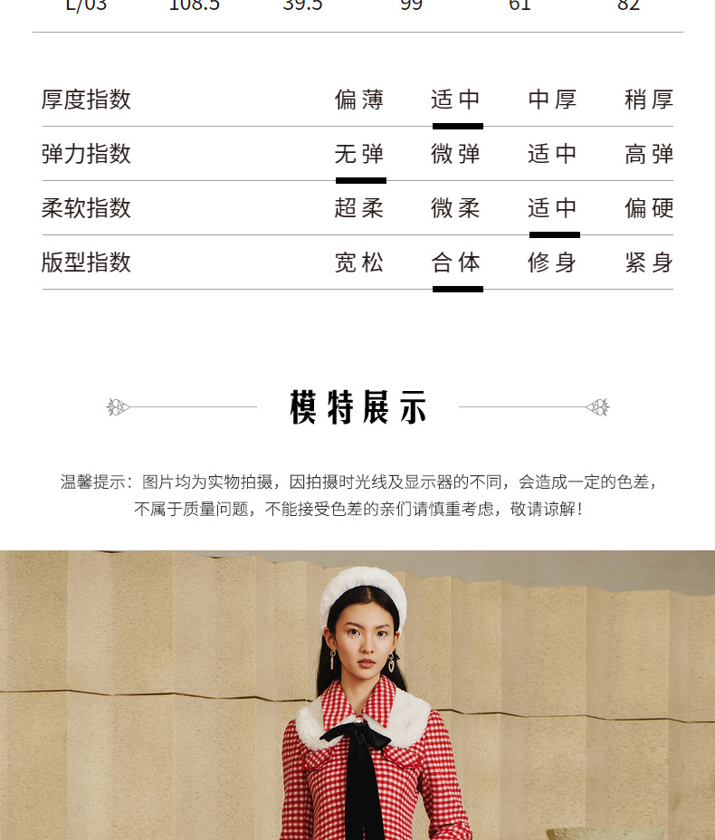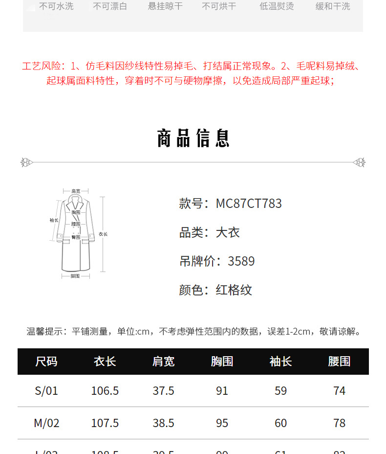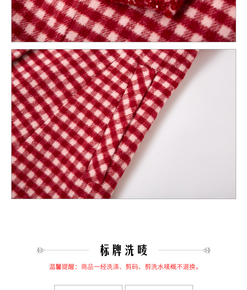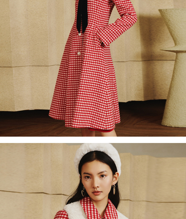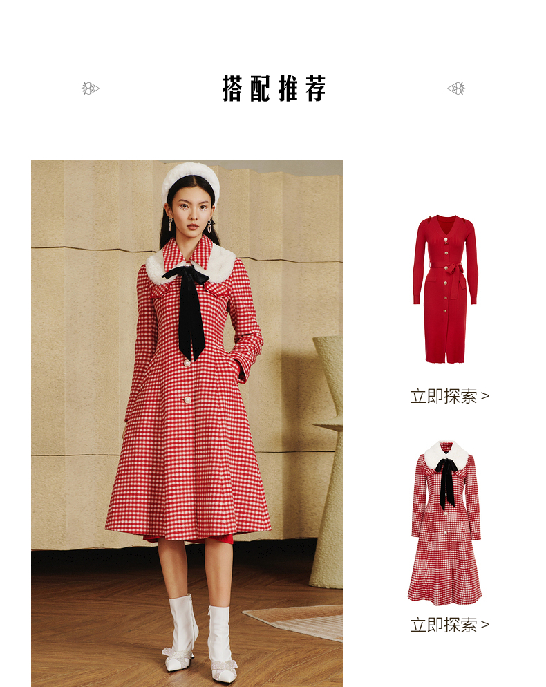 MAXRIENY红白格纹大衣蝴蝶结毛翻领风衣毛呢外套(货号:MC87CT783)