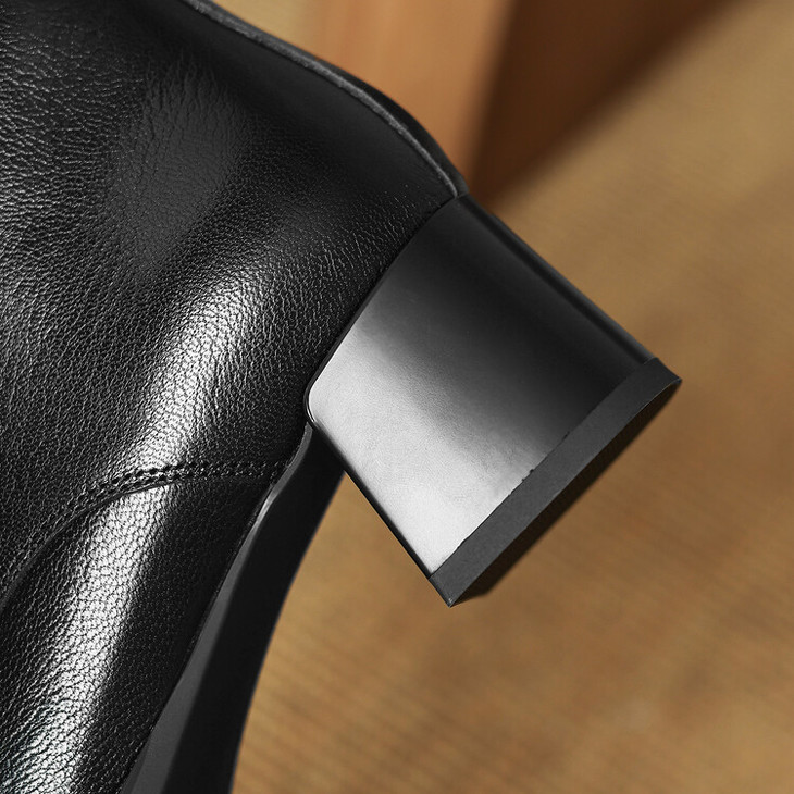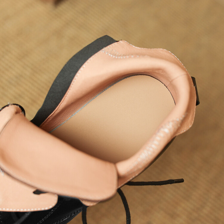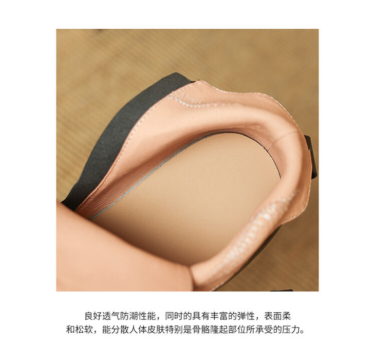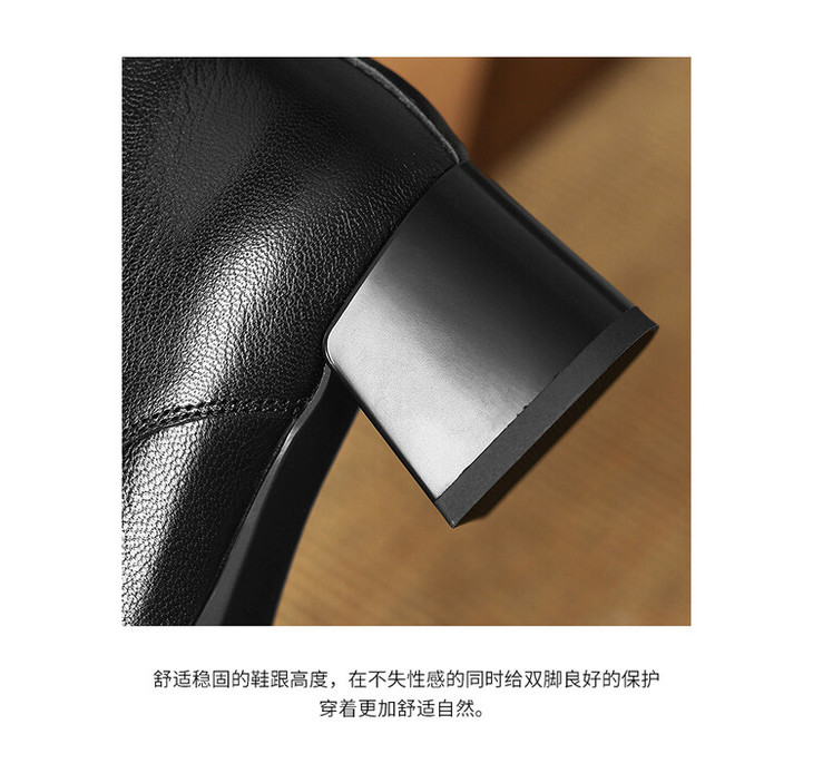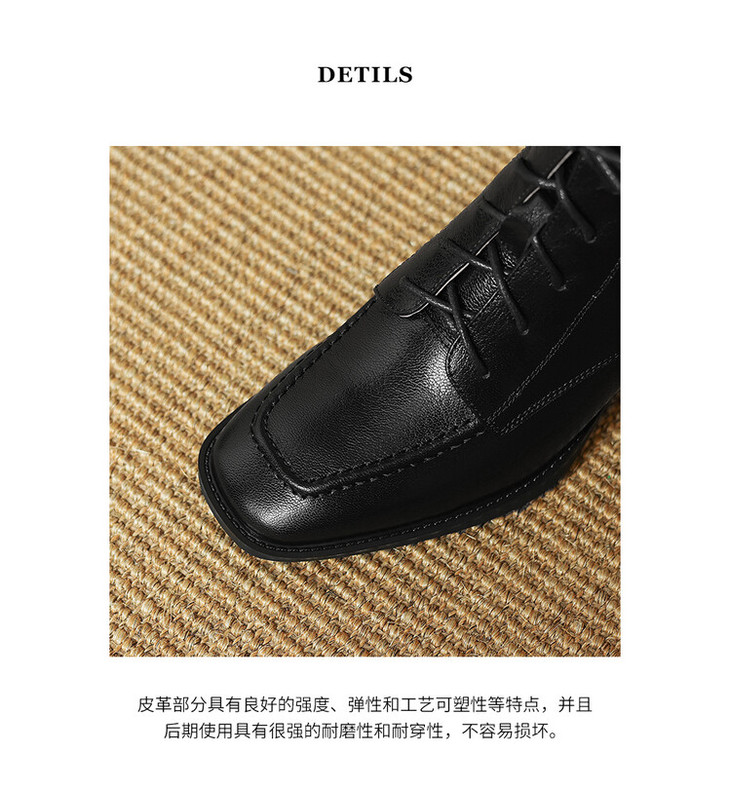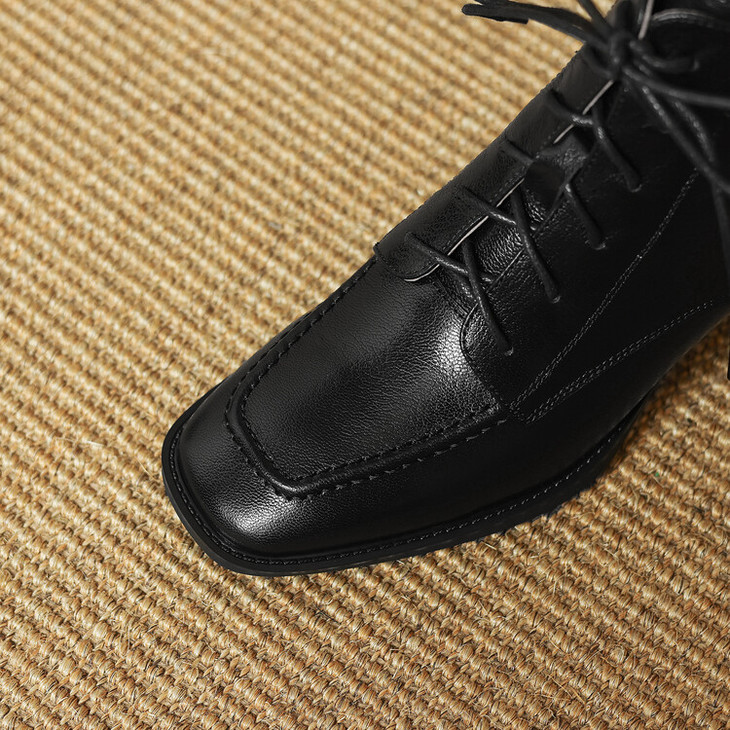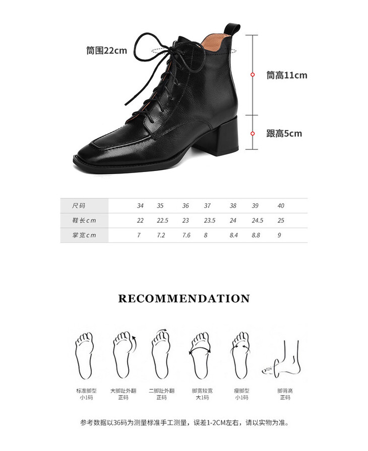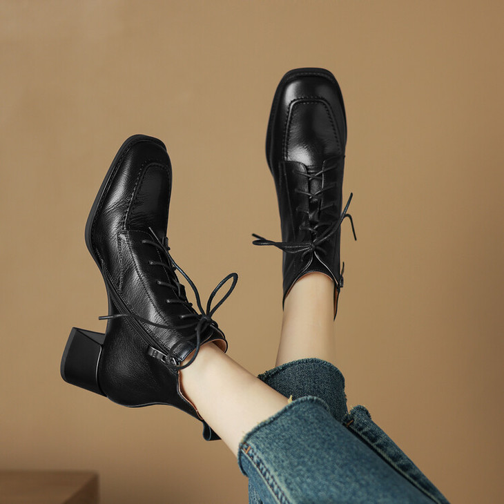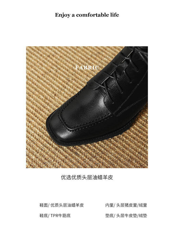 【预售5天】复古真皮系带马丁靴女英伦风短筒方头粗跟黑色卡其色高跟气质短靴女LD&6954