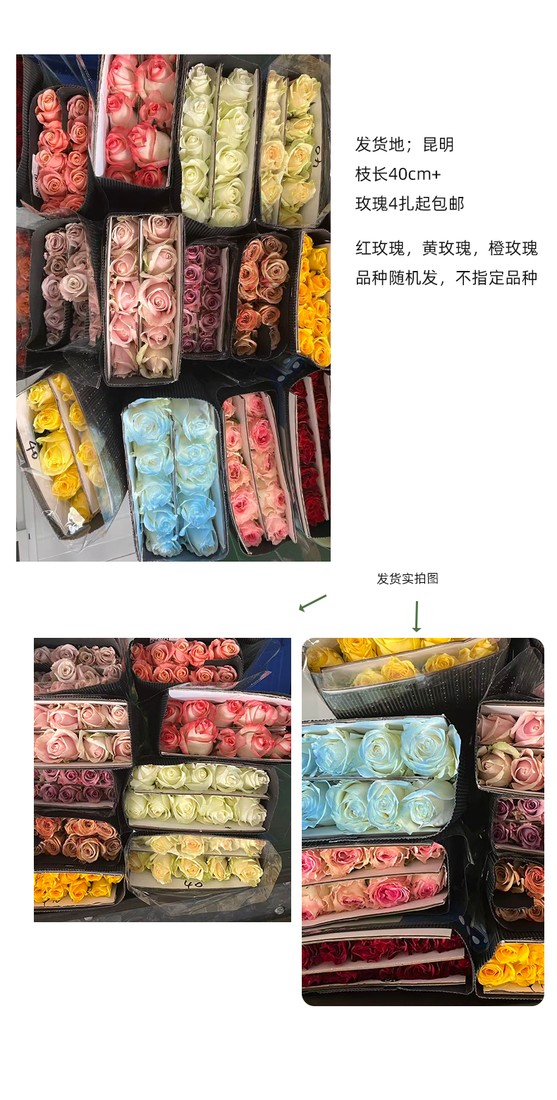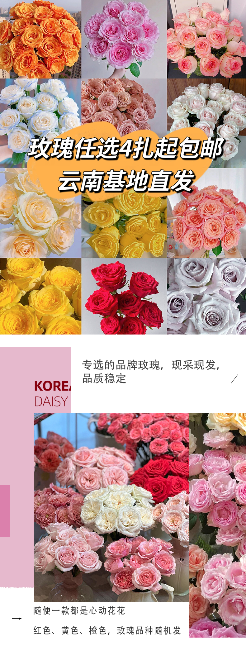 【顺丰冷链/中通空运/EMS空运】玫瑰鲜花任选4扎包邮 云南基地现采现发直发 每一款都是心动花 红玫瑰 黄玫瑰 卡布玫瑰