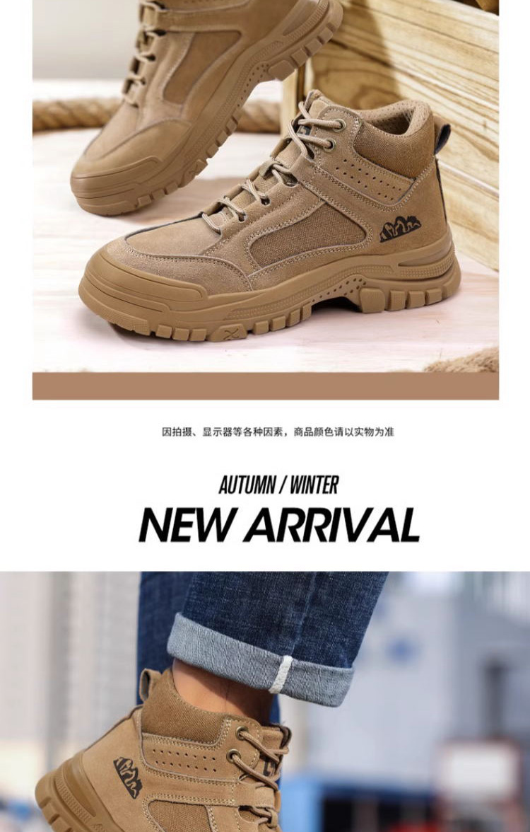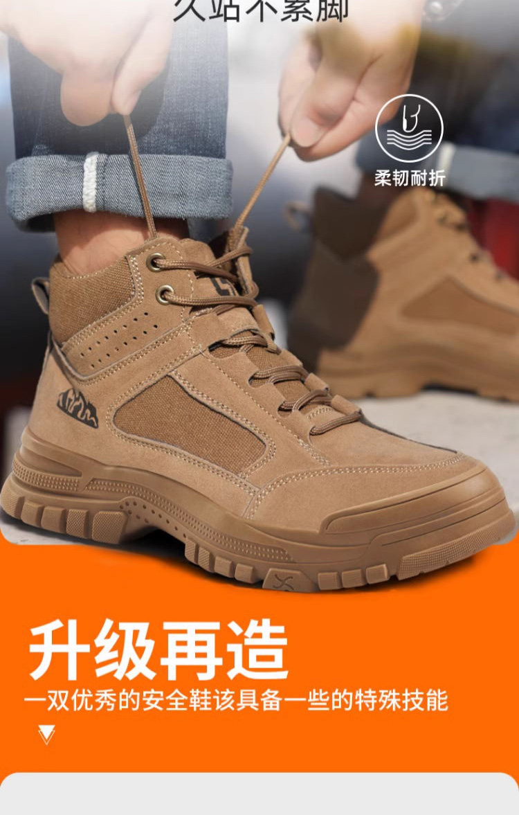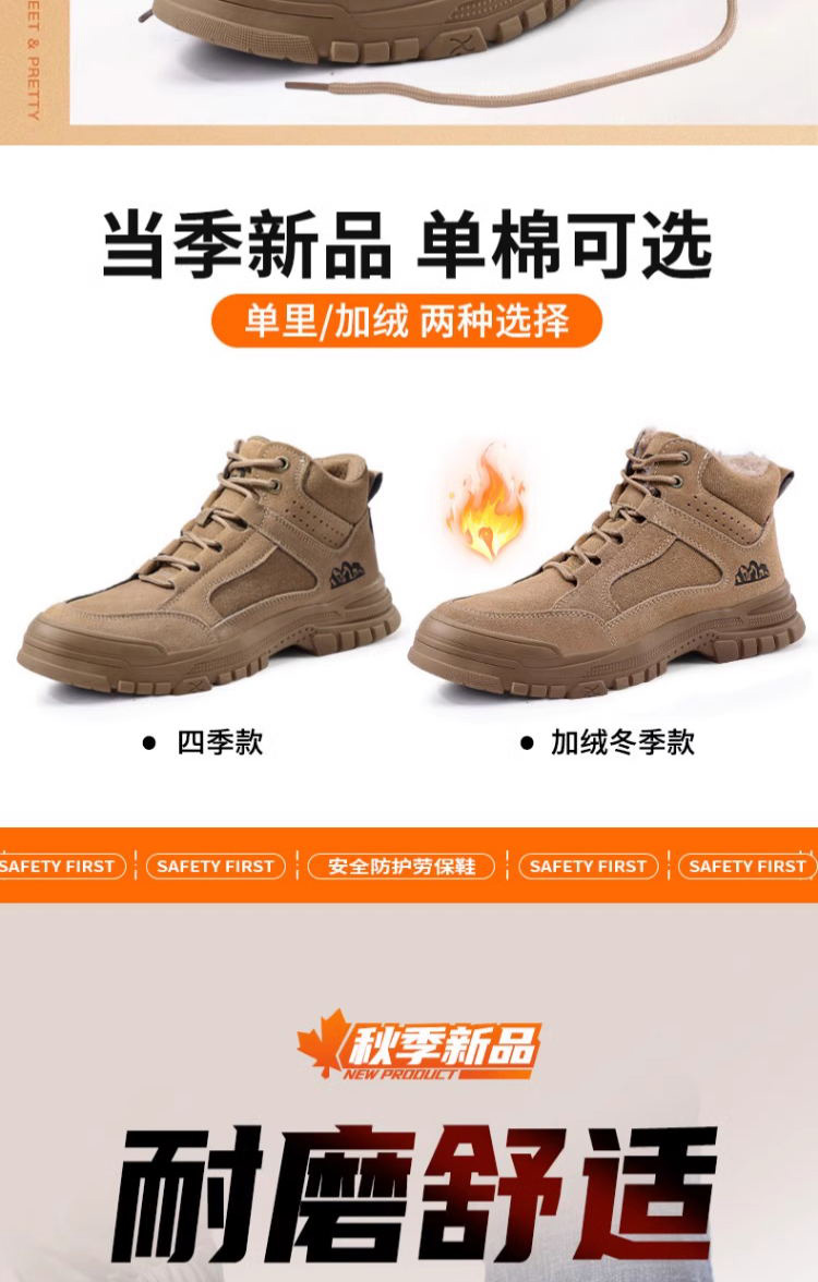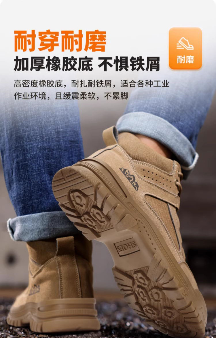 新款春秋高帮不加绒劳保鞋男防砸防刺防烫反绒皮钢包头橡胶底安全鞋工作鞋