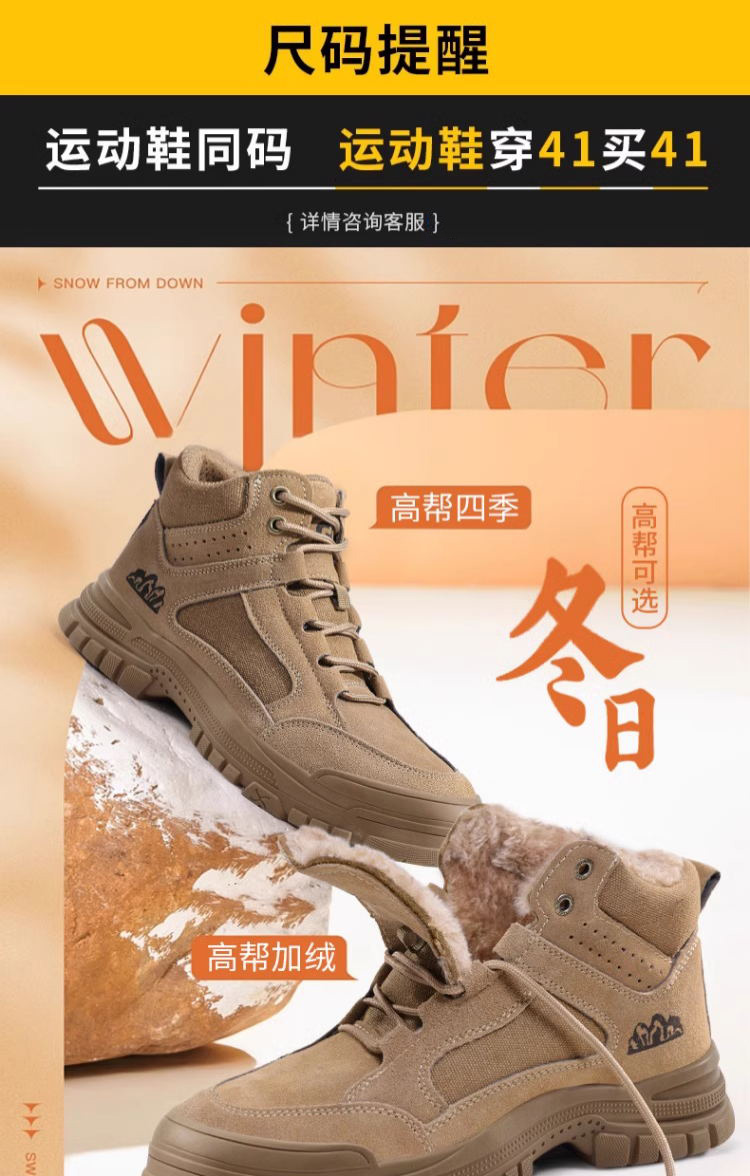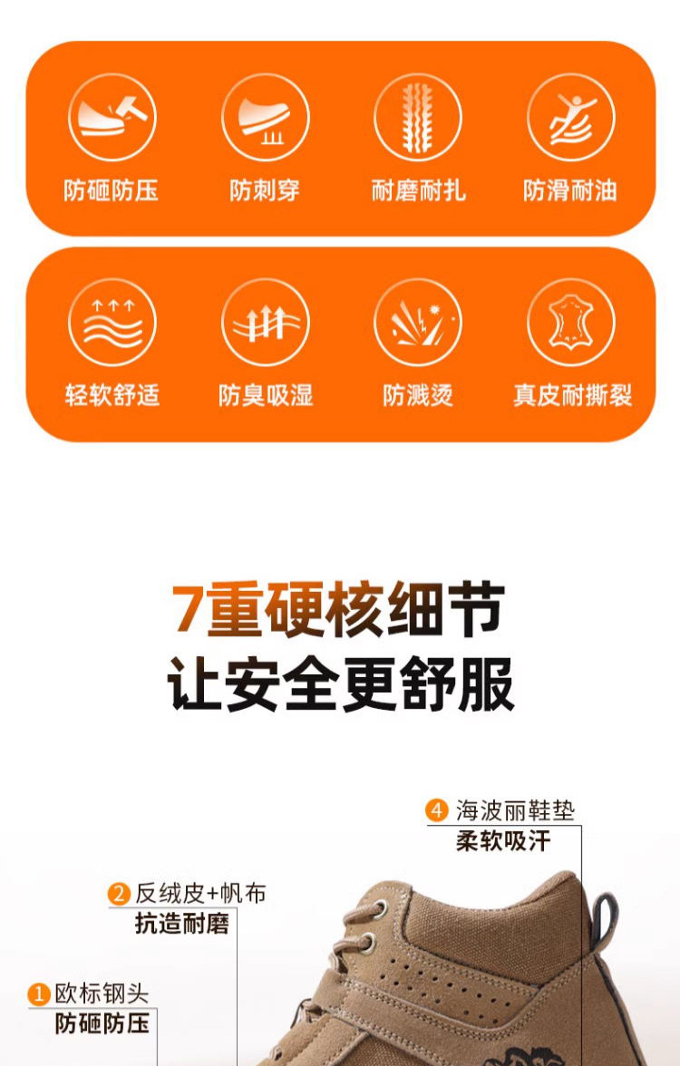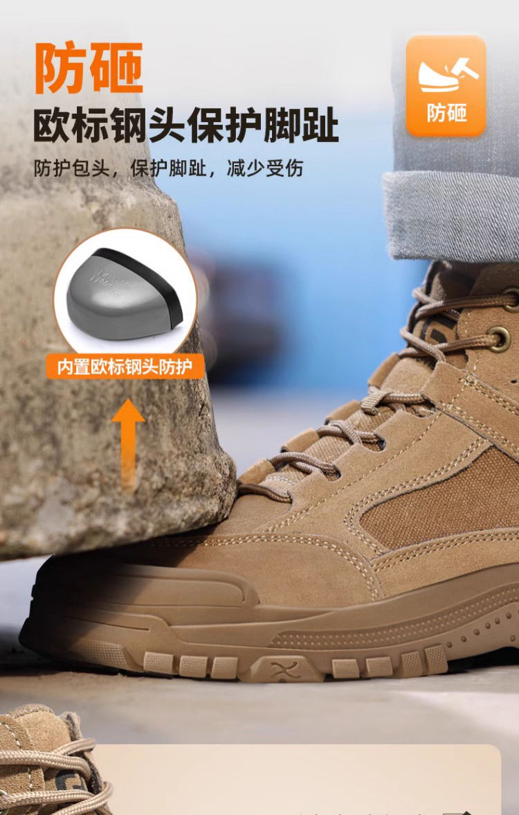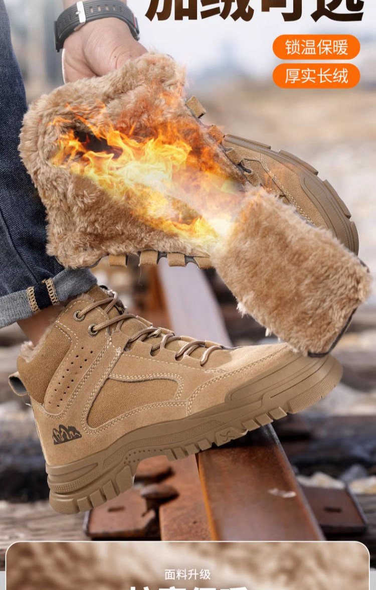 新款春秋高帮不加绒劳保鞋男防砸防刺防烫反绒皮钢包头橡胶底安全鞋工作鞋
