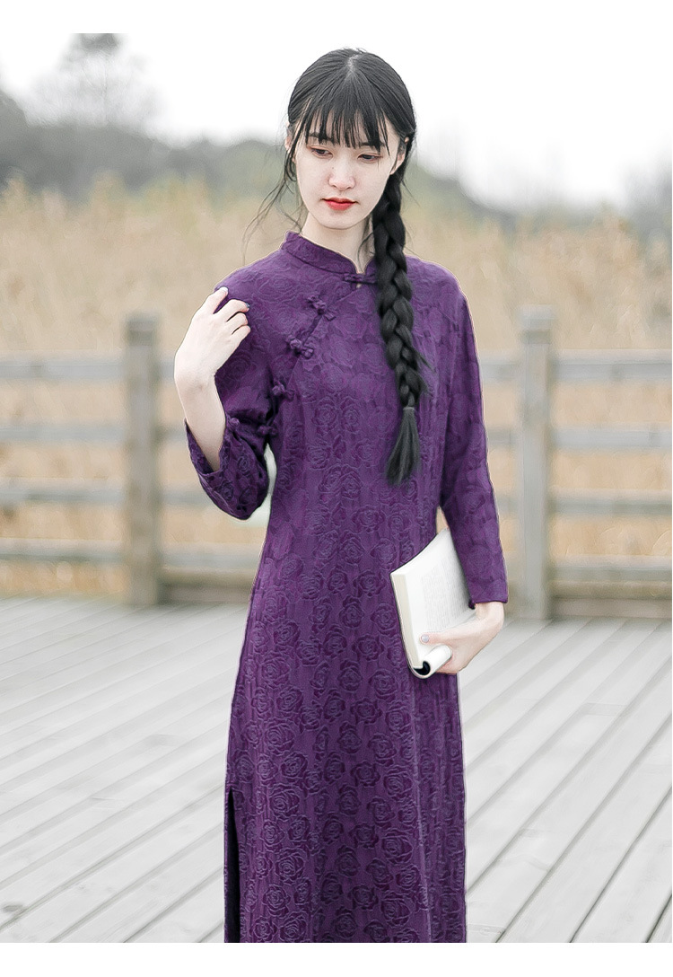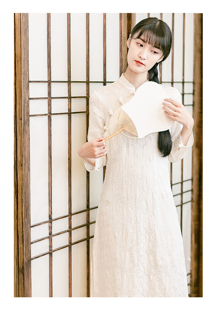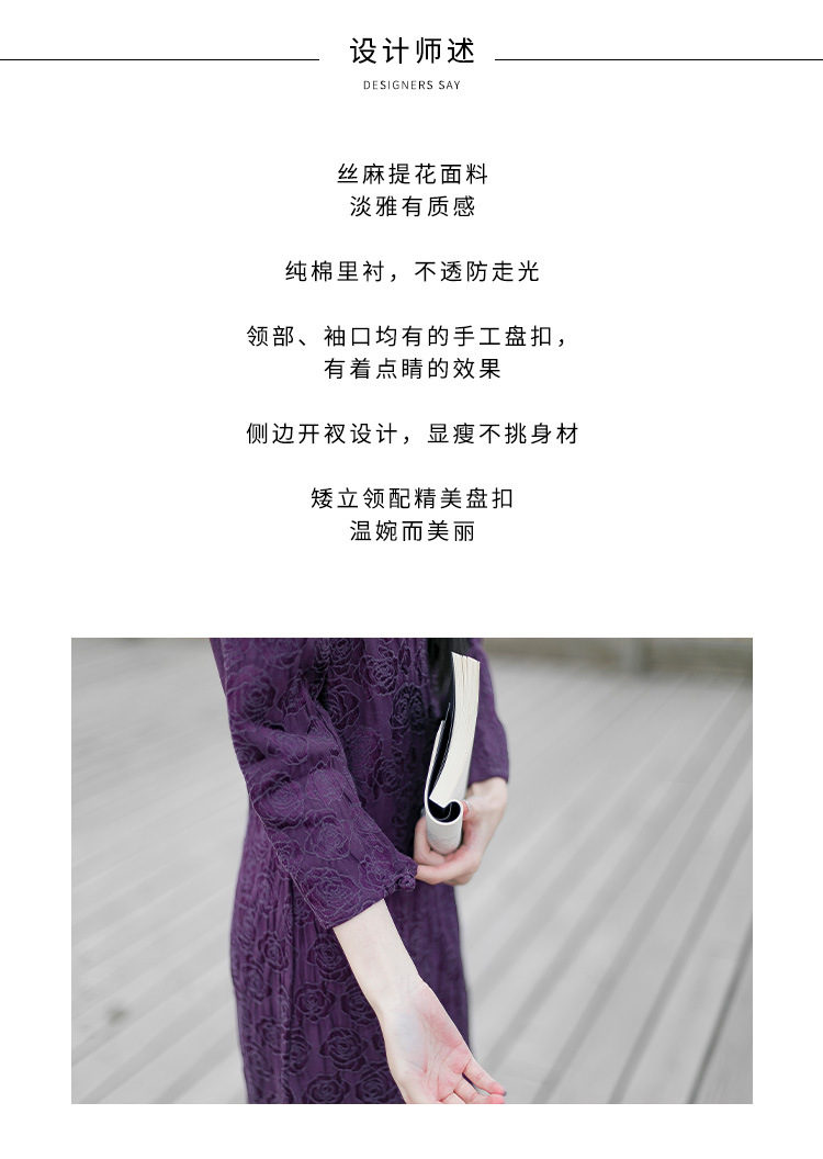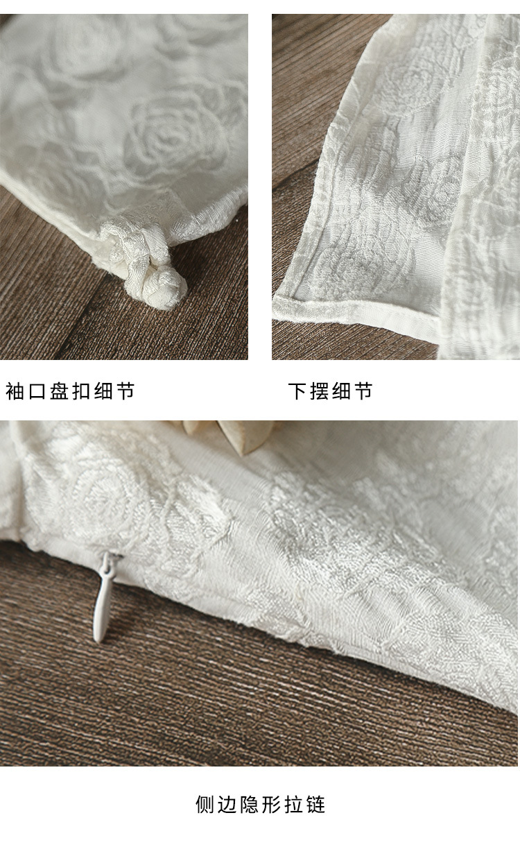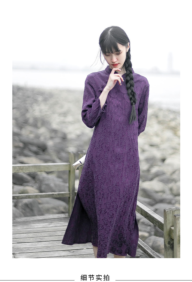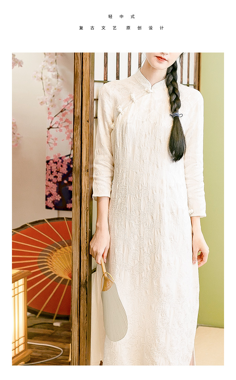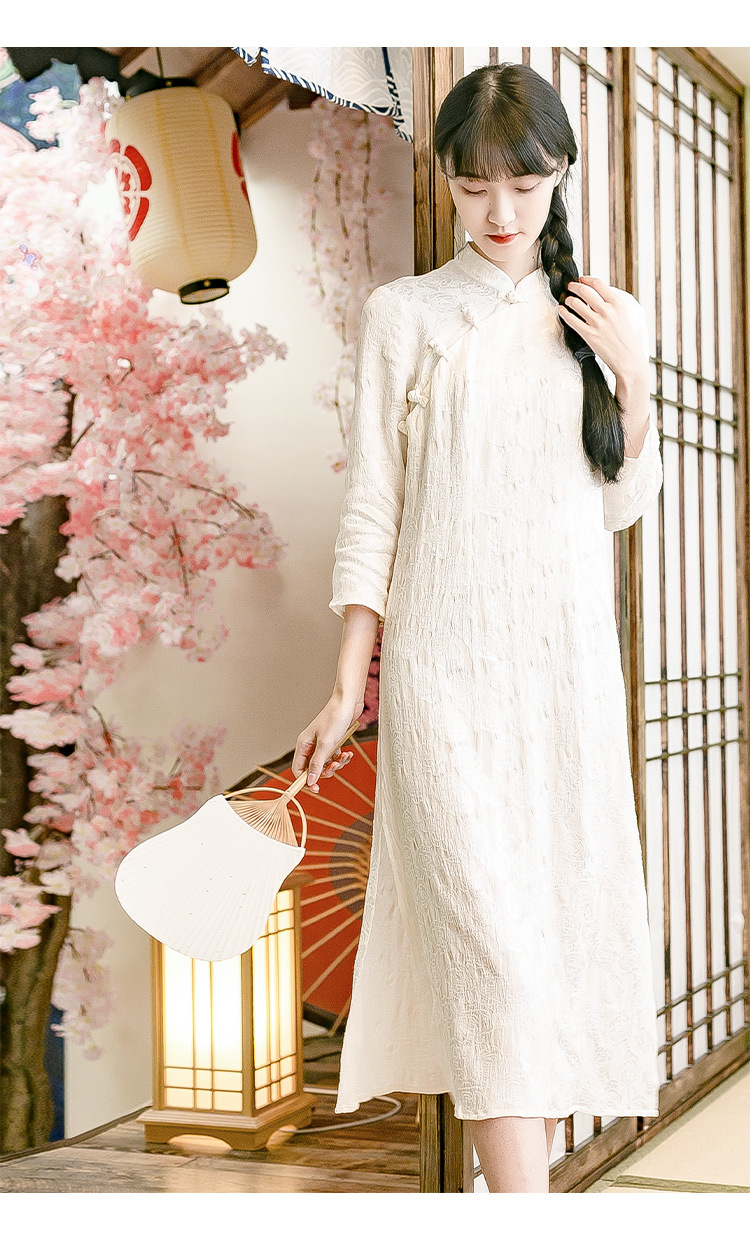 YM-9569新款文艺刺绣透气棉麻气质中长款旗袍裙