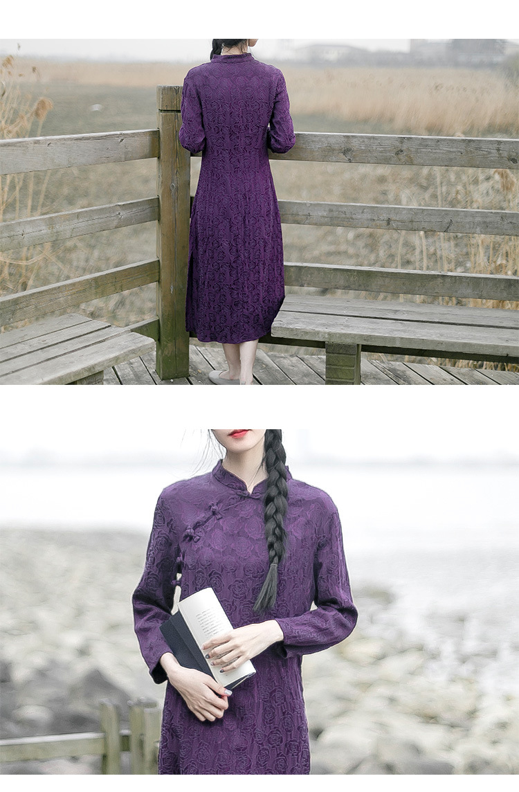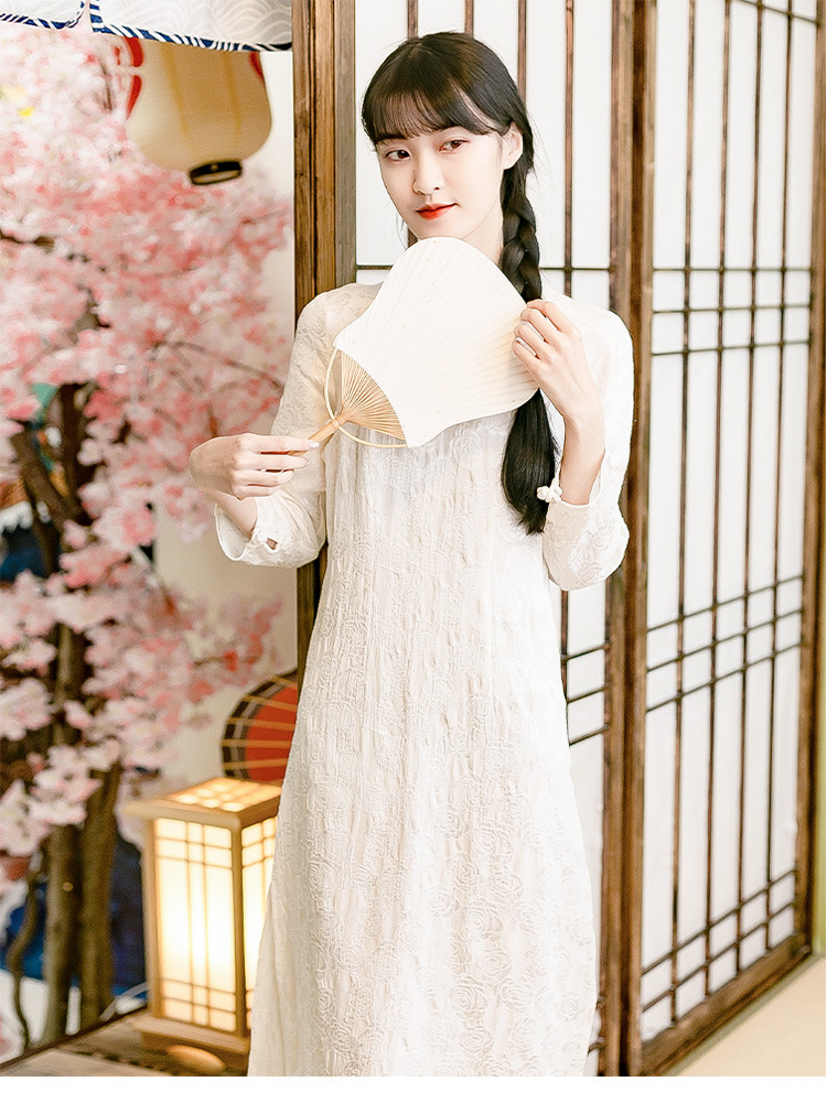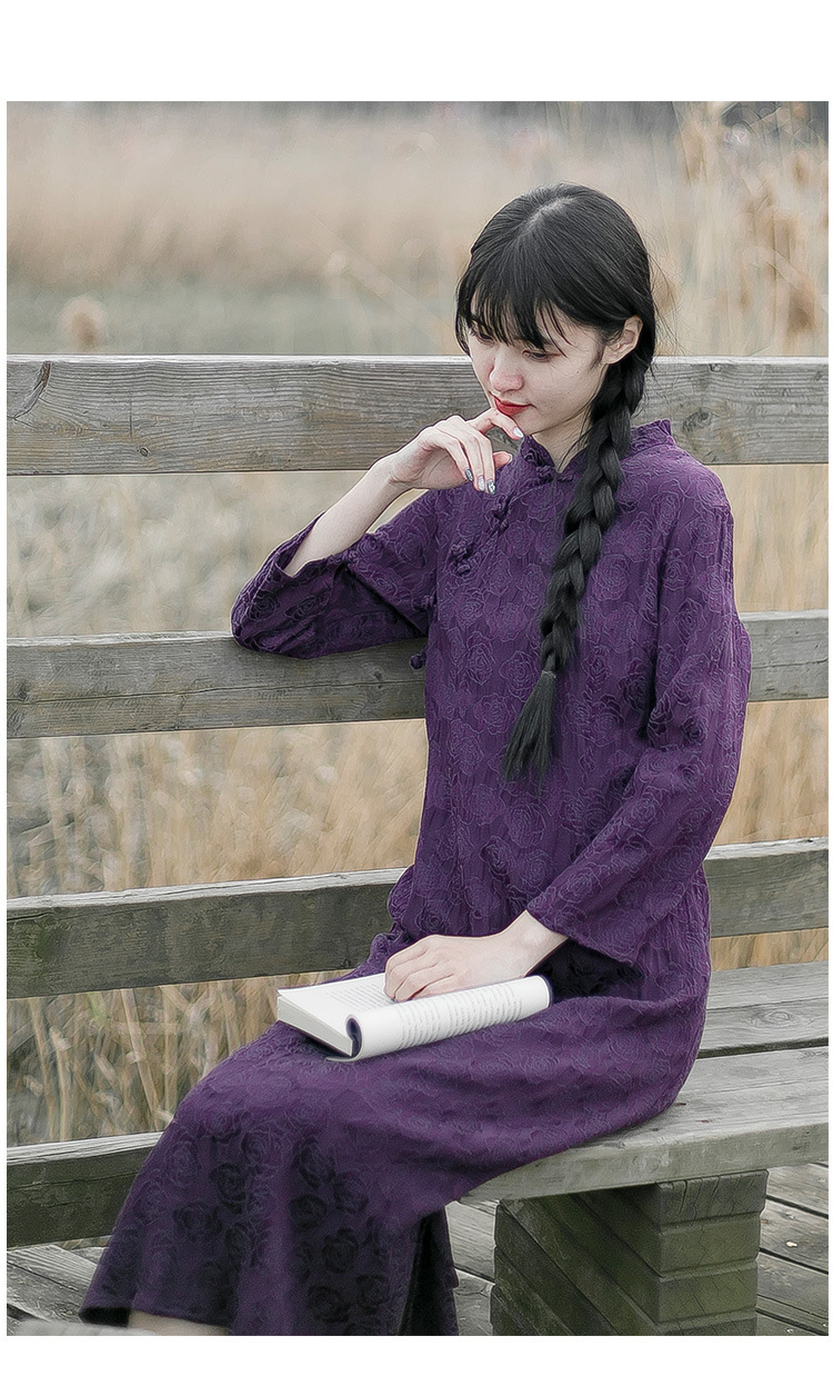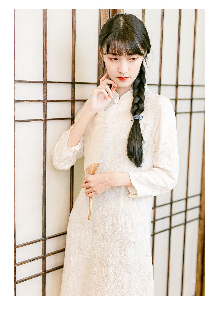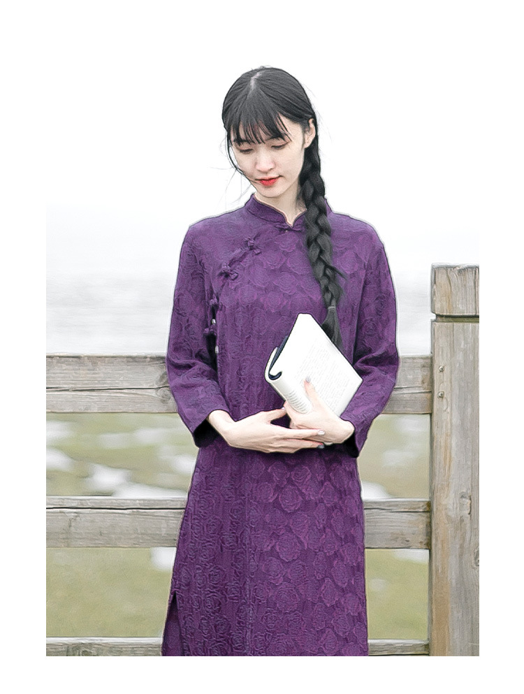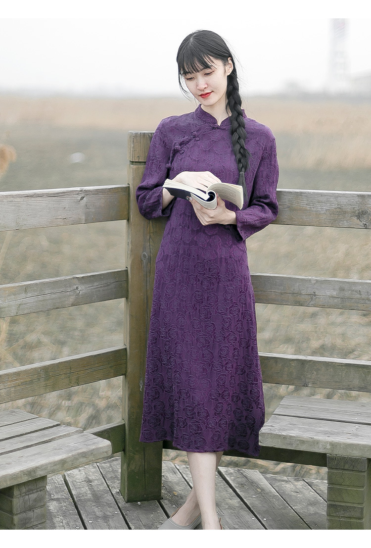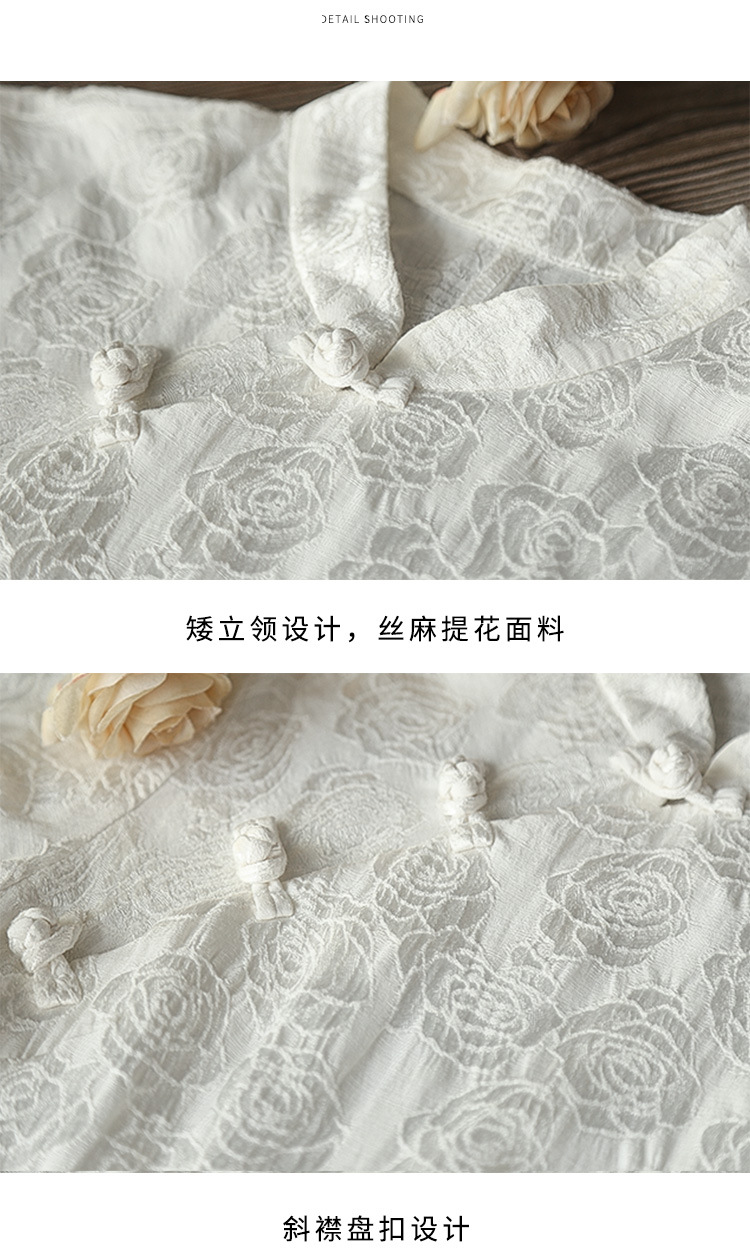 YM-9569新款文艺刺绣透气棉麻气质中长款旗袍裙