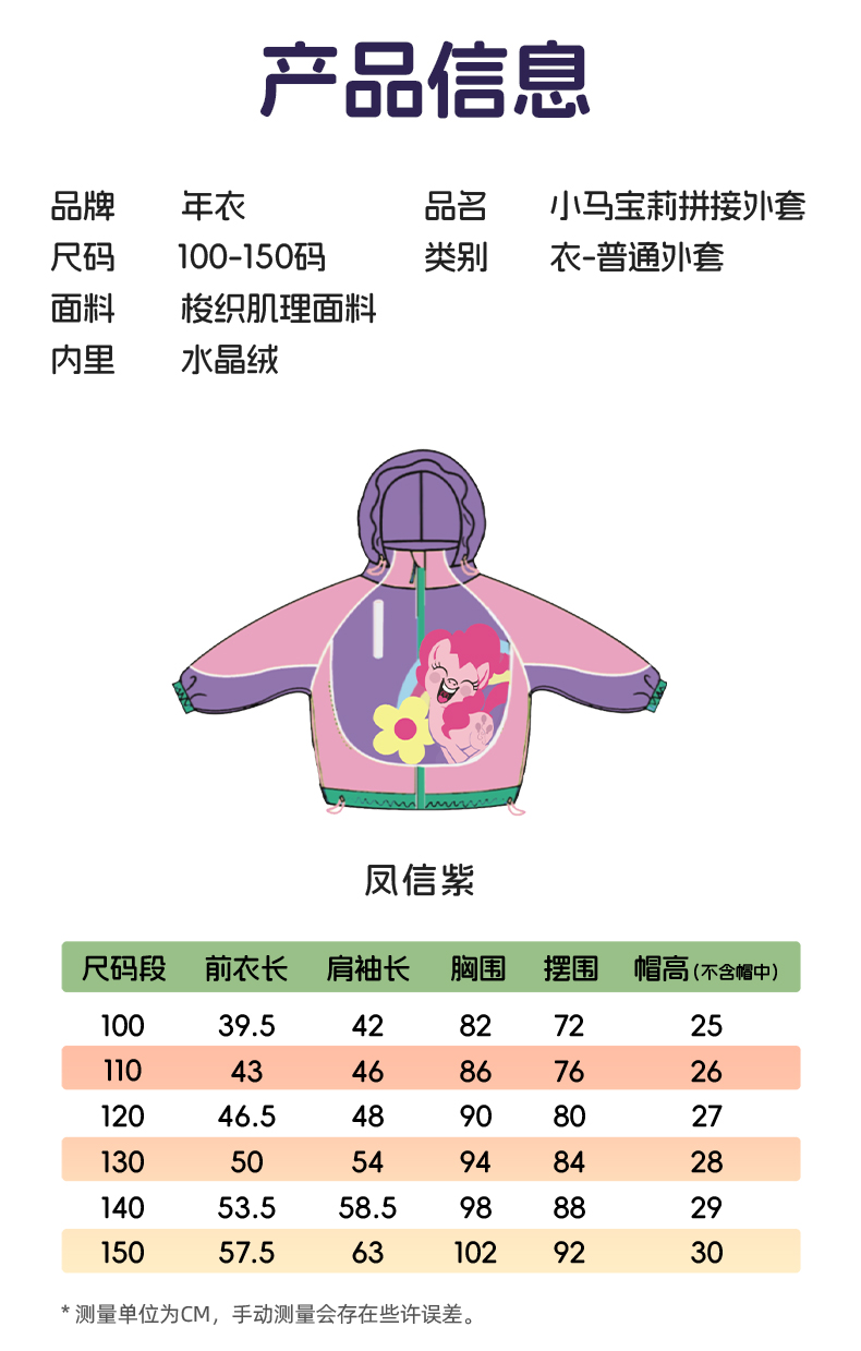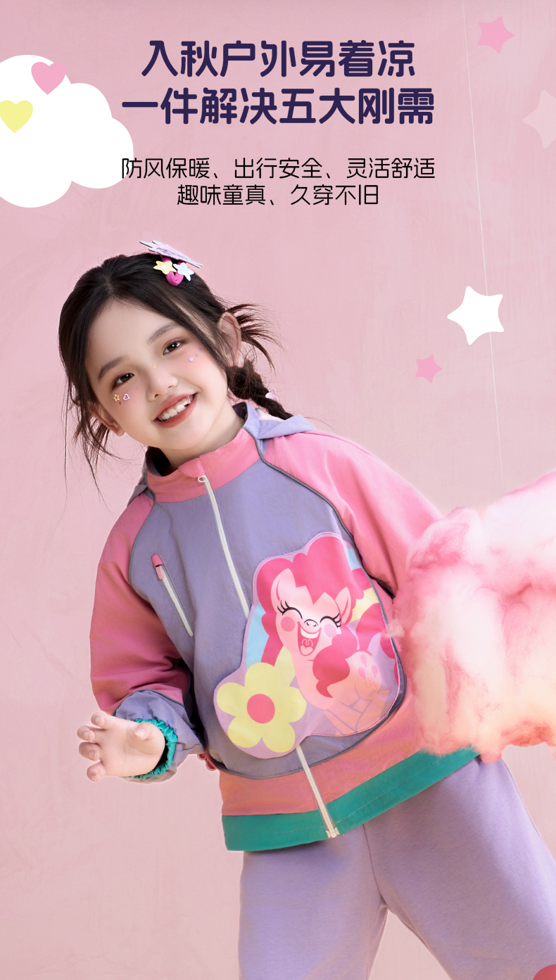 【年衣】童装儿童连帽外套25秋季新款女童可爱卡通小马宝莉拼接外套