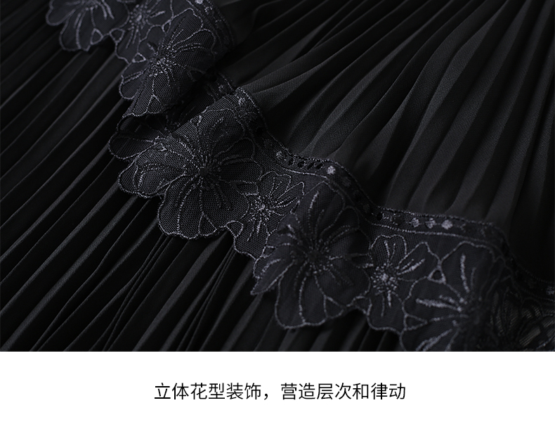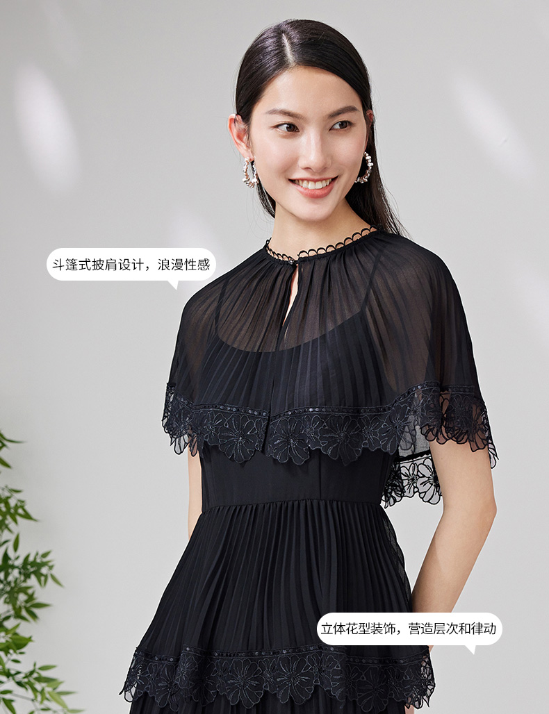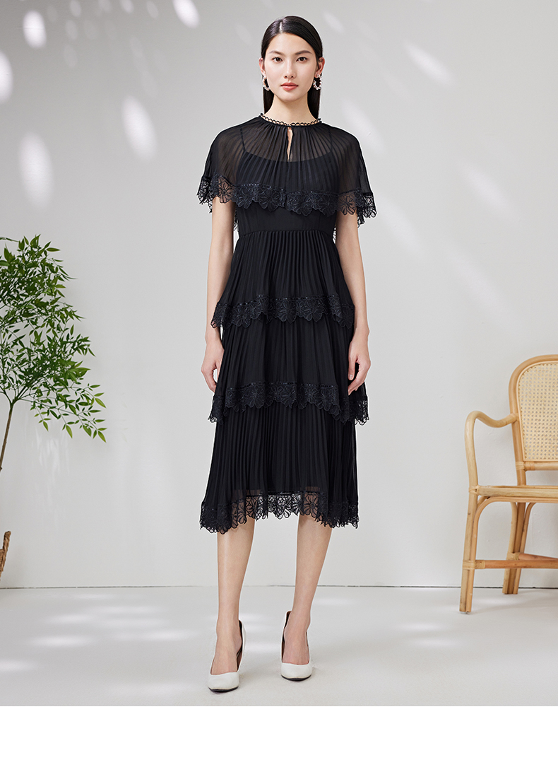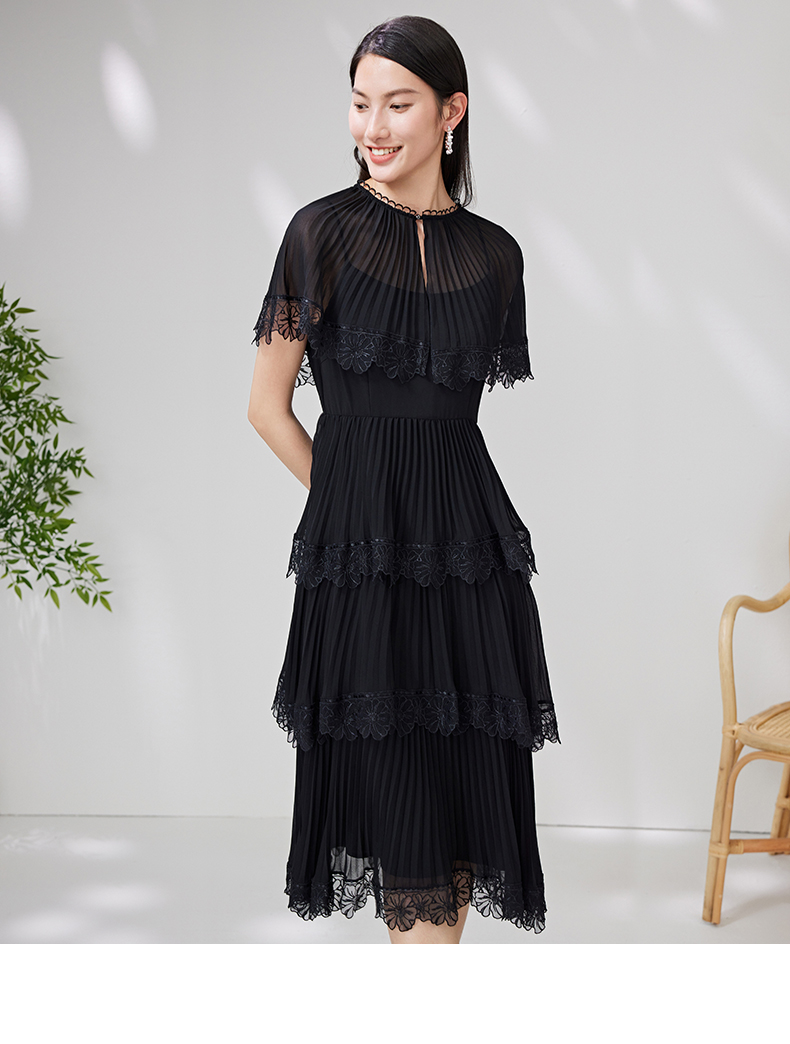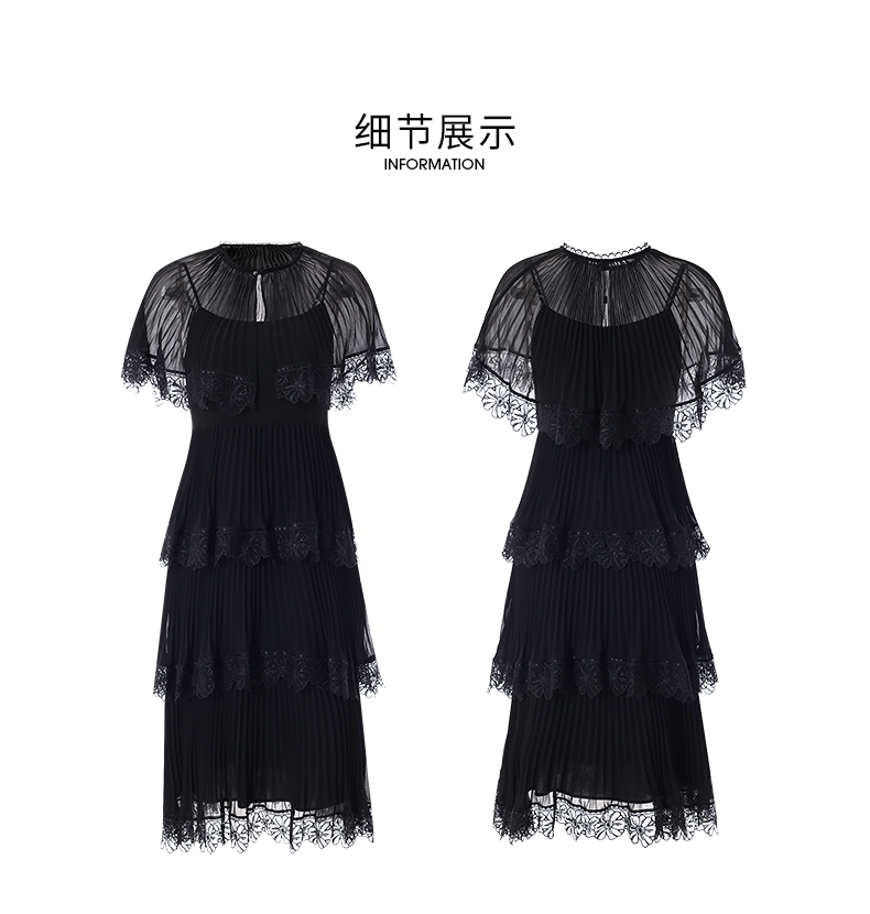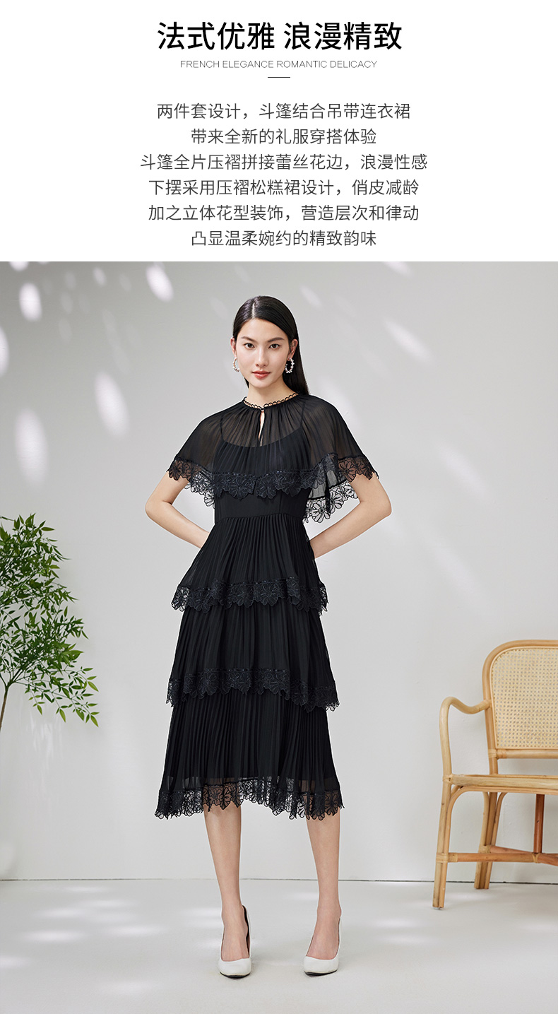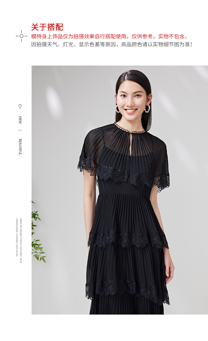 EITIE爱特爱女装夏季新款V领气质多层次蛋糕蕾丝拼接连衣裙礼服6677302