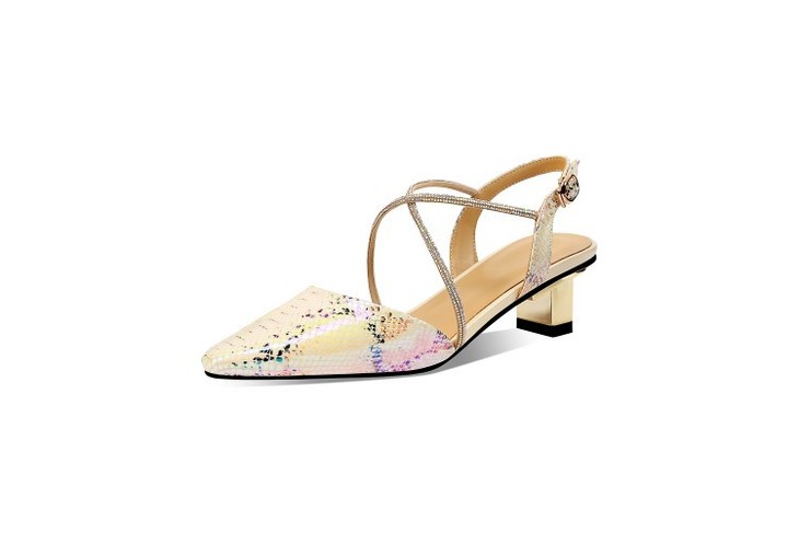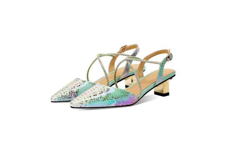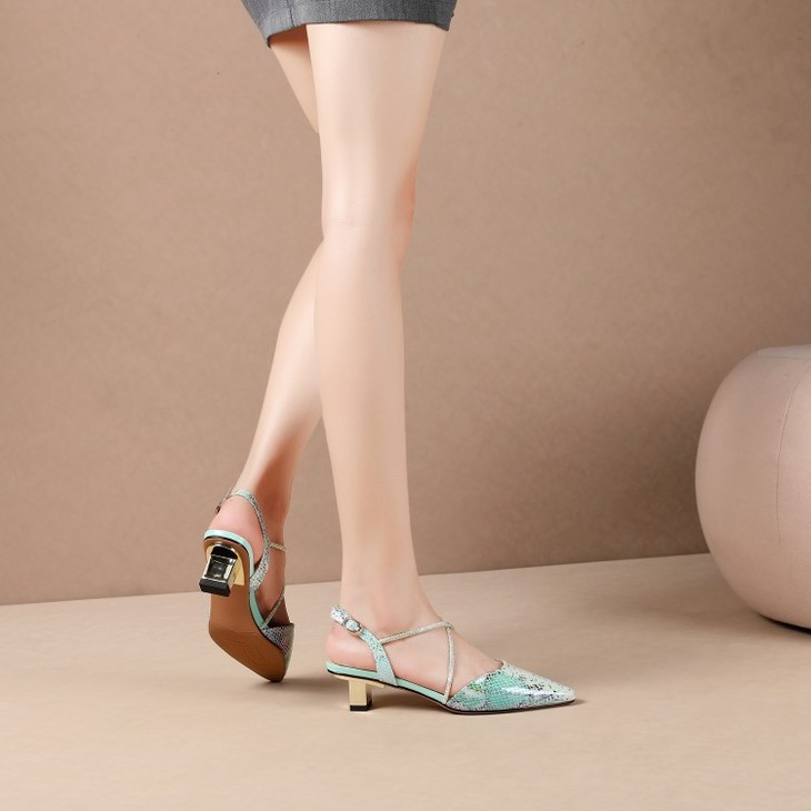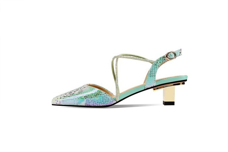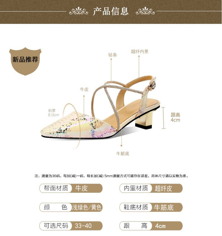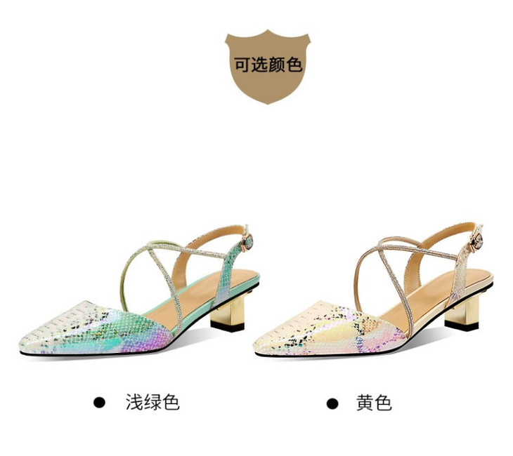 OLD-E40-9116小香风拼色包头后空粗跟3cm小跟蛇纹凉鞋