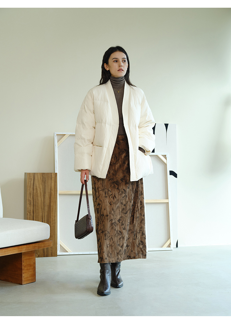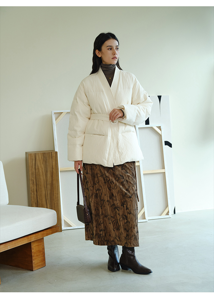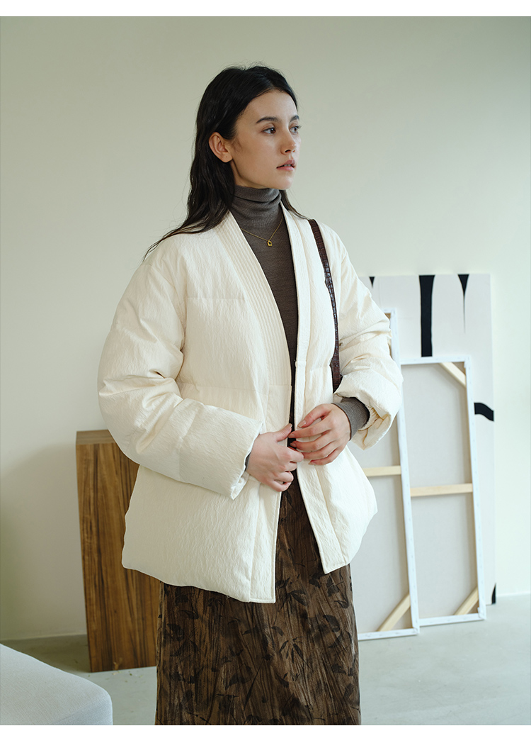 HeyDress新中式暗纹羽绒服女秋冬宽松设计感90白鸭绒保暖上衣外套
